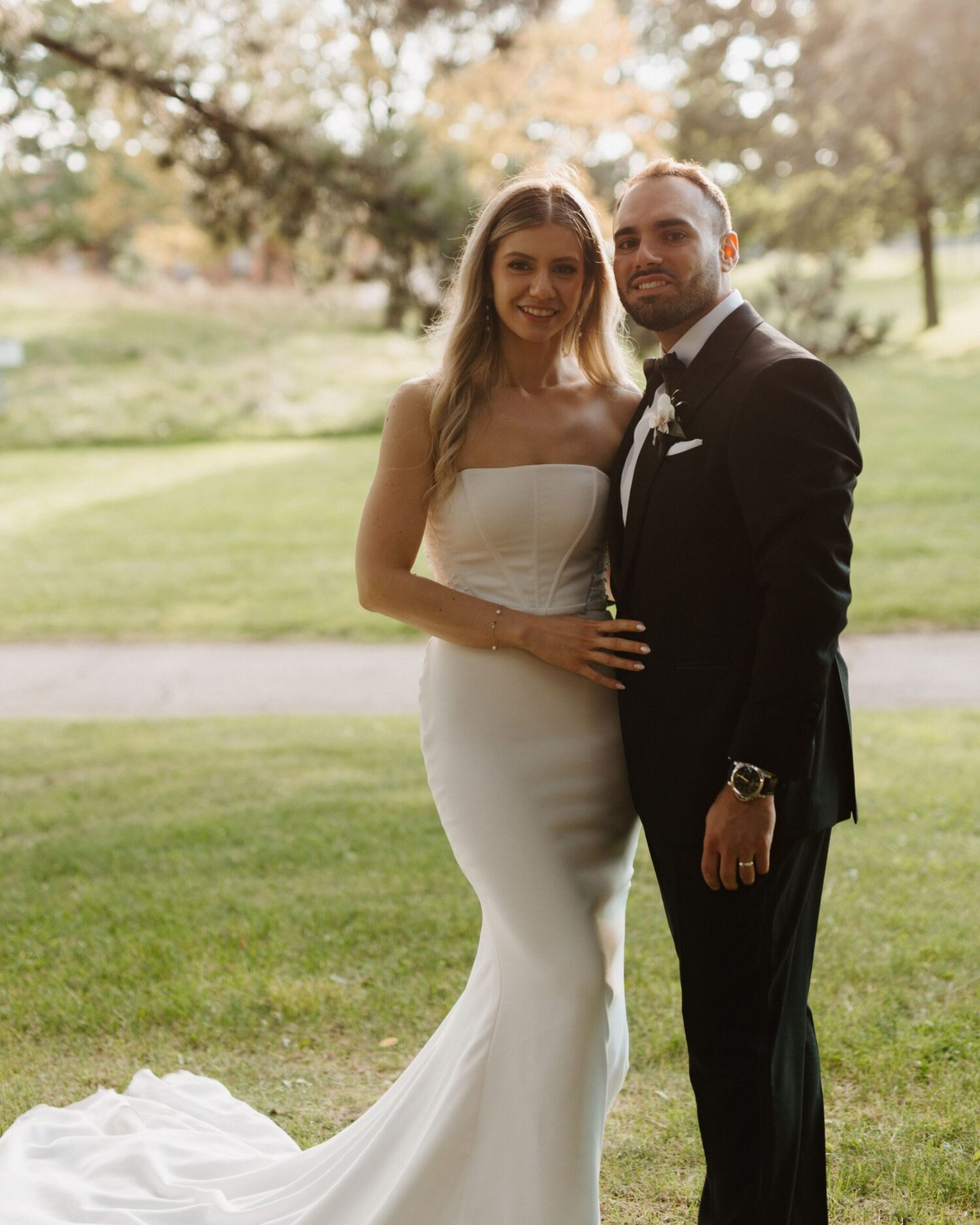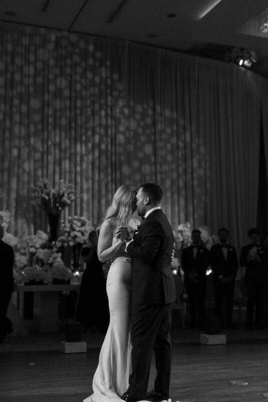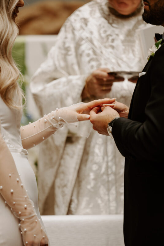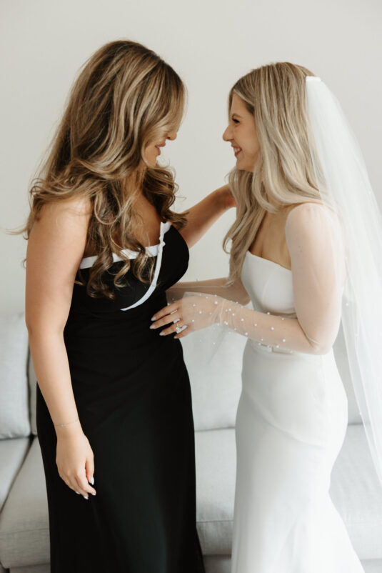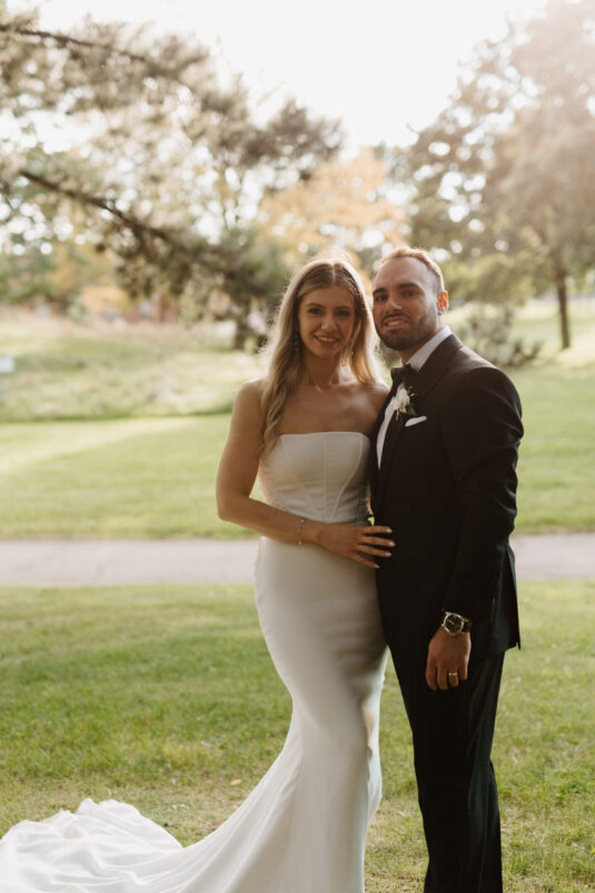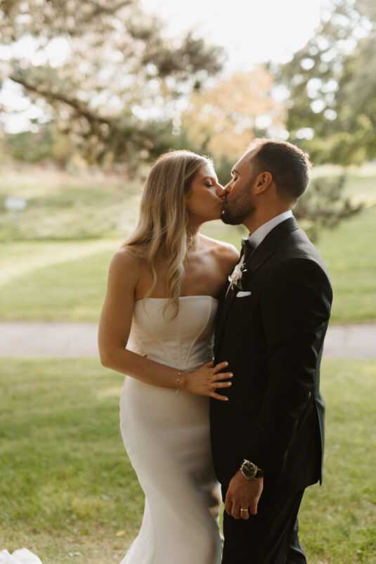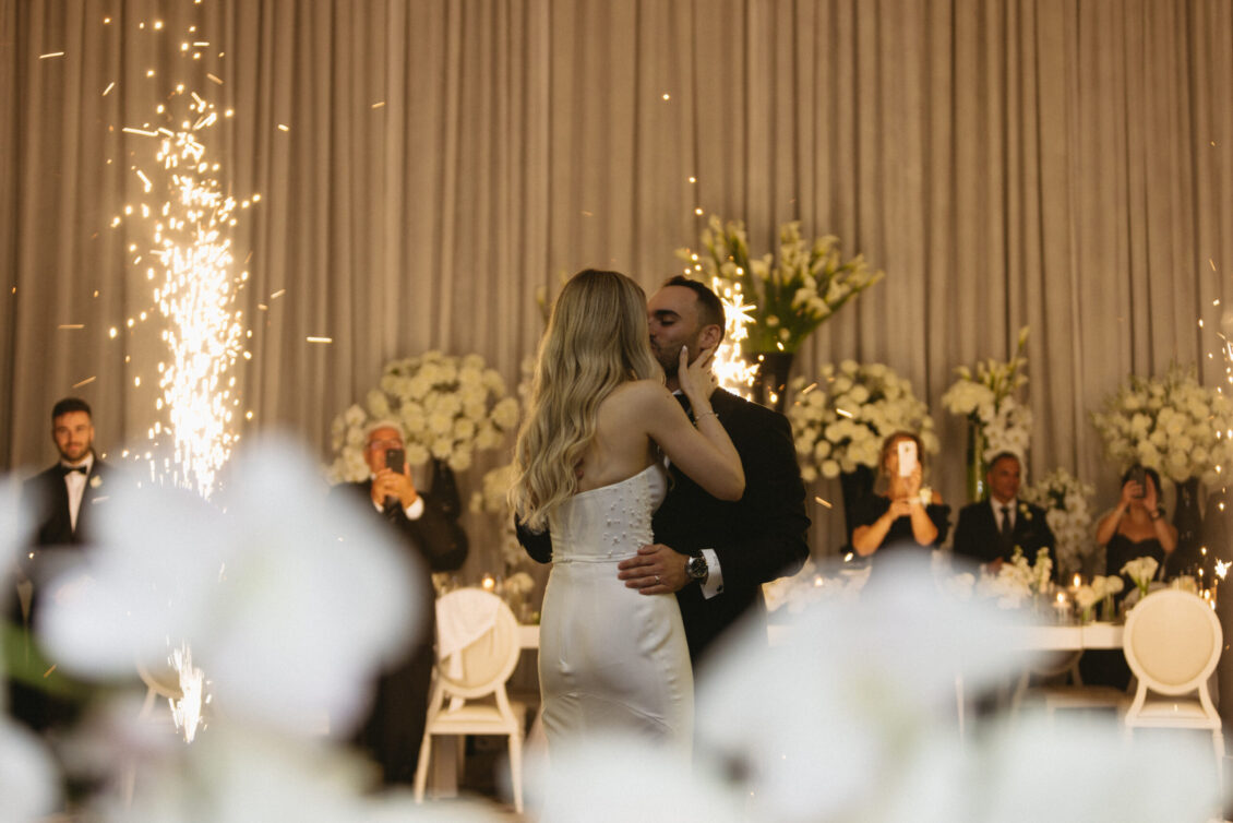 Immersed in modern black and white elegance, Alessia and William’s celebration was pure magic! Sleek black accents adorned the tables, while Wild Theory Floral wowed the couple (and guests alike!) with cascading orchids, sculpted calla lilies, and ranunculus. As the evening unfolded, guests were transported “back home” to the Italian countryside with caciocavallo, wine, peaches, grilled lamb chops, and authentic gelato. Scroll down to peek inside their intimate, romantic wedding!