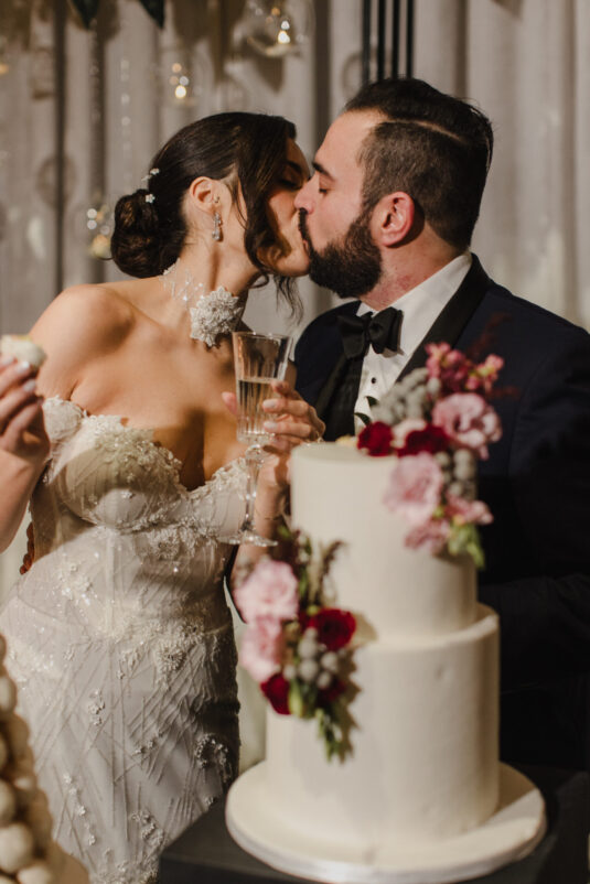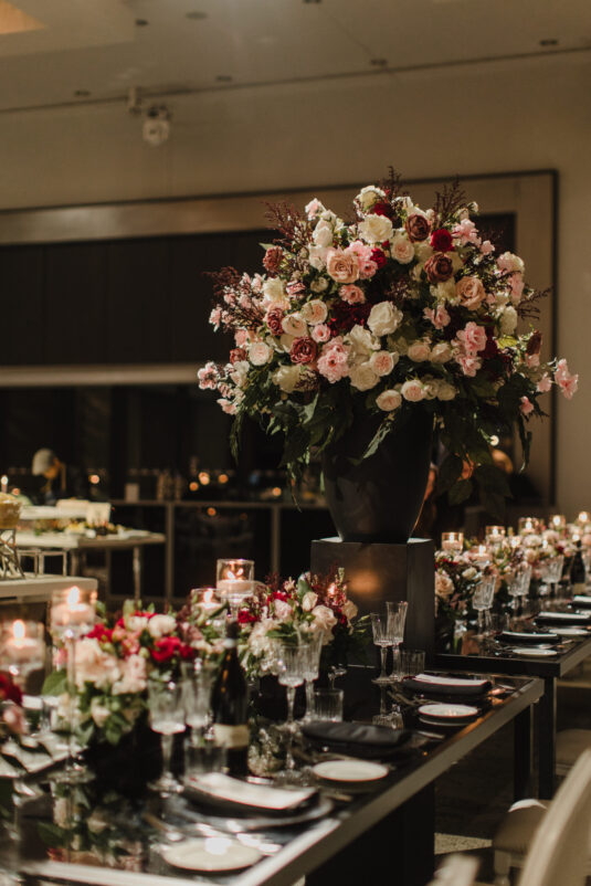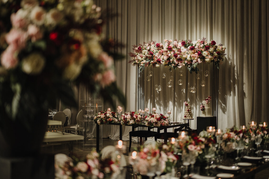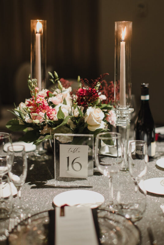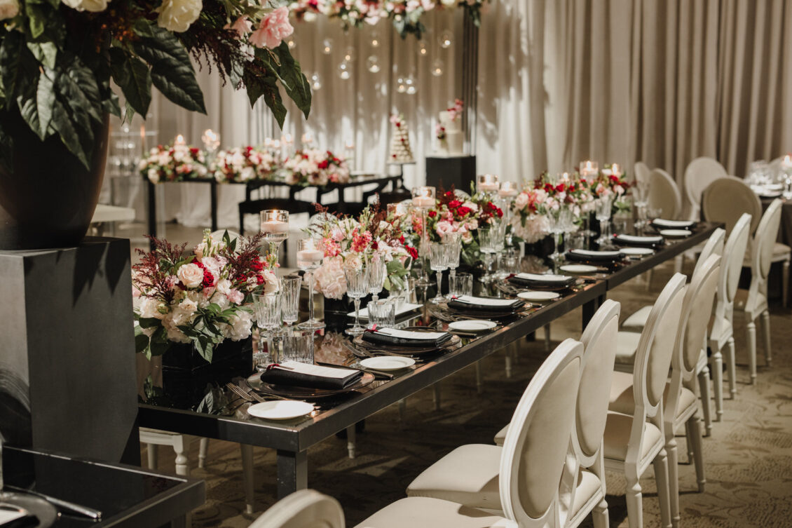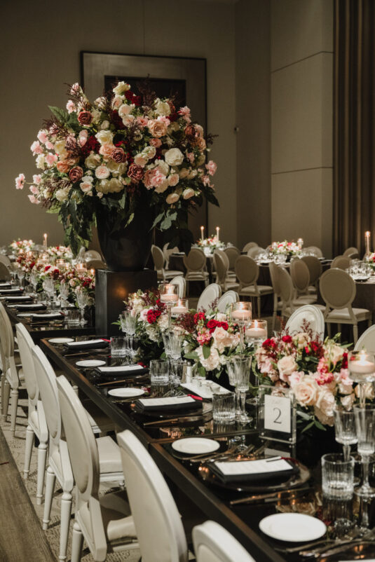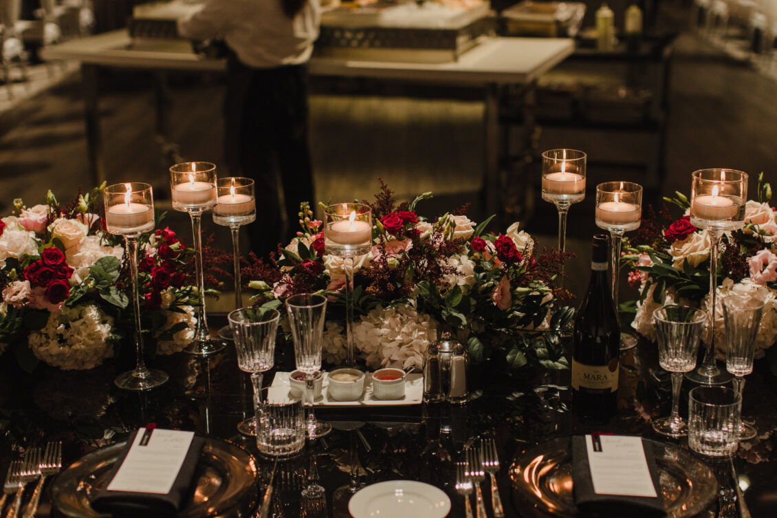 Wild Theory Floral and luxurious crystal-adorned tables. Guests enjoyed an unforgettable dining experience, savoring a carefully crafted menu that celebrated Christine and Vince’s love for food and each other.
