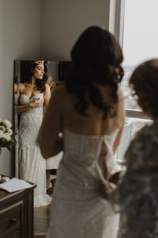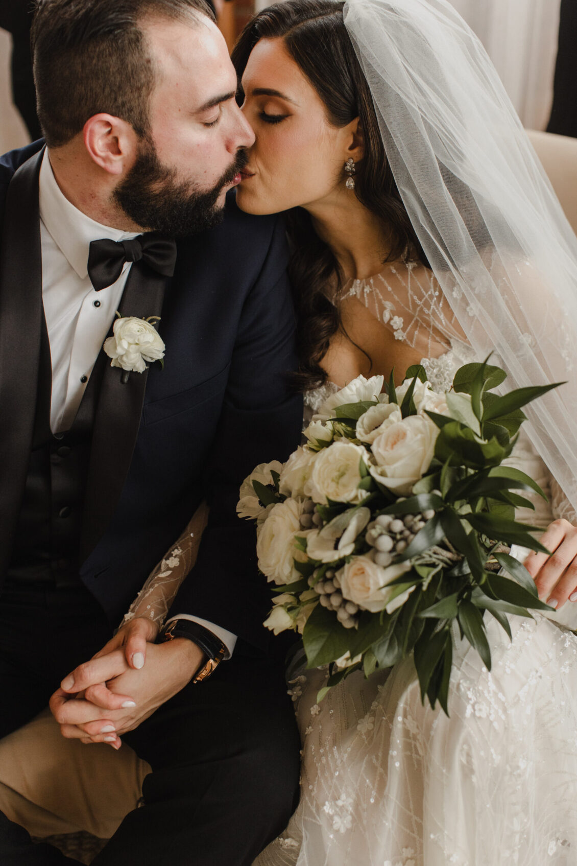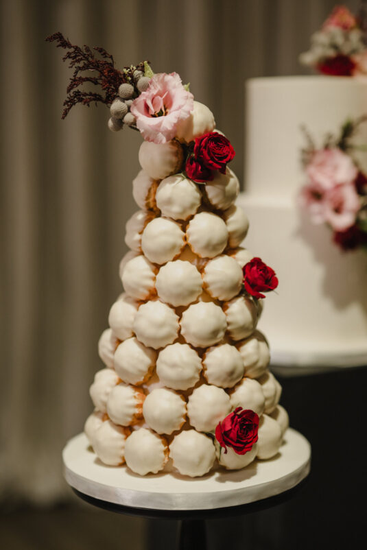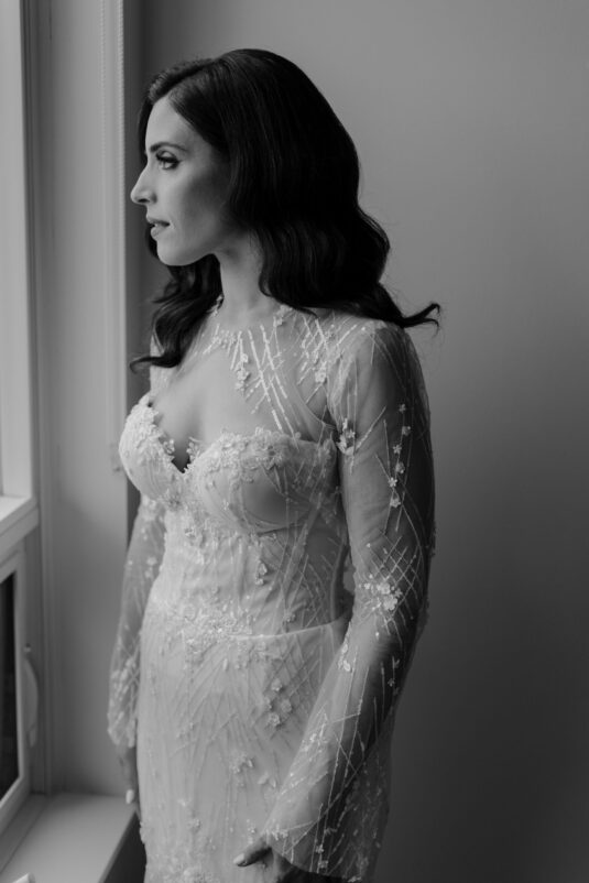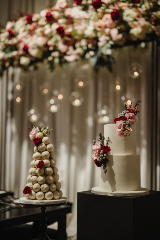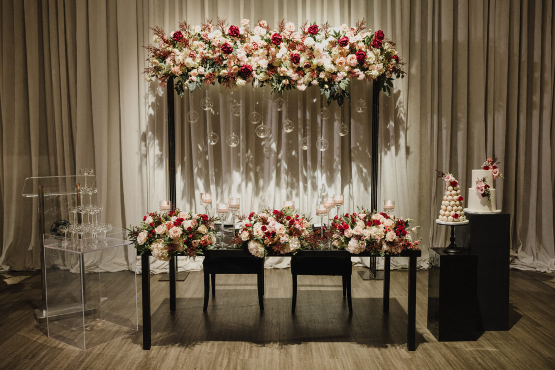 Christine and Vince’s love story blossomed during the COVID-19 pandemic, starting with a virtual connection and culminating in a magical first date at Vince’s restaurant, Sorsi e Morsi, where homemade gnocchi sparked “love at first bite.” Their wedding day, a celebration of their shared passion for cooking, broke away from tradition with a dark, opulent aesthetic. Held at the elegant Chateau Le Parc, the evening featured stunning red, black, and blush florals by