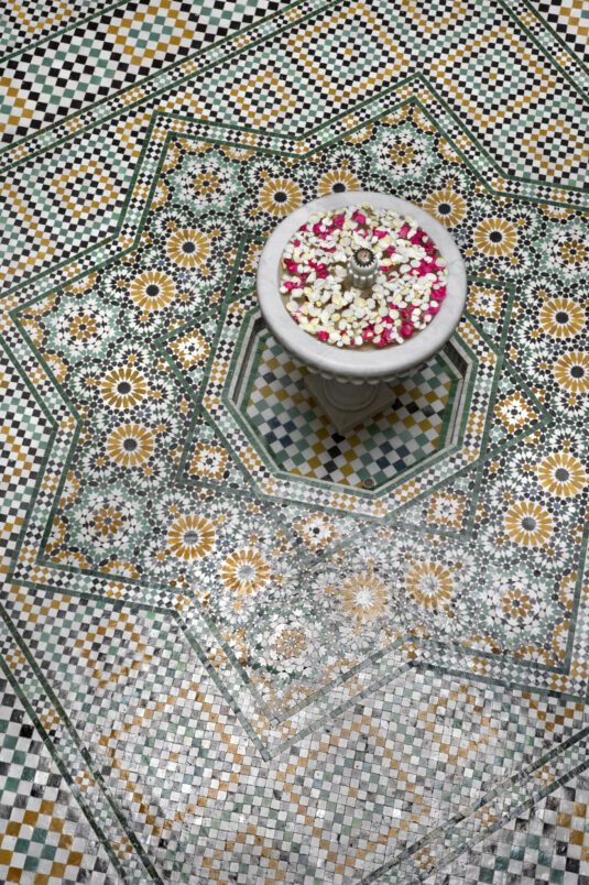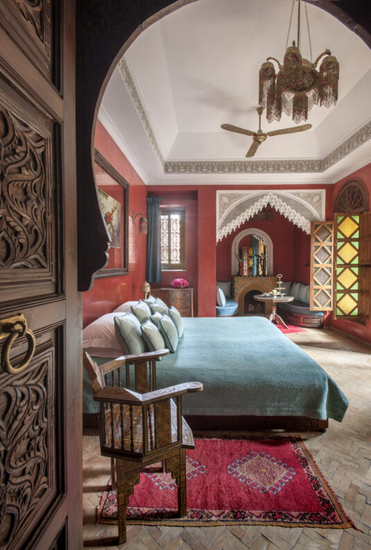 Upon arriving on a vibrant street next to the historic Saadian Tombs, our driver sought out the conciergerie ‘red cloaks.’ These iconic ambassadors of La Sultana were our first touchpoint, immediately setting the tone for impeccable service. They loaded our luggage onto a trolley and escorted us up a discreet side alley into the hotel’s main lobby. Check-in included the customary mint tea ritual, enjoyed in the tranquility of the stunning rooftop oasis with views over the city. Guests staying in suites are also given a mobile phone to connect with an assigned butler, ready to assist with anything throughout their stay.