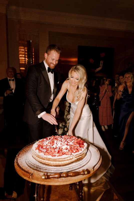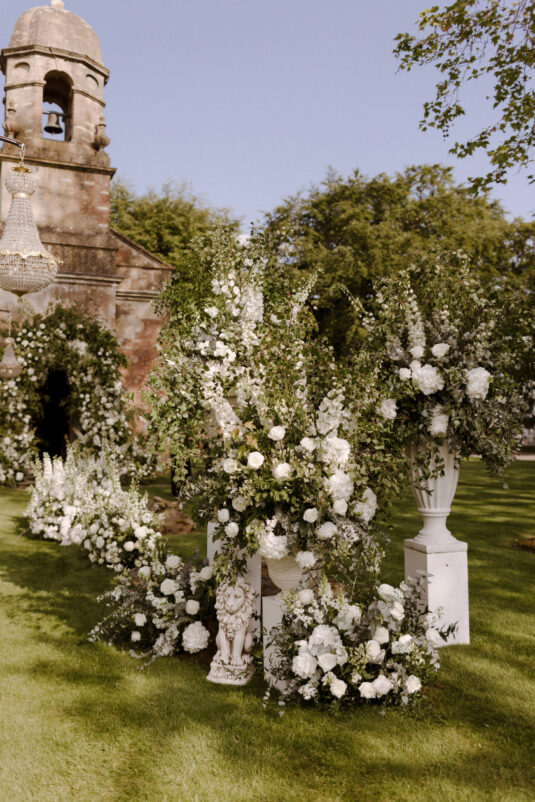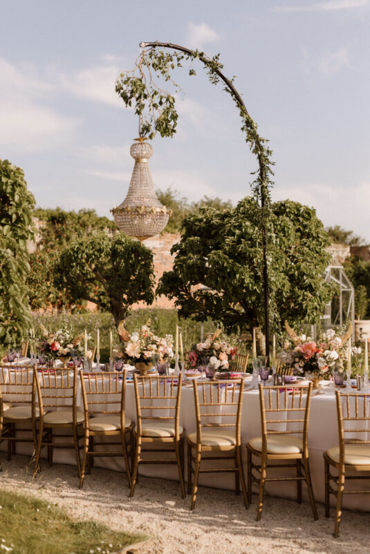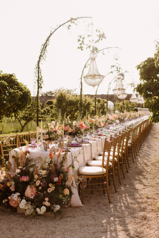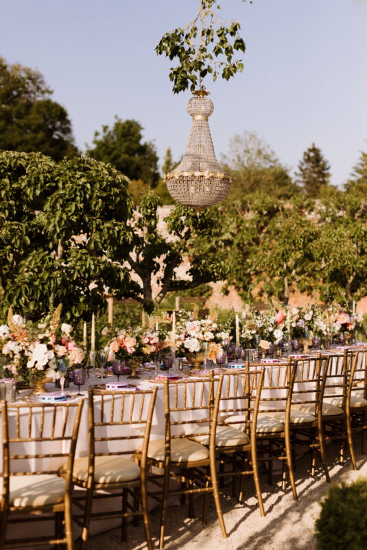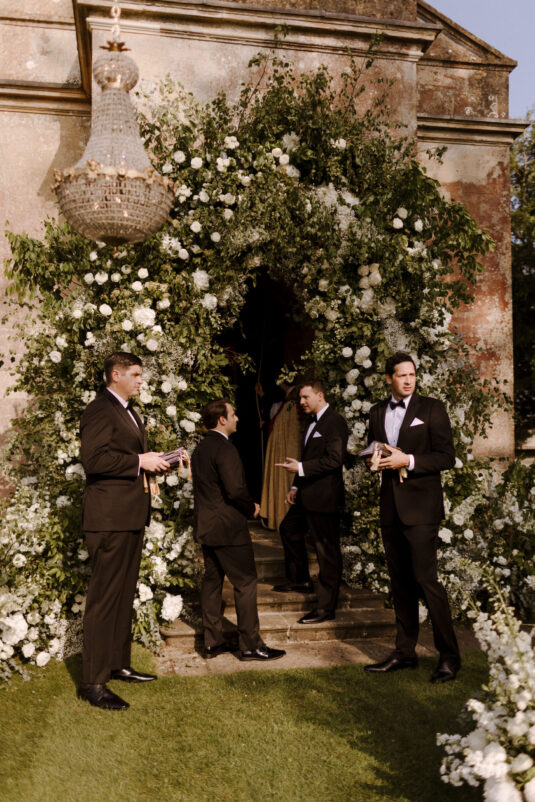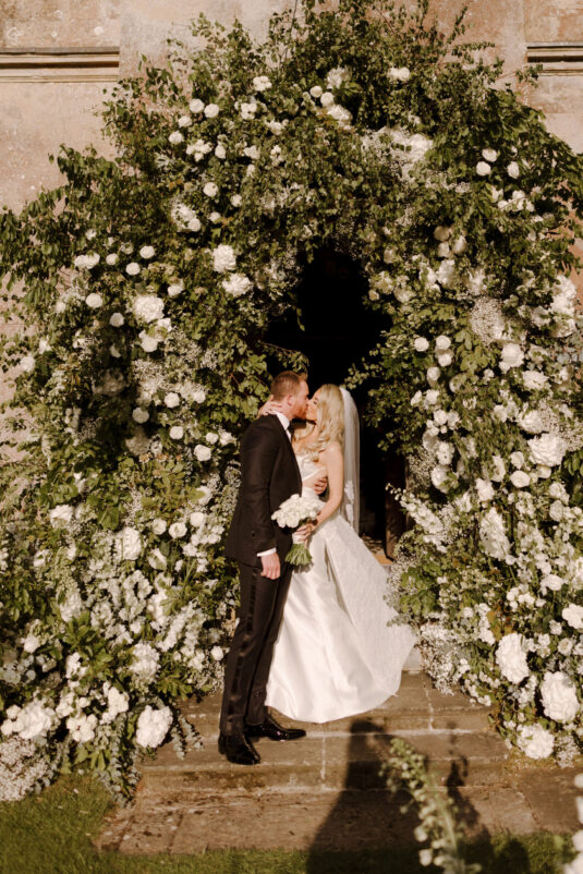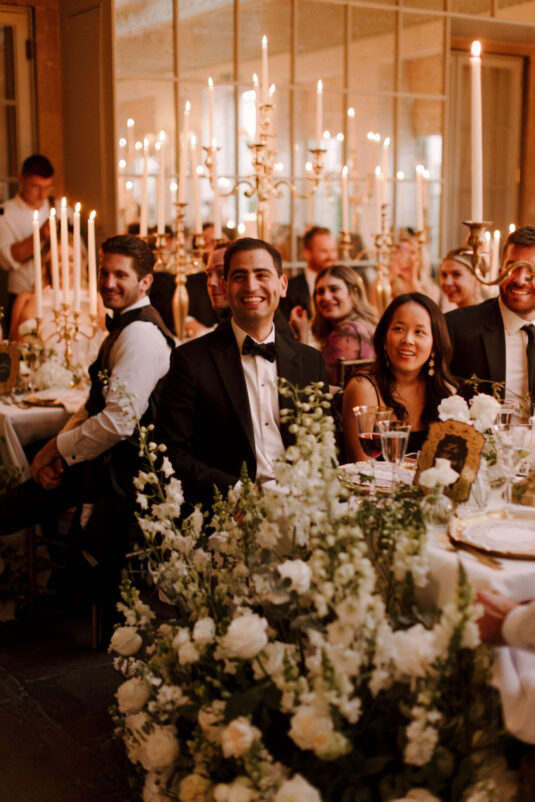 USA-based couple Alexandra and Jordan pulled out all the stops for an unforgettable three-day celebration at Babington House, a Grade II-listed manor dating back to 1705, located in the heart of Somerset, England. They created a magical experience for their friends and family from around the globe, kicking off with a secret garden party under the stars, complete with dining, music, and chandeliers, all set against a breathtaking sunset. The wedding ceremony dazzled in the ancient onsite chapel adorned with trailing florals, a chandelier-lined aisle, and regal lion statues. Guests sipped champagne from a tower before heading to the candlelit orangery for a dreamy wedding breakfast. The night was capped off with a giant millefoglie cake and dancing on the bar, continuing into the next day with a group honeymoon in Ibiza – the perfect start to their married life. Scroll down to take a peek inside this romantic wedding!