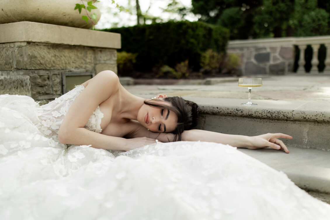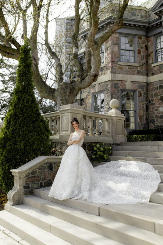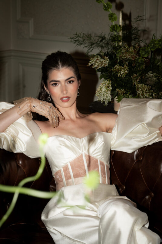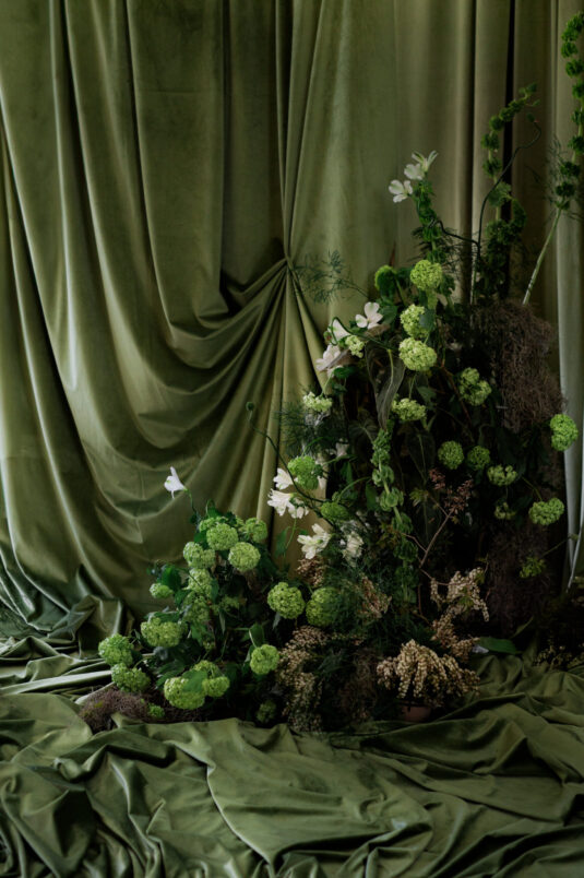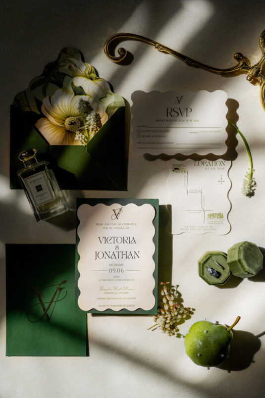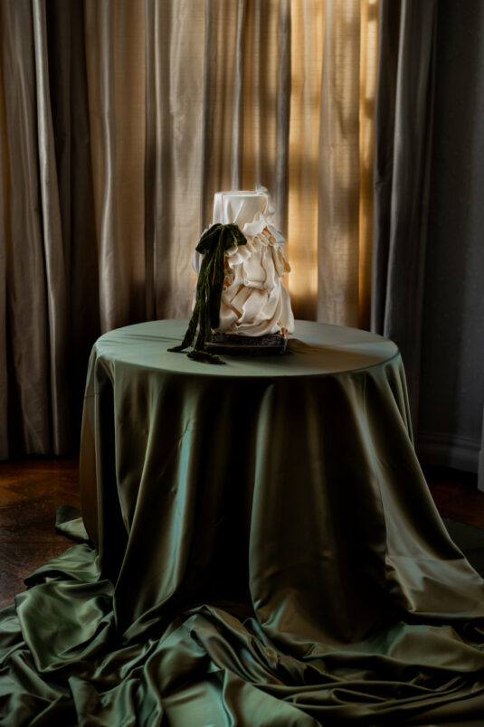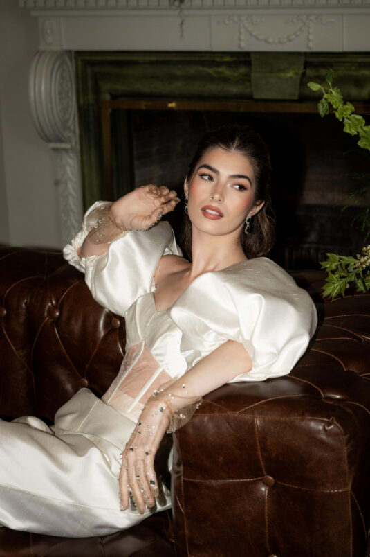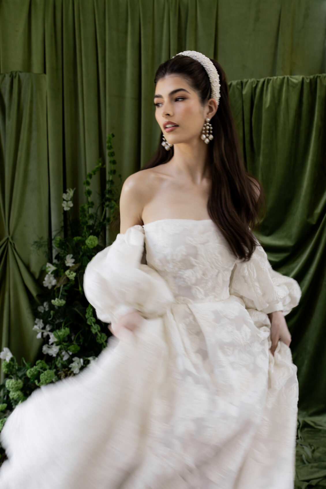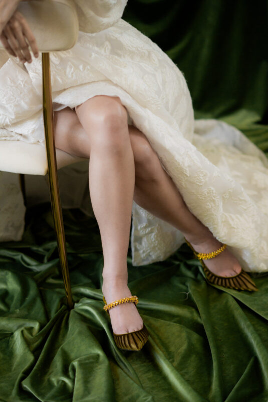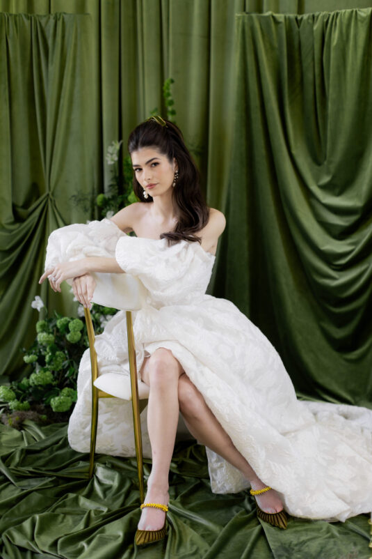 Burberry’s creative director, Daniel Lee, drew inspiration from his homeland’s landscapes and people and stated in his show notes that the collection should conjure “a feeling of warmth, protection and outdoorsy elegance.” The dramatic mossy-green setting and the idea of an ‘evergreen wedding’ inspired this winning editorial photoshoot, produced by a group of Toronto WedLuxe Members for Issue #32 of WedLuxe Magazine: Canadian Edition.