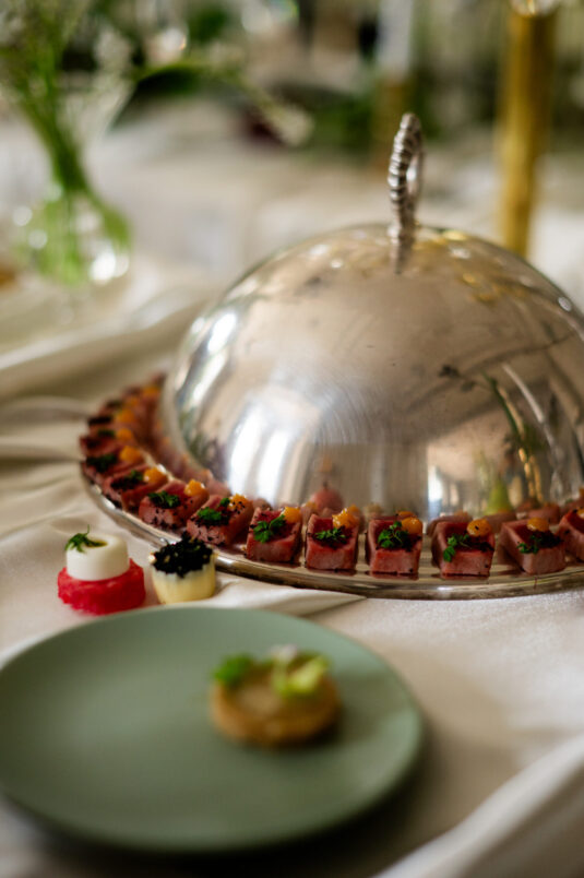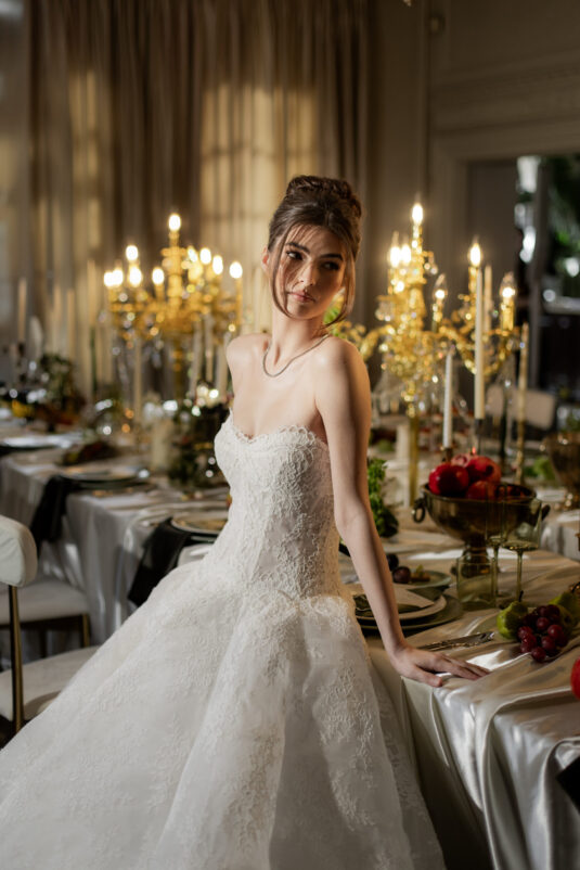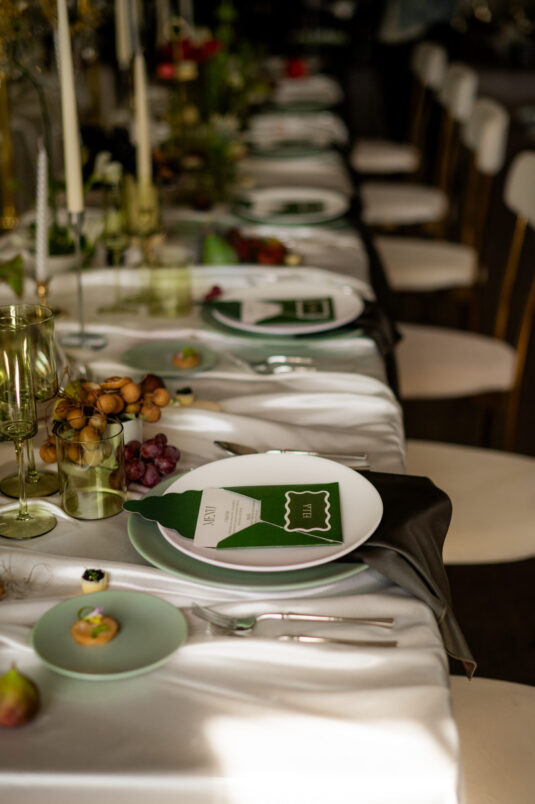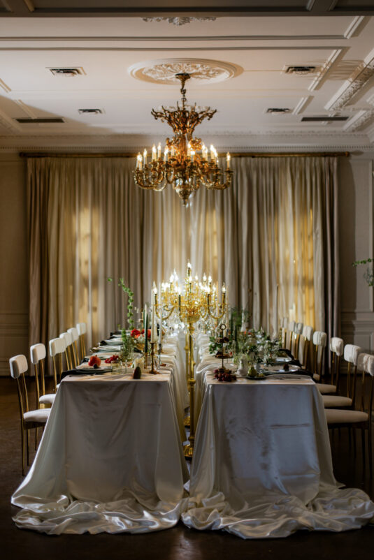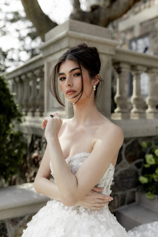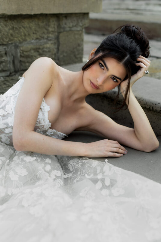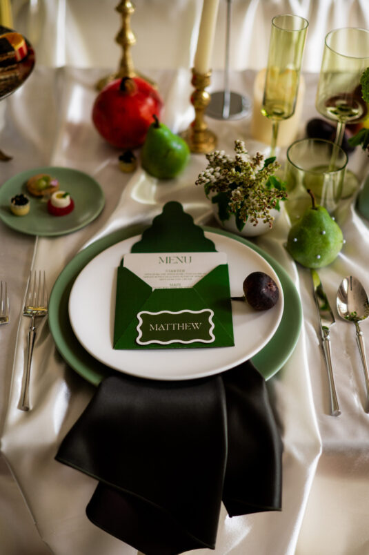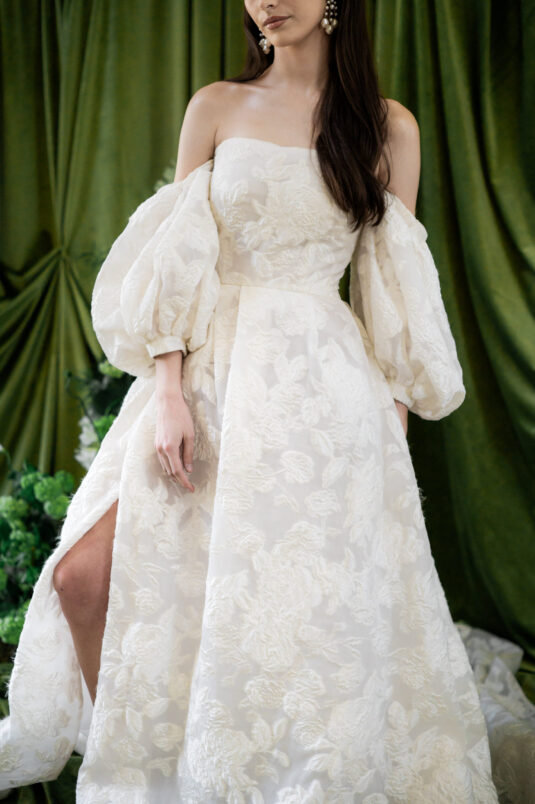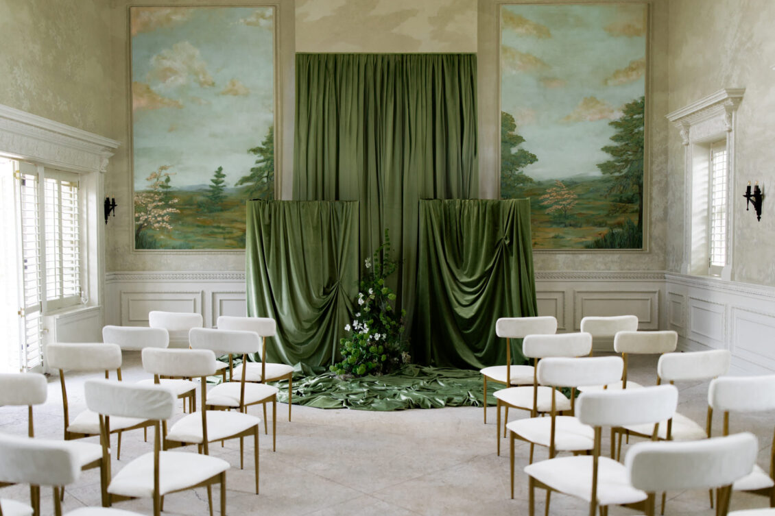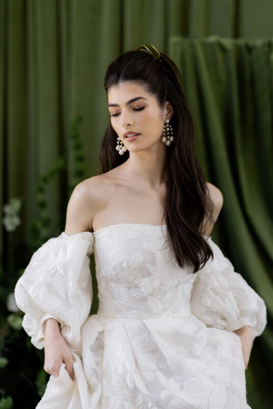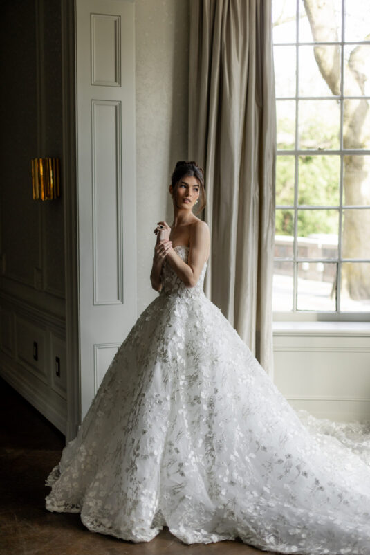 Burberry’s creative director, Daniel Lee, drew inspiration from his homeland’s landscapes and people and stated in his show notes that the collection should conjure “a feeling of warmth, protection and outdoorsy elegance.” The dramatic mossy-green setting and the idea of an ‘evergreen wedding’ inspired this winning editorial photoshoot, produced by a group of Toronto WedLuxe Members for Issue #32 of WedLuxe Magazine: Canadian Edition.