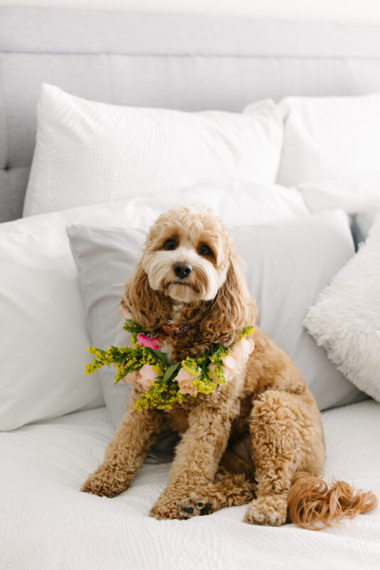 The day started with intimate details that captured the essence of their union. For example, Daniel placed his polished shoes beside a beautifully scripted invitation. Meanwhile, their beloved dog proudly wore a pink bandana, and each element reflected the couple’s unique style.