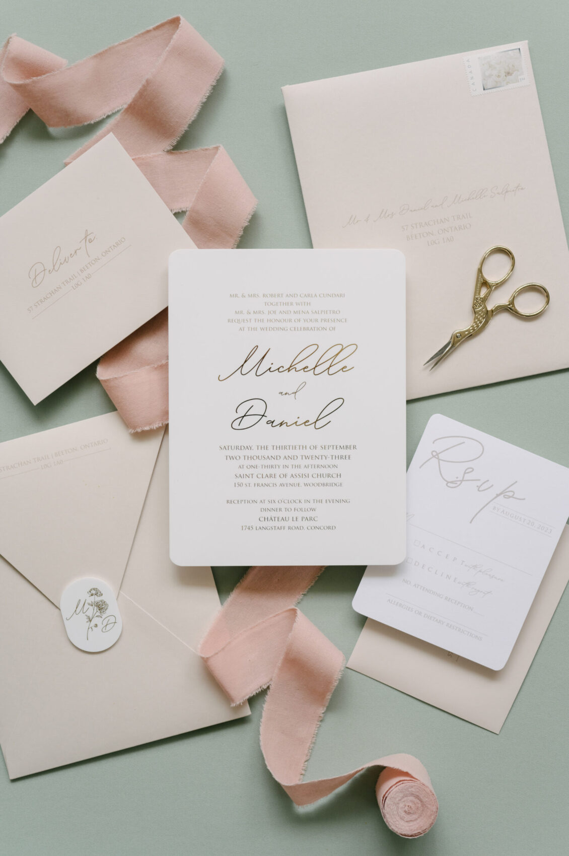 Michelle and Daniel’s love story began with a fateful New Year’s Eve encounter. Gradually, it blossomed into a romance that ultimately culminated in a real wedding at Toronto’s Chateau Le Parc. Their special day overflowed with elegance and heartfelt moments. Additionally, Michelle Cundari, the bride’s sister-in-law from Sincerely Yours Events , brought their vision to life and created a vibrant celebration.