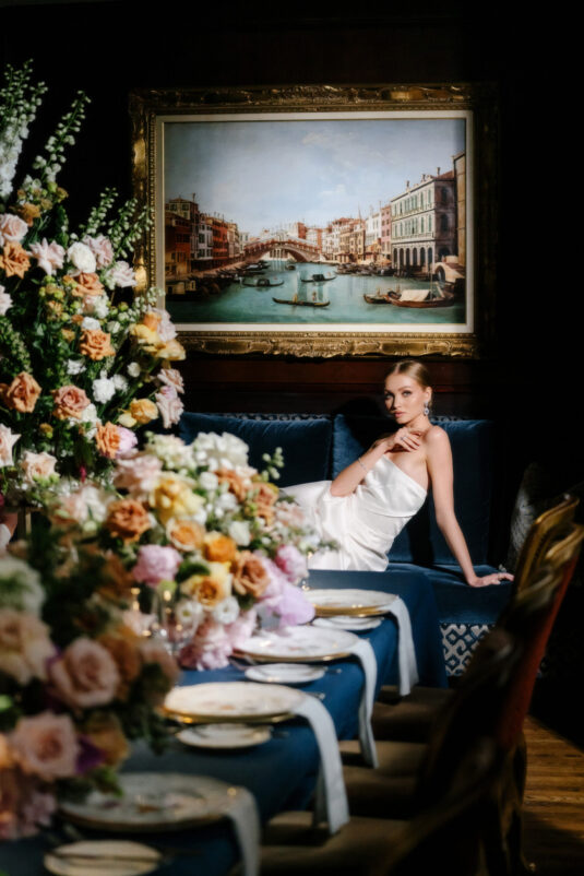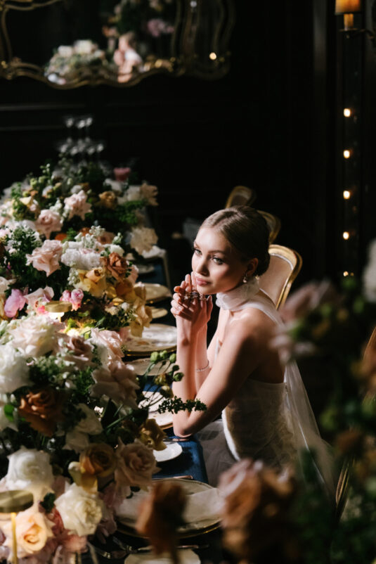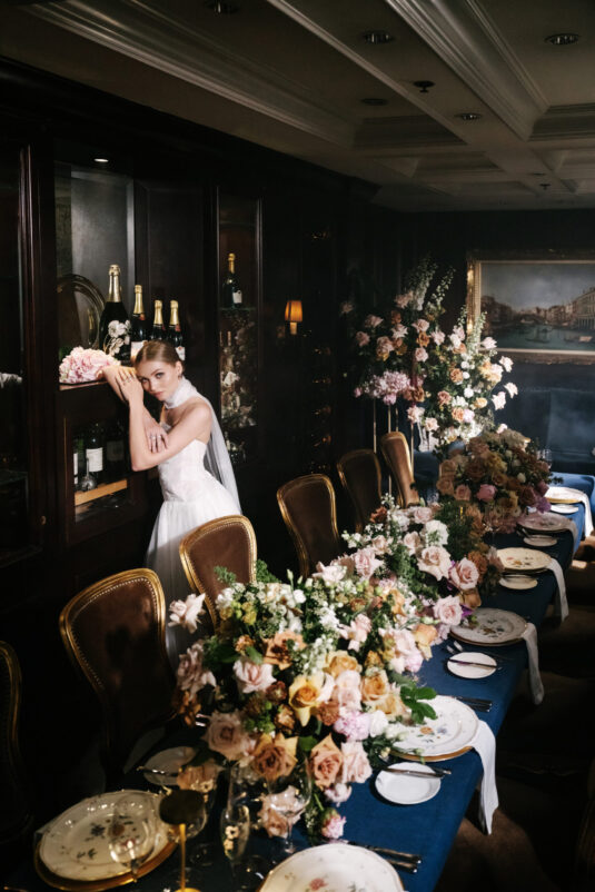 Vancouver, Canada’s Wedgewood Hotel sets the scene for this moody-deep-blue-hued fashion and floral editorial and brings together some of the best wedding professionals on the West Coast… all celebrating Vancouver wedding style. This feature was produced by CountDown Events with floral design by The Flower Factory and is featured in Issue #32 of WedLuxe Magazine: Canadian Edition.