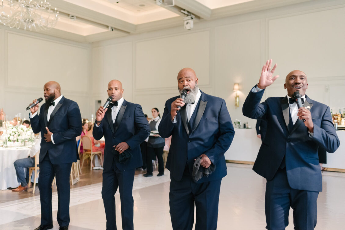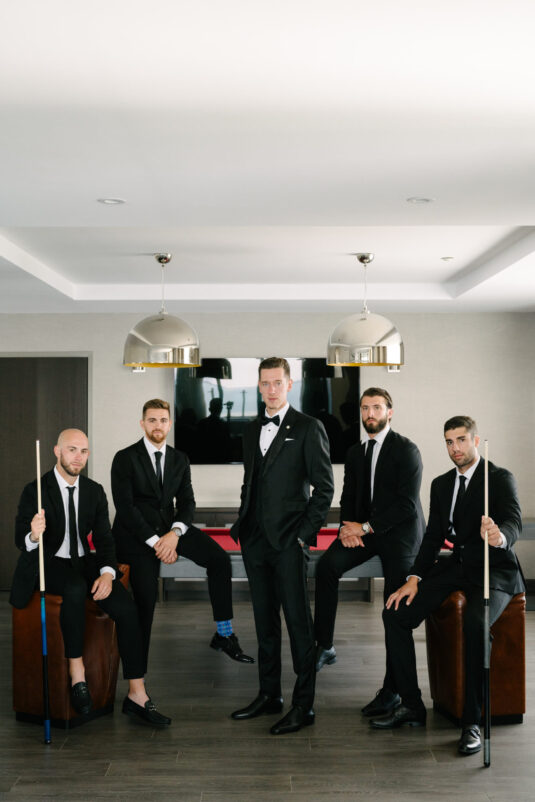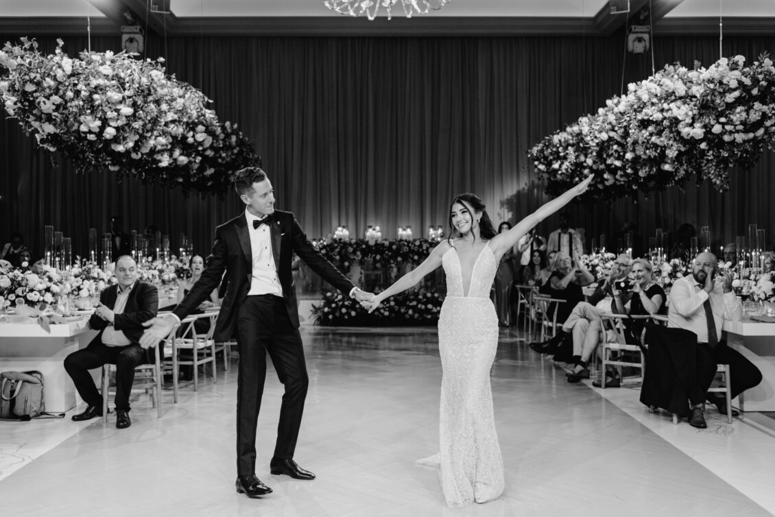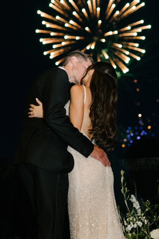 Cristine and Jordan’s wedding reception was a vibrant celebration, a grand fusion of Greek, Italian, and Canadian traditions, bringing together 334 guests in an electric atmosphere. From the very start, the evening buzzed with energy, as attendees danced to the enchanting sounds of a live Greek Bouzouki player during the cocktail hour. The festive spirit continued with a four-piece Motown-style group serenading the diners, prompting everyone to rise from their seats and dance amidst the tables. As dinner gave way to dancing, a saxophonist infused the venue with Mykonos vibes during the DJ set, maintaining the high spirits. The culmination of this remarkable night was a spectacular firework display that lit up the sky. Family, friends, and many from Jordan’s hockey circle, who flew in especially for the occasion, joined in the jubilation, making it an unforgettable celebration of love and joy.