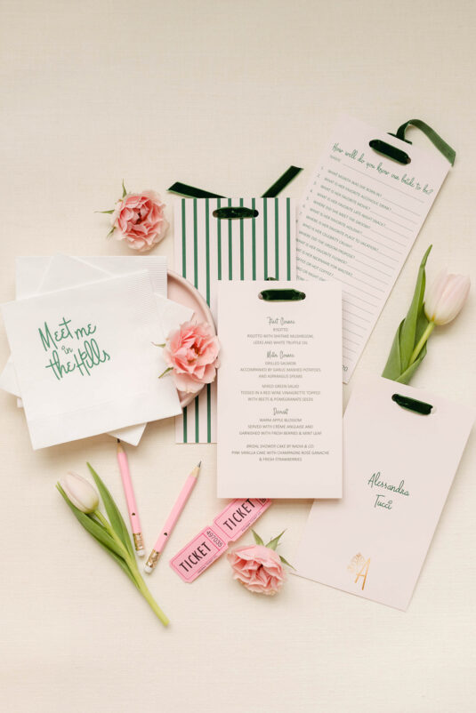 Alessandra’s bridal shower was a dreamy escape at the iconic Beverly Hills Hotel. As part of the Sincerely Yours Events team, perfection in planning was a given! With floral arrangements channeling the Polo Lounge and stationery that brought the Pink Palace vibe to life, every detail was on point. From personalized ‘Meet me in the hills’ coffee cups to a chic hotel key seating chart, the room was a design masterpiece. Guests were treated to custom fashion sketches while serenaded by Cody Ciuisa, making it a day to remember!