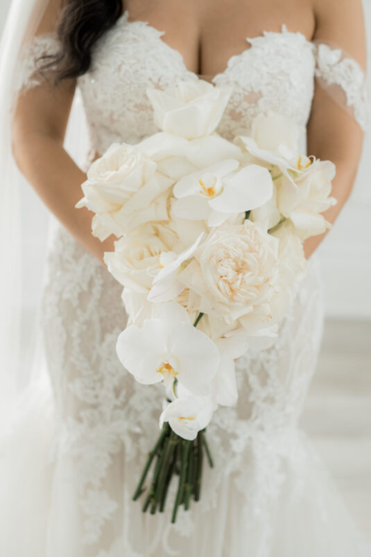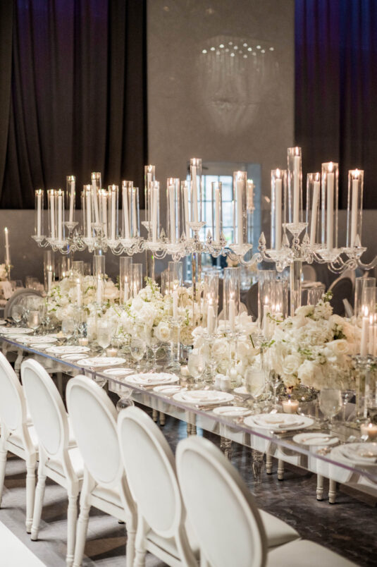 was nothing short of spectacular, with all-white florals and décor creating a luxurious backdrop for the celebration. Every detail, from the invitations to the grand setting, reflected the couple’s vision of modern elegance. This luxe all-white wedding at Liberty Grand will inspire anyone who dreams of a timeless and sophisticated celebration.