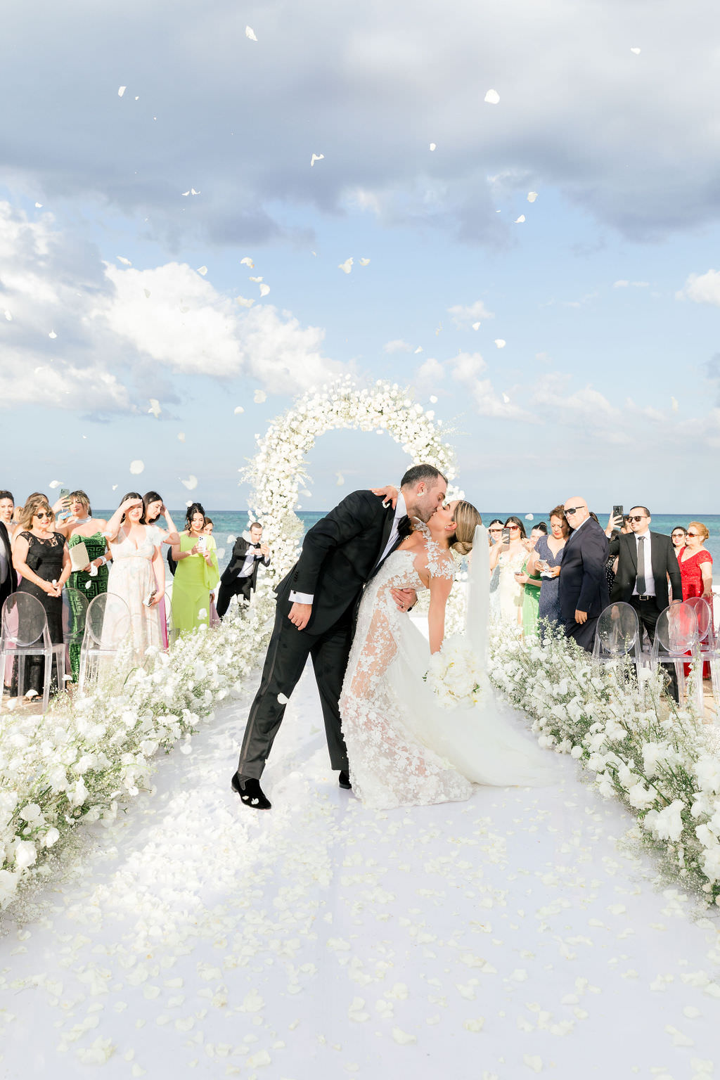 The moment Lorena and Amir sealed their vows with a kiss, rose petals floated down as guests cheered. The newlyweds then shared a private, intimate boat ride, stealing a few moments for themselves as they sailed along the calm waters. The serene surroundings provided the perfect romantic escape before they rejoined their guests for the reception.