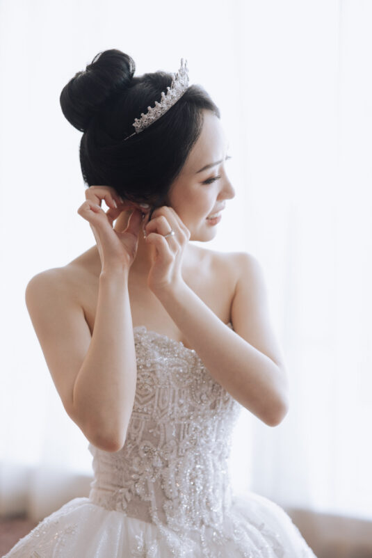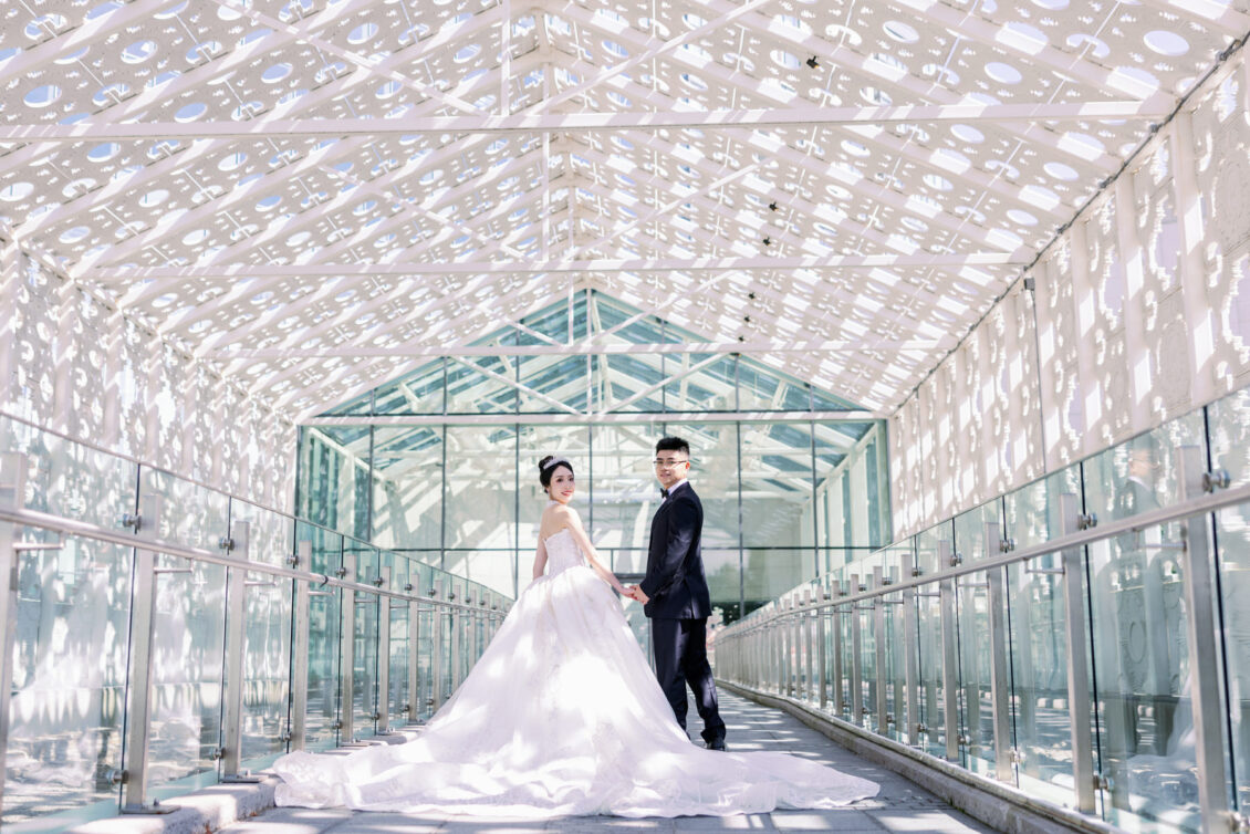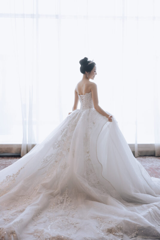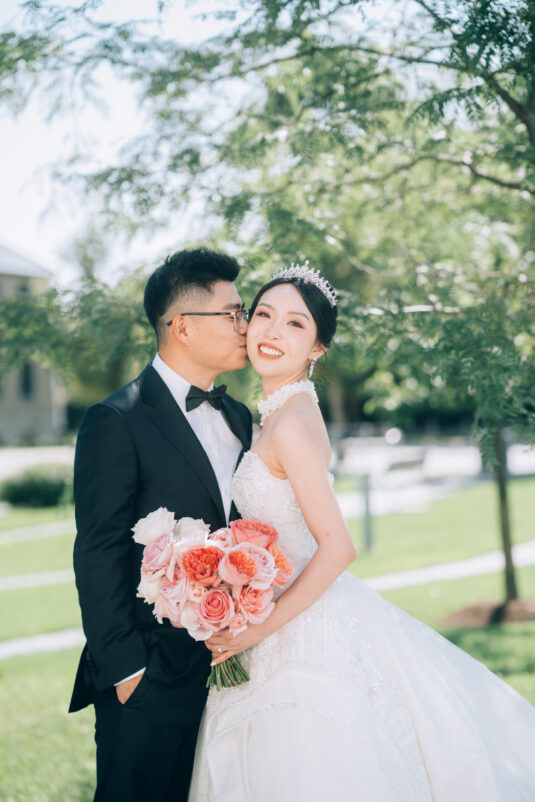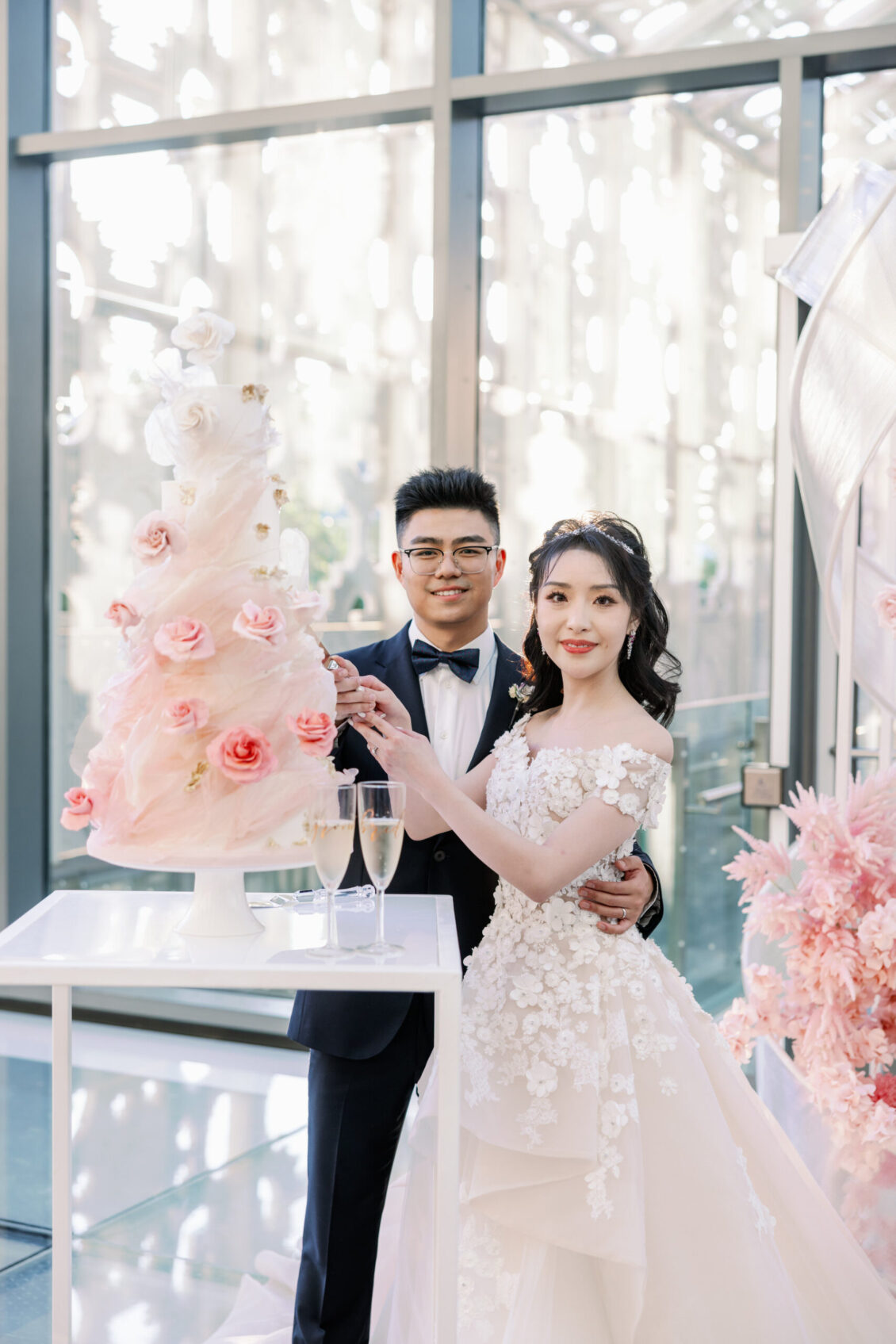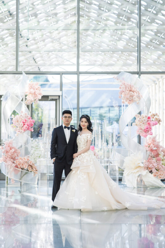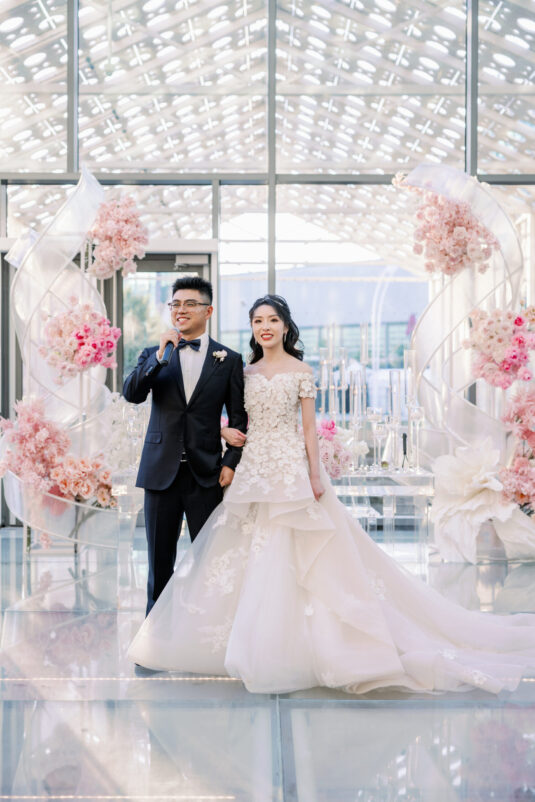 Youwen and Joe’s love story began like something out of a rom-com. After meeting at a mutual friend’s wedding, it took a serendipitous dinner date six months later for sparks to fly. Their shared passions—including snowboarding—led them to a breathtaking mountaintop proposal, and their wedding day was nothing short of magical.