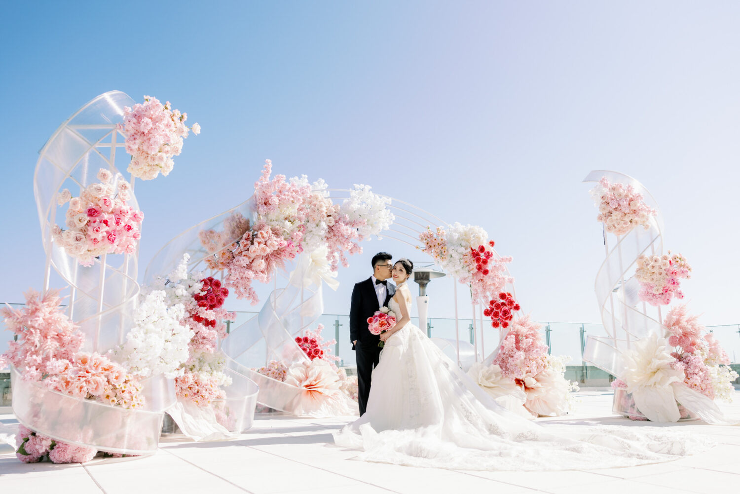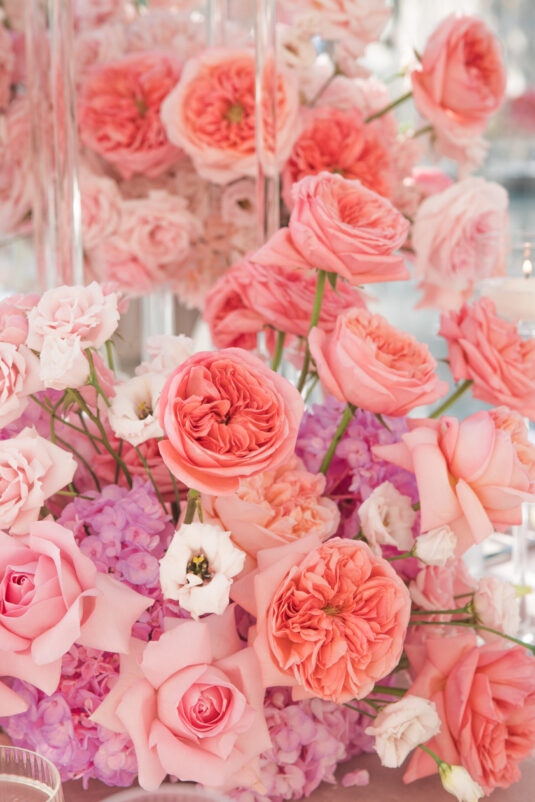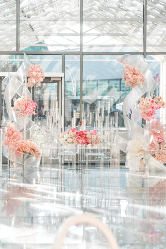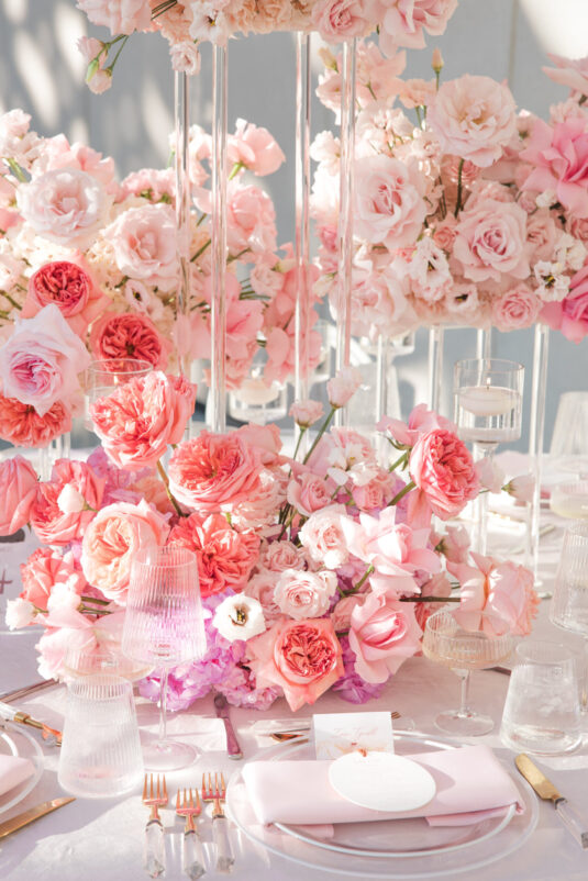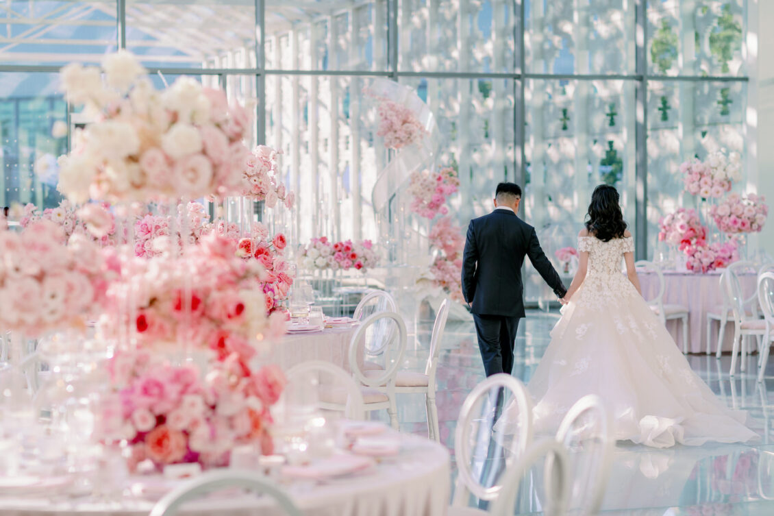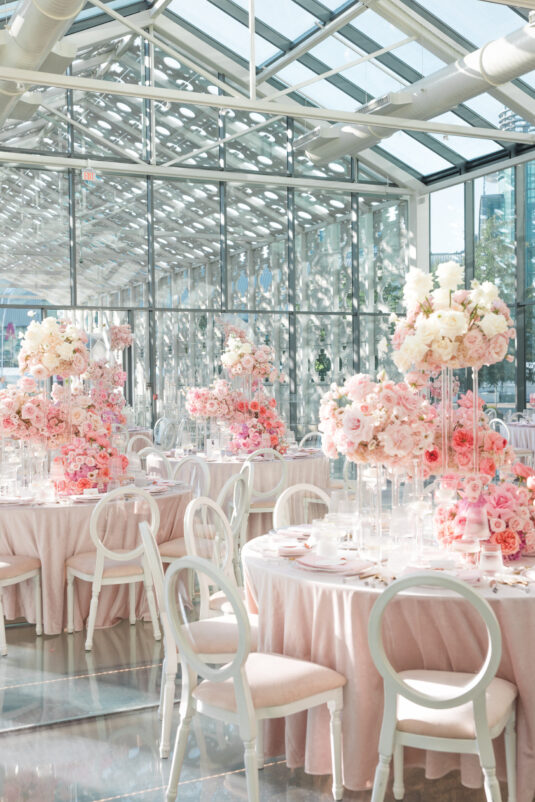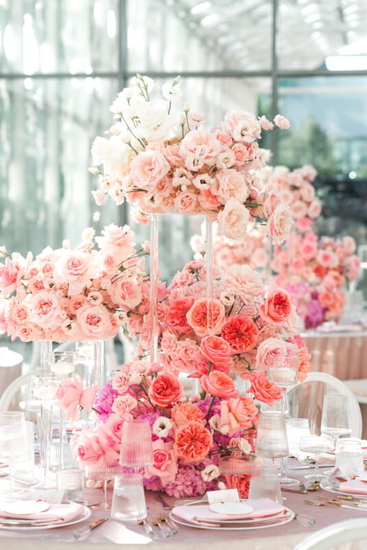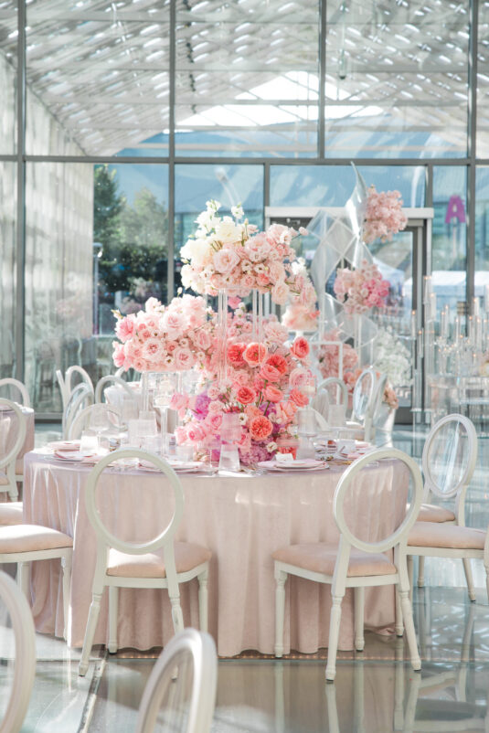 overseeing the stunning planning and design. The ceremony was a dreamy blend of romance and luxury, centered around an enchanting pink ombre theme. Roses in varying shades of pink and red flowed seamlessly throughout the space, creating a breathtaking “pink wonderland” that set the tone for the entire celebration.