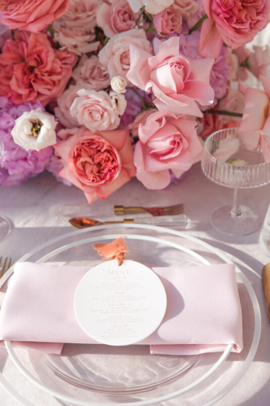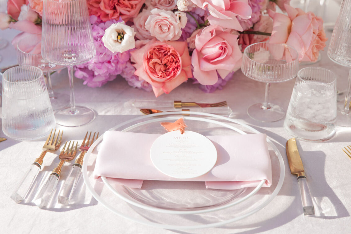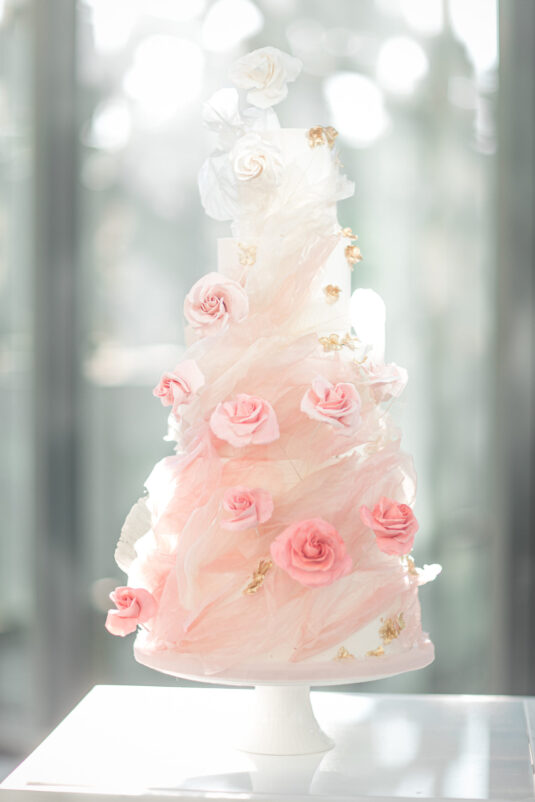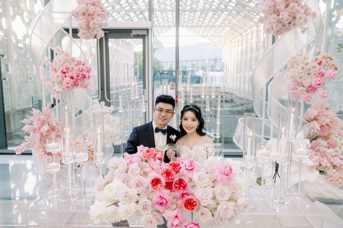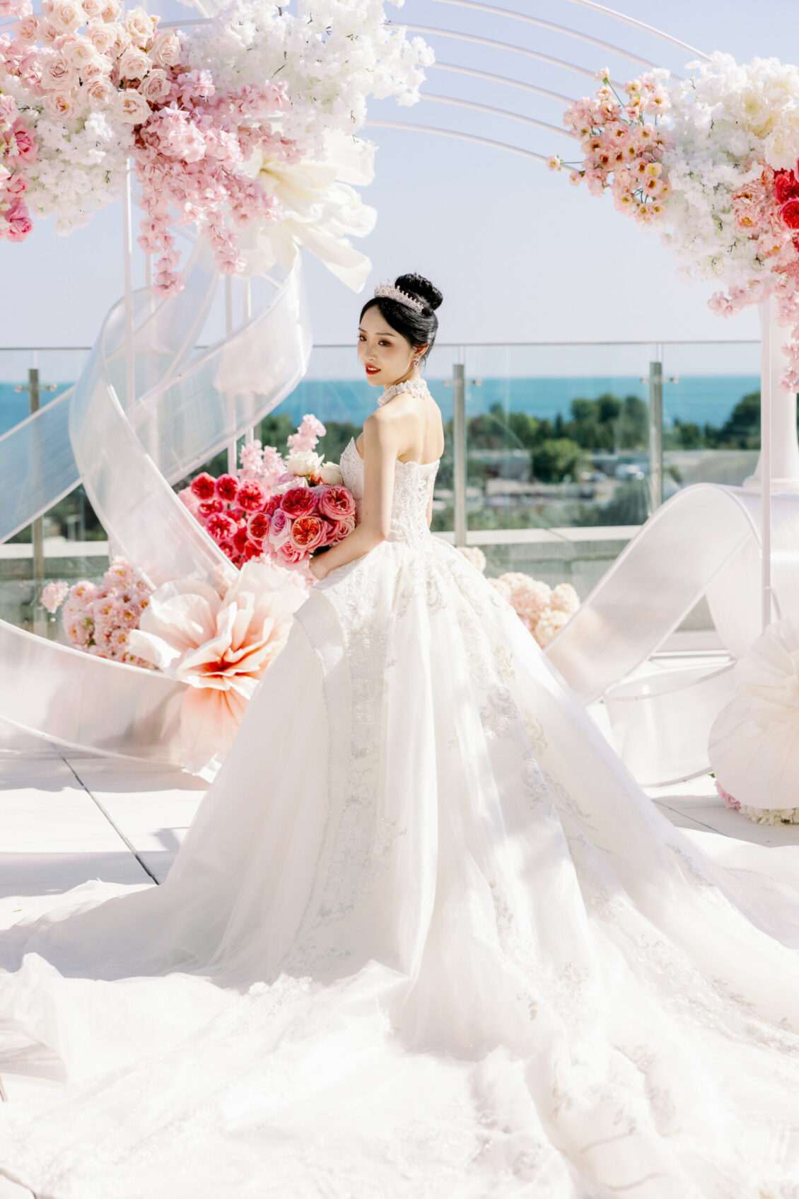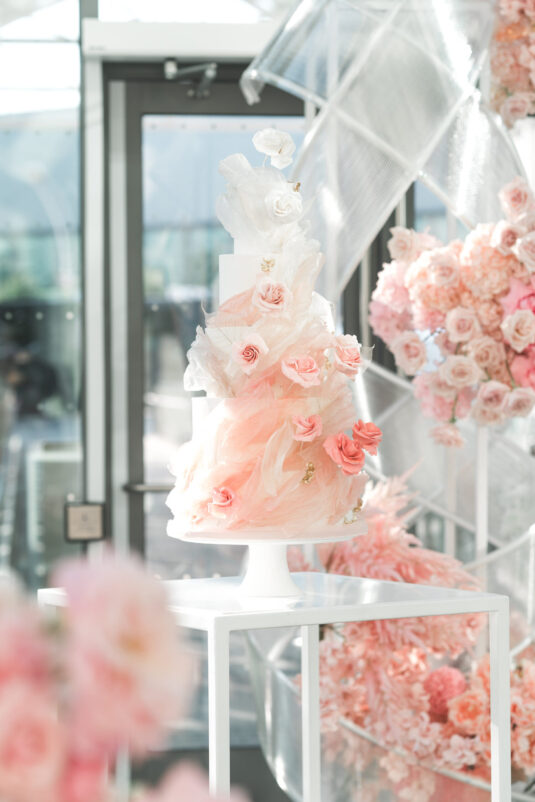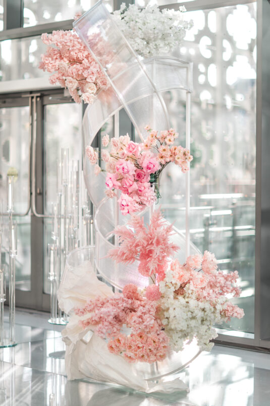 overseeing the stunning planning and design. The ceremony was a dreamy blend of romance and luxury, centered around an enchanting pink ombre theme. Roses in varying shades of pink and red flowed seamlessly throughout the space, creating a breathtaking “pink wonderland” that set the tone for the entire celebration.