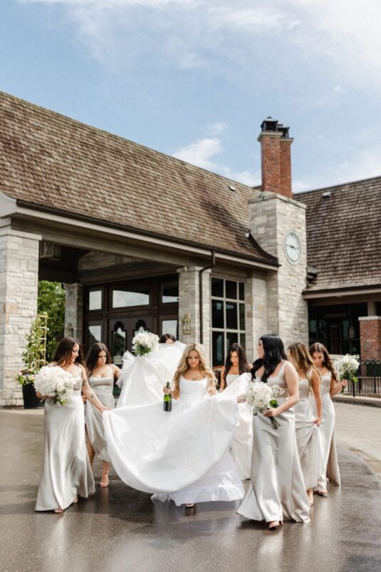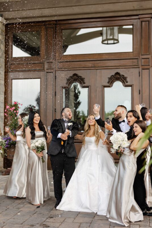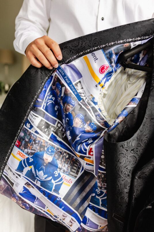 With every detail perfectly planned by the bride, the couple enjoyed a seamless celebration. The groom’s custom Calabretta suit, lined with Toronto Maple Leafs memories, was a thoughtful nod to the couple’s early days spent at the hockey rink. From the energetic bridal party to every flawless moment, this wedding was a dream realized, held in the enchanting setting of