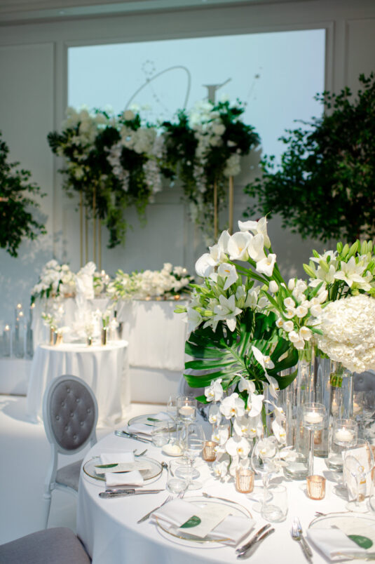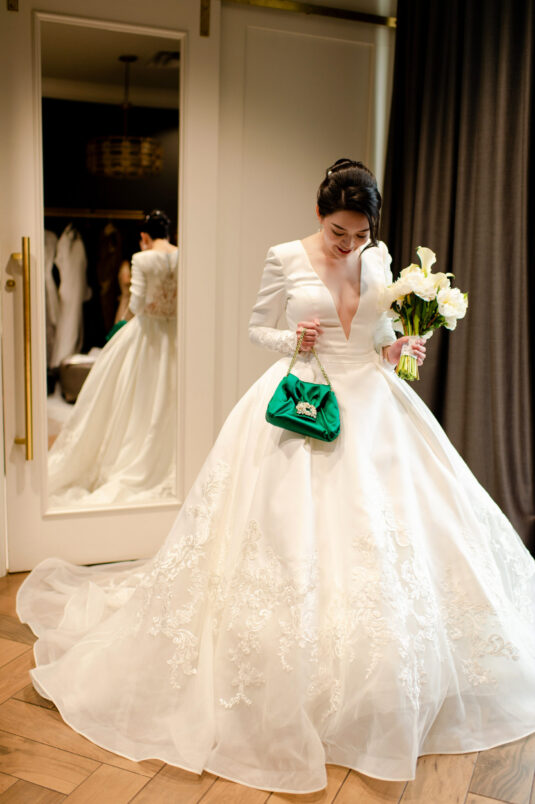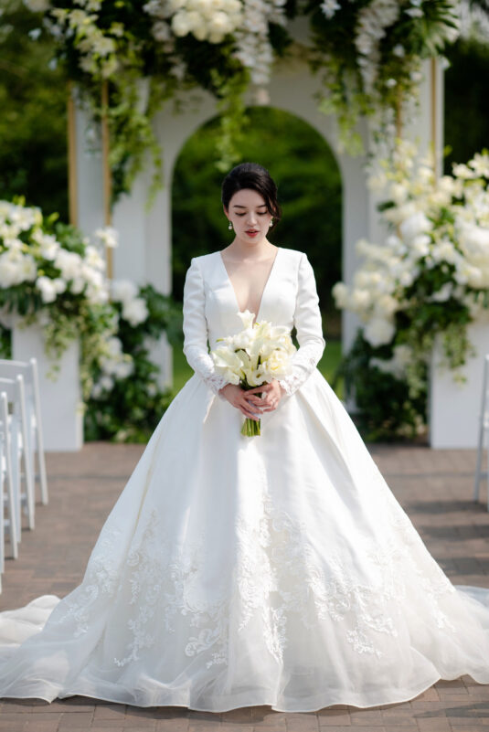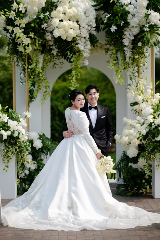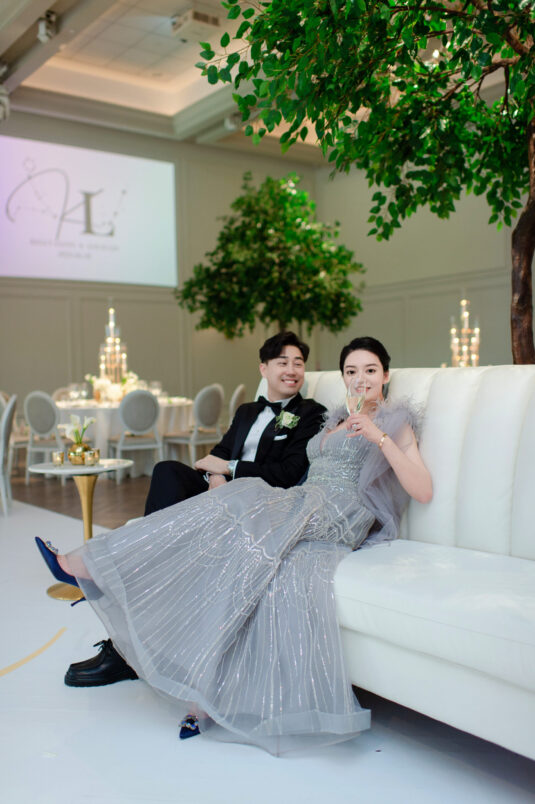 , was a breathtaking celebration of love, elegance, and fun, all put together within just four months. Themed “Cheers to Love,” the day perfectly encapsulated the couple’s vibrant personalities—Kelly’s love for champagne and Louis’ passion for bubble tea—through thoughtful design elements. A stylish bar setup and a late-night bubble tea station added an unexpected twist to the elegant affair, creating a memorable fusion of sophistication and personal charm.