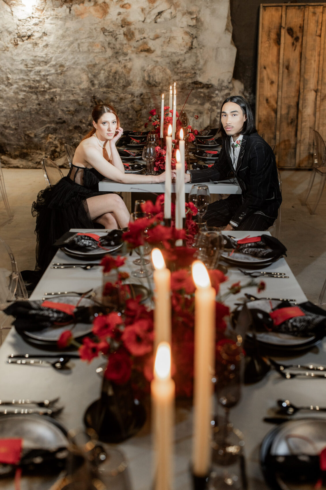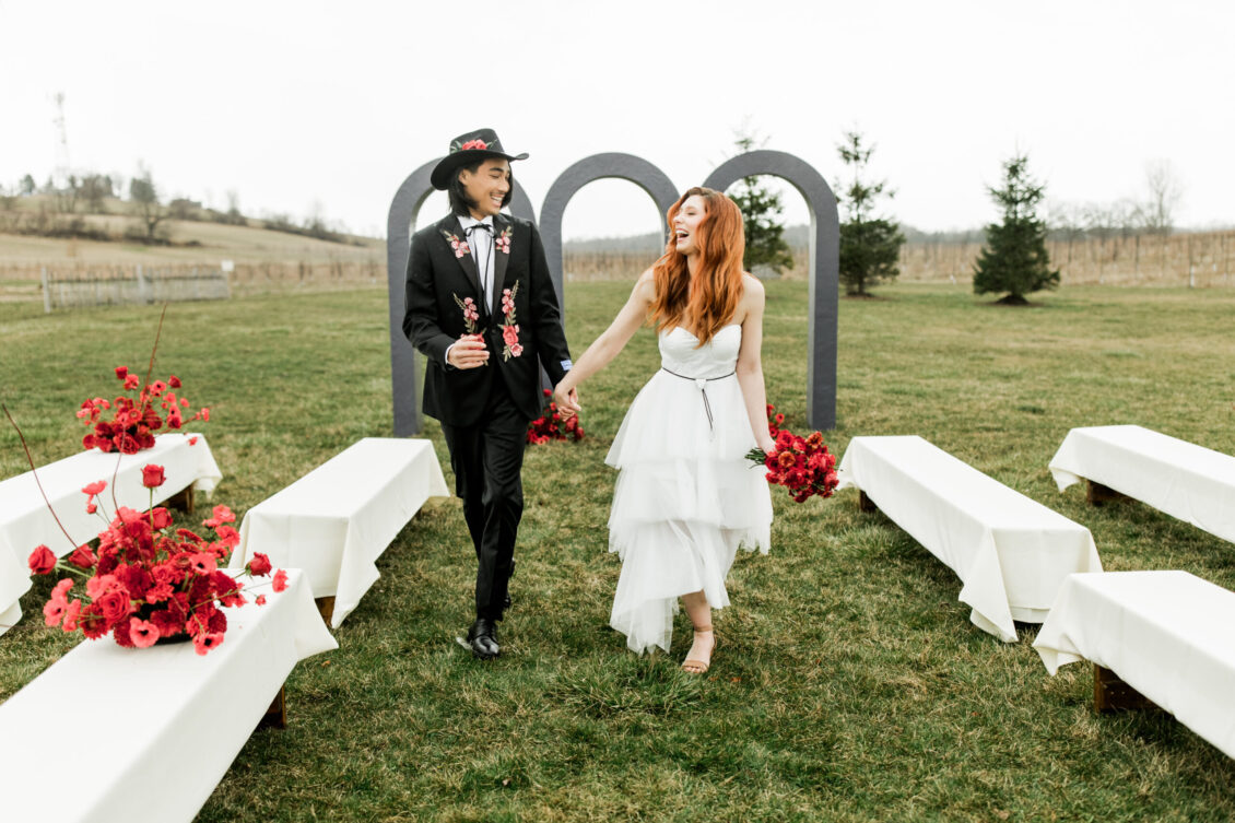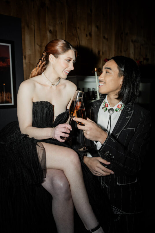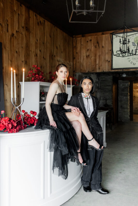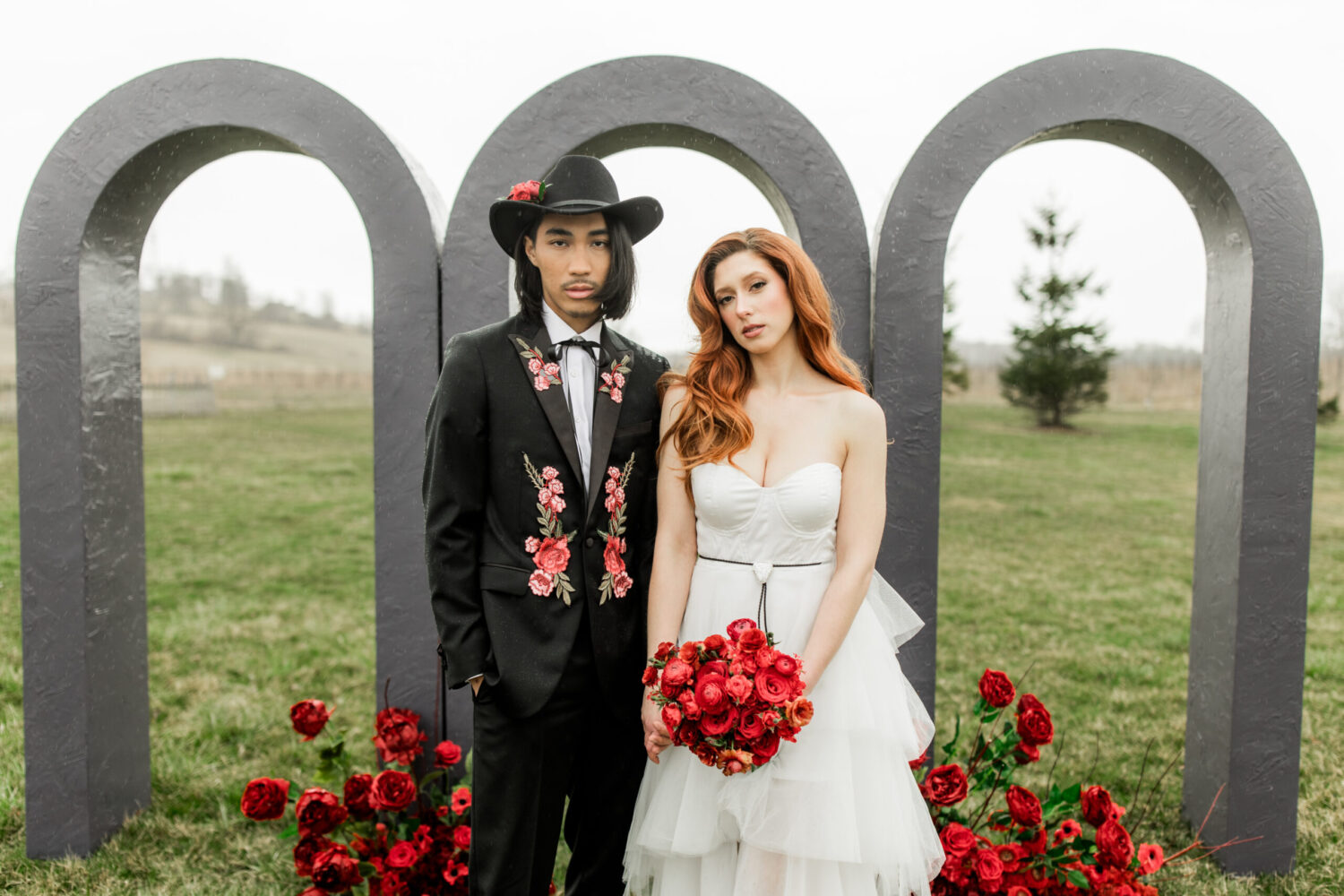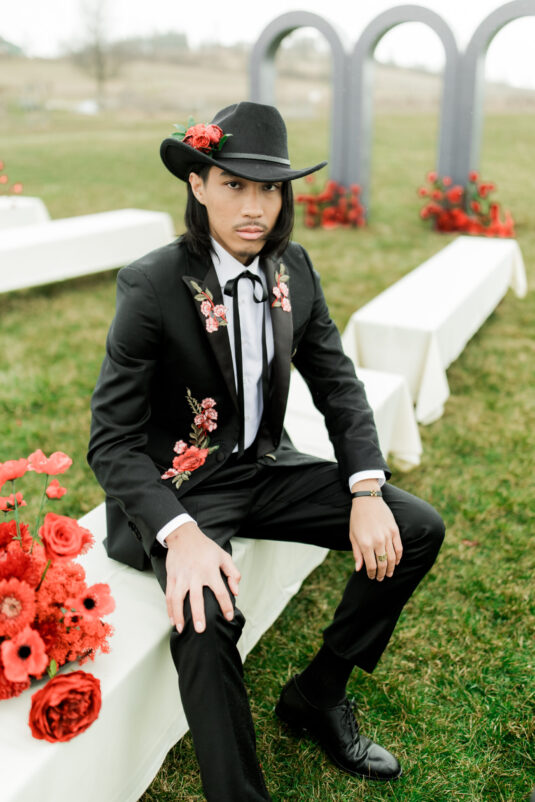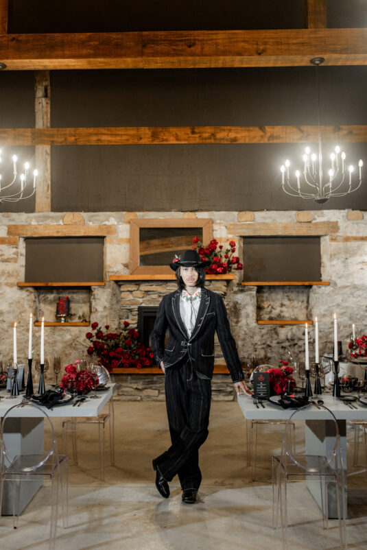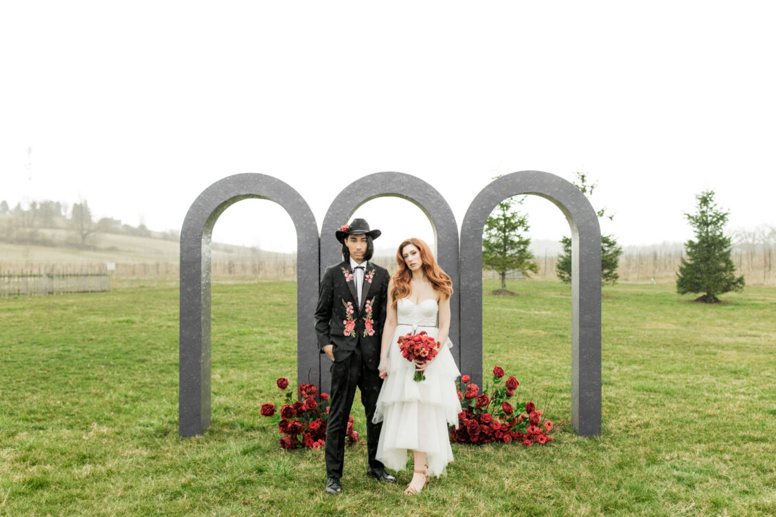 In a mesmerizing fusion of rustic country charm and sleek modern elegance, this styled shoot set on a picturesque farm showcased the best of both worlds. Drawing inspiration from cultural icons of 2024, including Pharrell’s collaborations with Louis Vuitton and Beyoncé’s genre-blurring country album, the design masterfully celebrated a love story where tradition intertwined with innovation. The bride exuded sophistication in a contemporary gown with clean, textured lines, while the groom’s modern take on classic western style brought a fresh, stylish edge. Together, they embodied the future of romance—bold, elegant, and unforgettable.