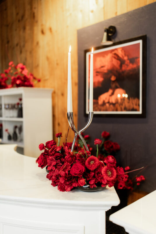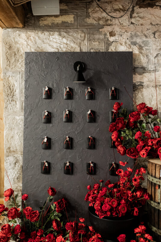 The decor, designed by Gregory Fast and brought to life by Special Event Rentals, transformed the rustic setting with a seamless blend of natural and chic elements. Wooden farm tables were dressed with minimalist yet impactful centerpieces, capturing effortless sophistication. Every detail was thoughtfully curated, from bespoke invitations to a seating chart with clean, elegant typography, telling a story of love and style.