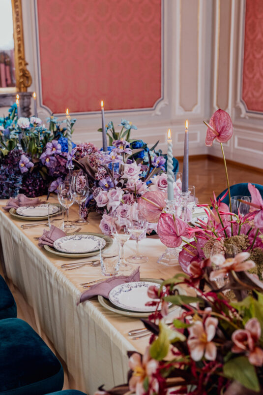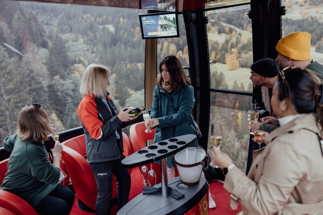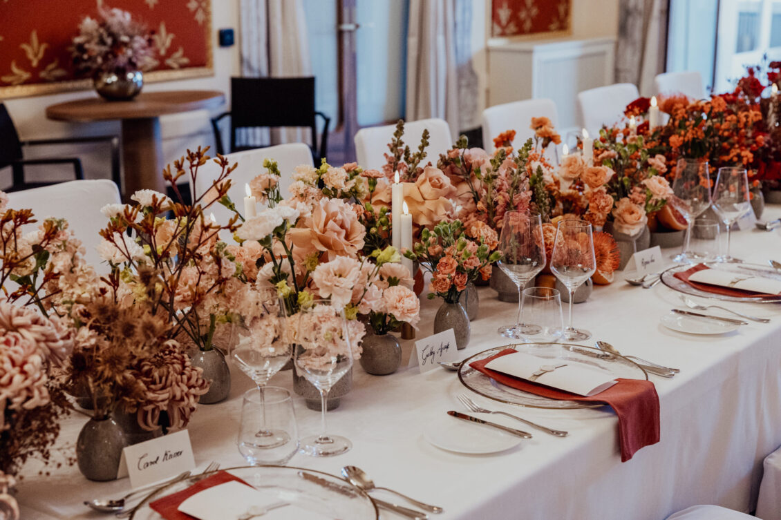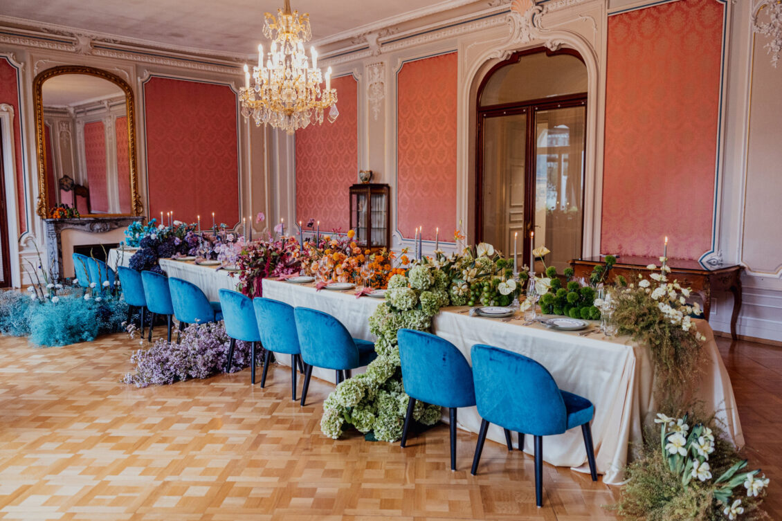 The FAM trip kicked off in style with an elegant welcome dinner in the Salon Rouge at the Victoria-Jungfrau Grand Hotel & Spa. The evening was beautifully enhanced by stunning floral designs created by Tabea Maria-Lisa, who transformed the space into a vibrant masterpiece of color and texture. The lavish tablescape featured cascading arrangements in striking hues of purple, pink, orange, and green, perfectly complementing the room’s opulent décor. Attendees savored gourmet cuisine in this grand setting, surrounded by the timeless charm of Interlaken, setting the tone for a luxurious journey through Switzerland.