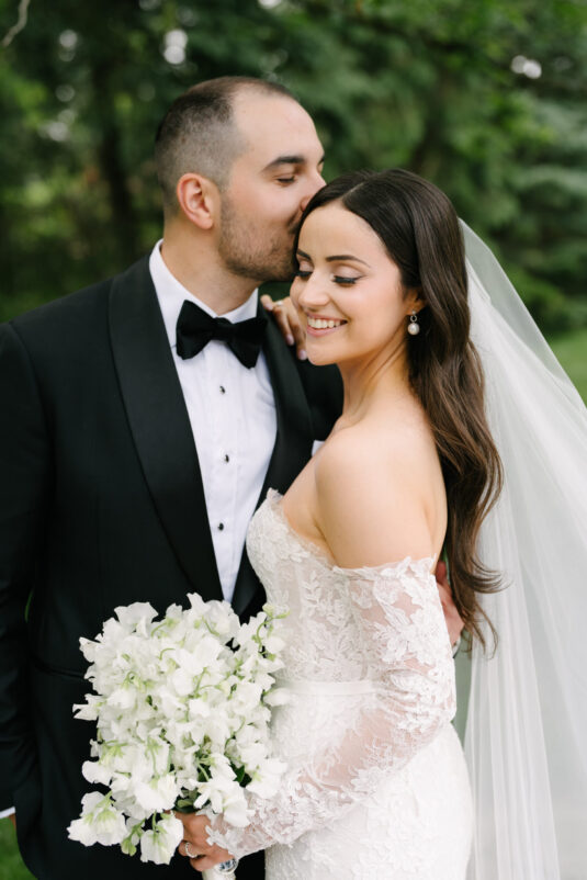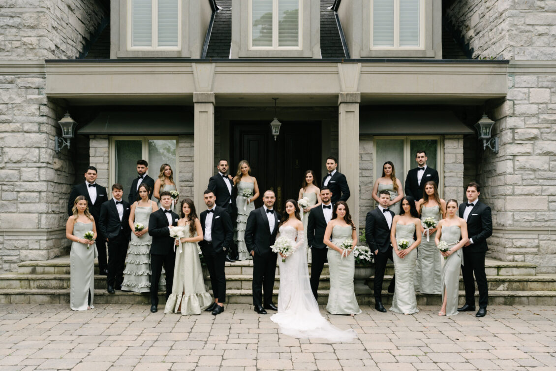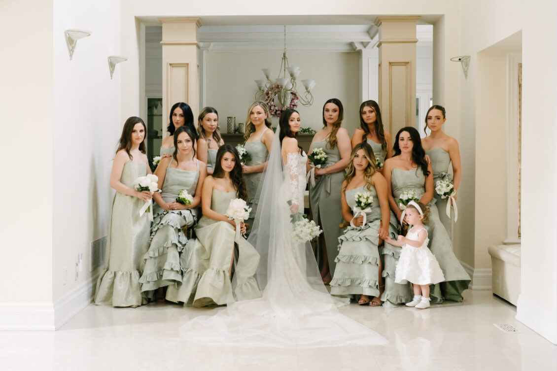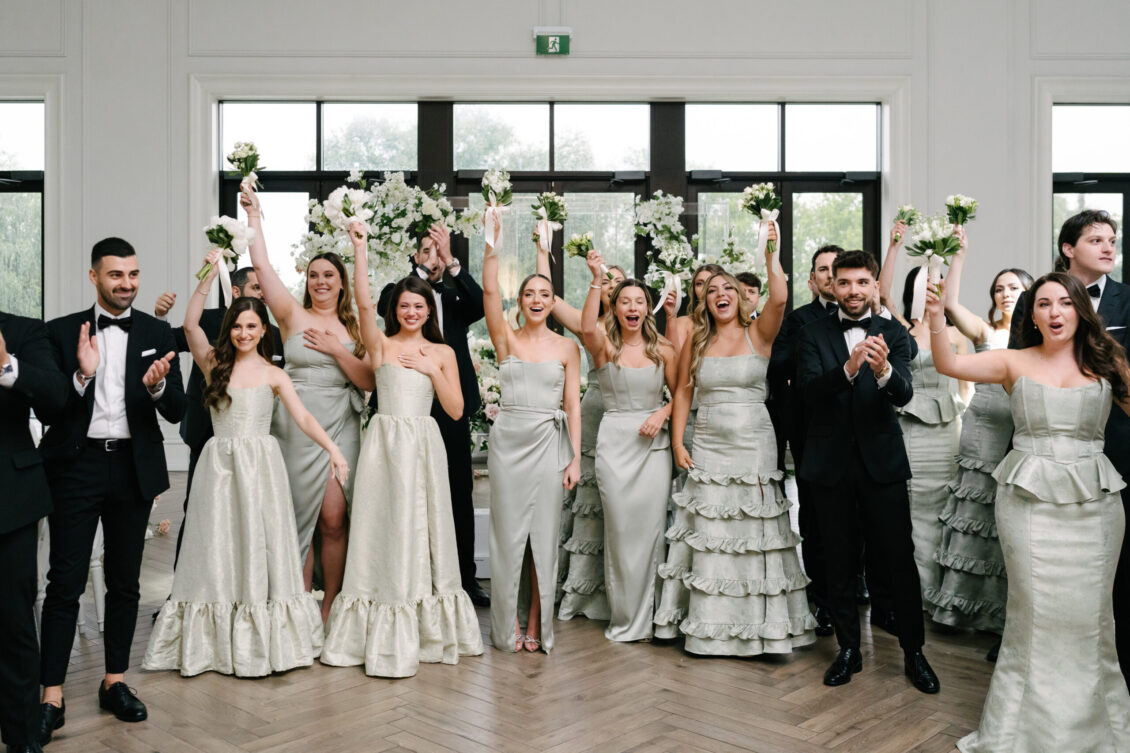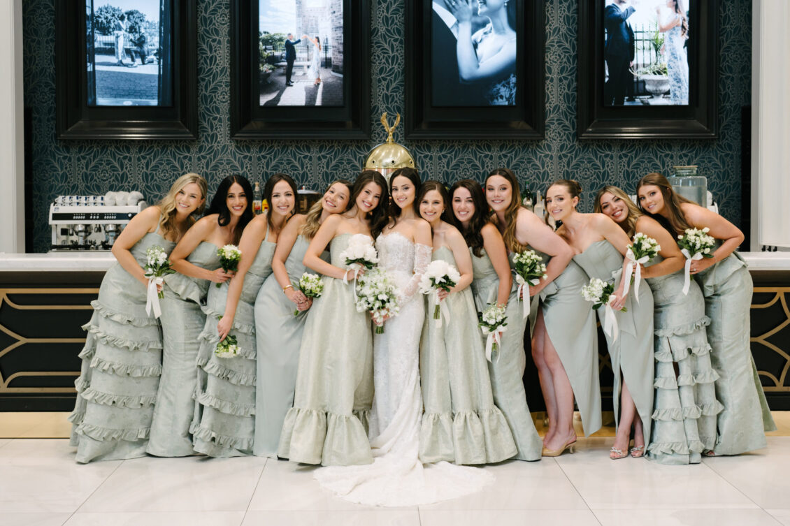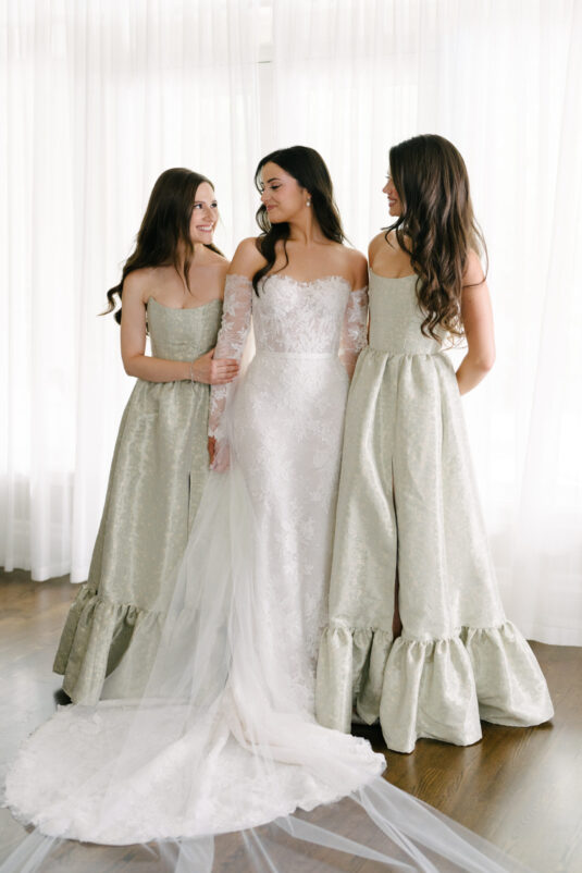 Jackie stunned in a custom Mira Zwillinger gown—the first-ever named “The Jackie”—a masterpiece of delicate lace that perfectly captured her vision of vintage elegance. Her bridal party wore sage green V. Chapman dresses with regal flair, while her maids of honor carried white peonies, a nod to the bride’s favorite flower.