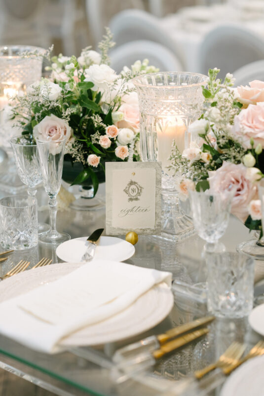 , set on a clear plexi structure that made the florals appear to float—a striking focal point. From the sentimental significance of the date to the thoughtfully curated design details, Jackie and Massimo’s wedding was a true celebration of love, style, and timeless elegance.