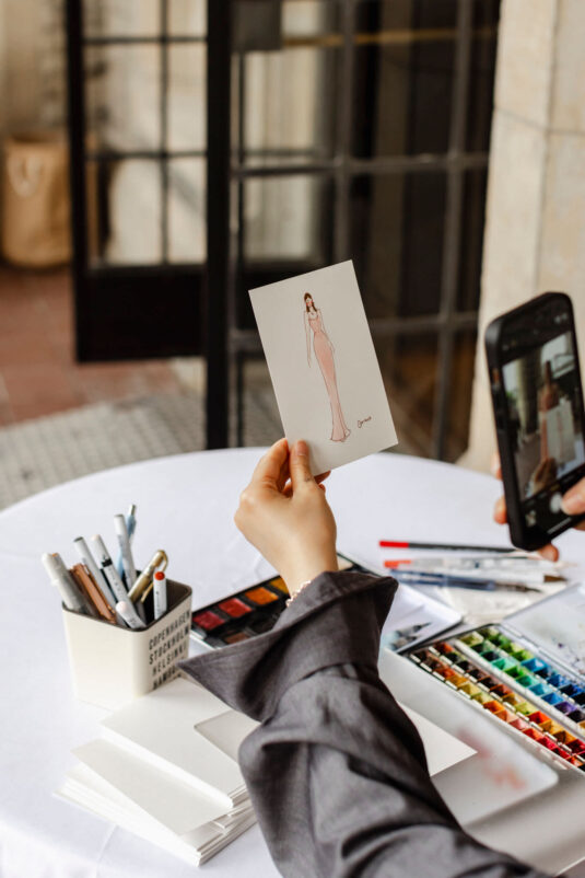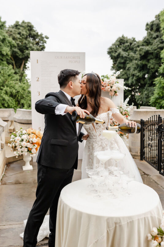The couple curated an unforgettable experience for their guests. From an enchanting outdoor cocktail hour to a champagne tower, live watercolor painting, and a photo booth, every detail was designed with thoughtful intention. With