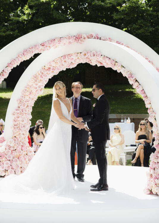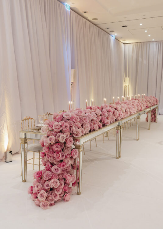 The Grove Hotel in Hertfordshire, UK, provided the perfect setting for a luxury wedding transformed into a pink rose wonderland. Under the creative direction of top UK wedding planner Kristina Kempton, every corner of the venue was infused with romance and elegance, thanks to an abundance of flexed pink roses. From the ceremony to the reception, this wedding redefined floral luxury.