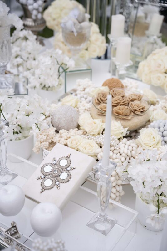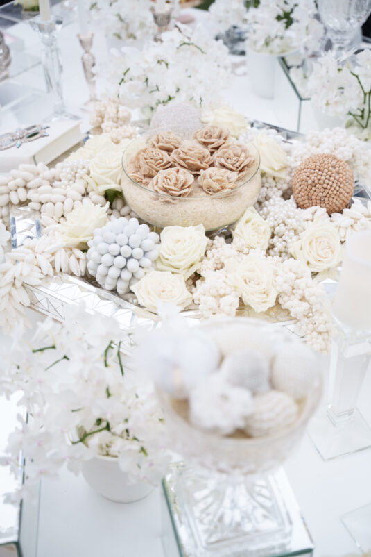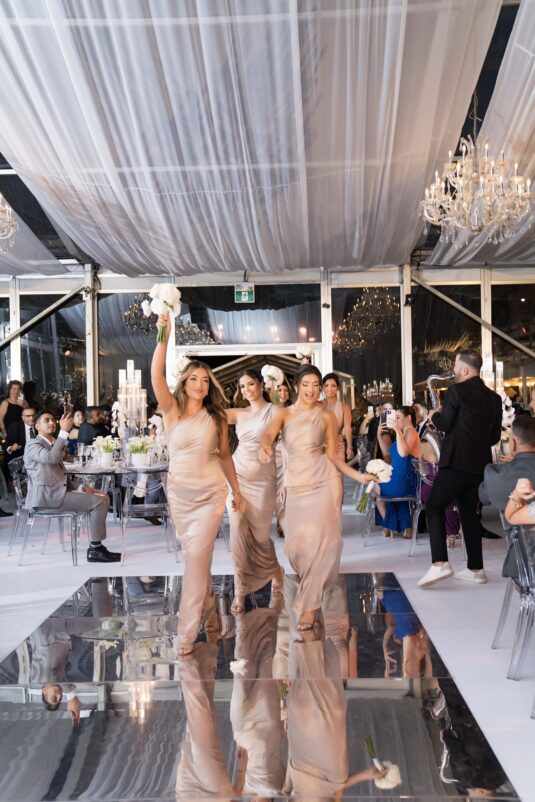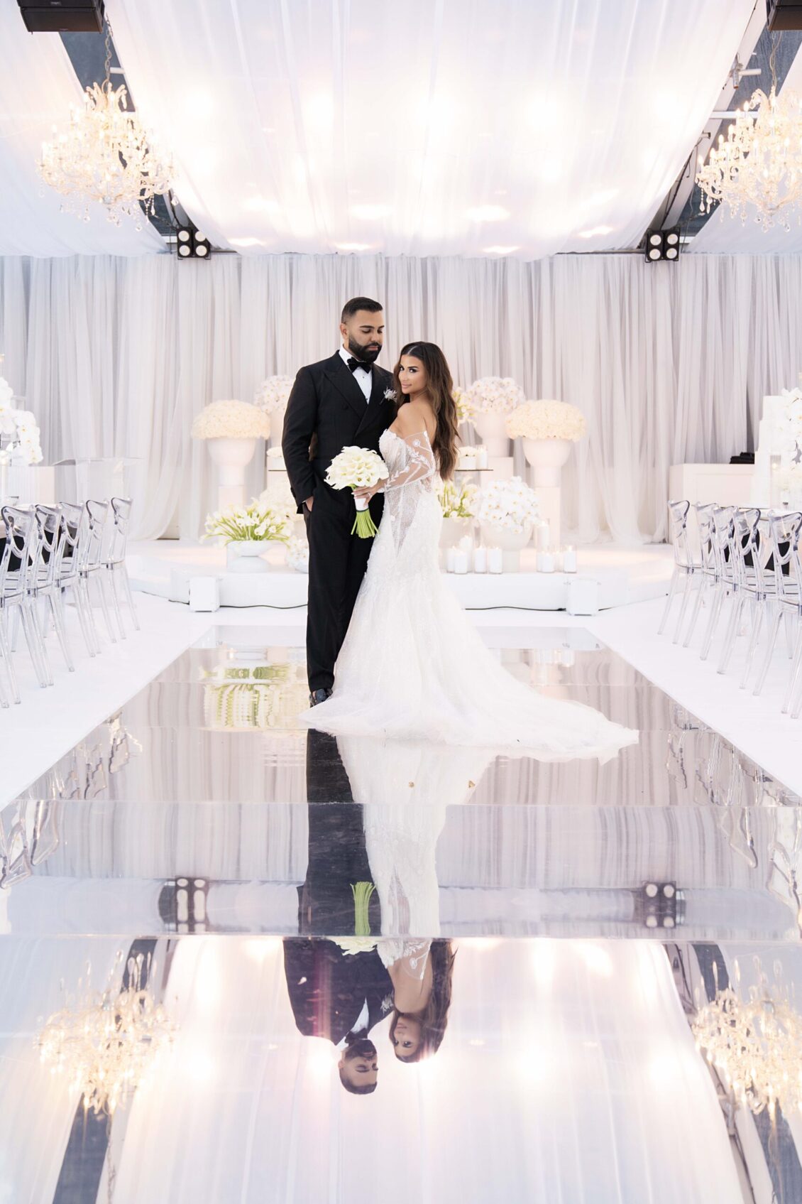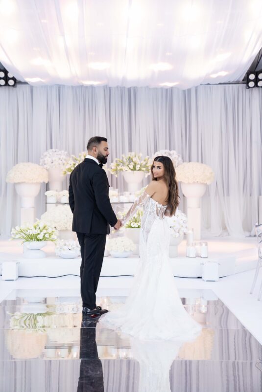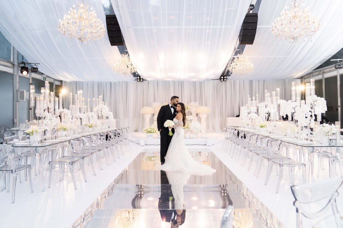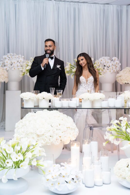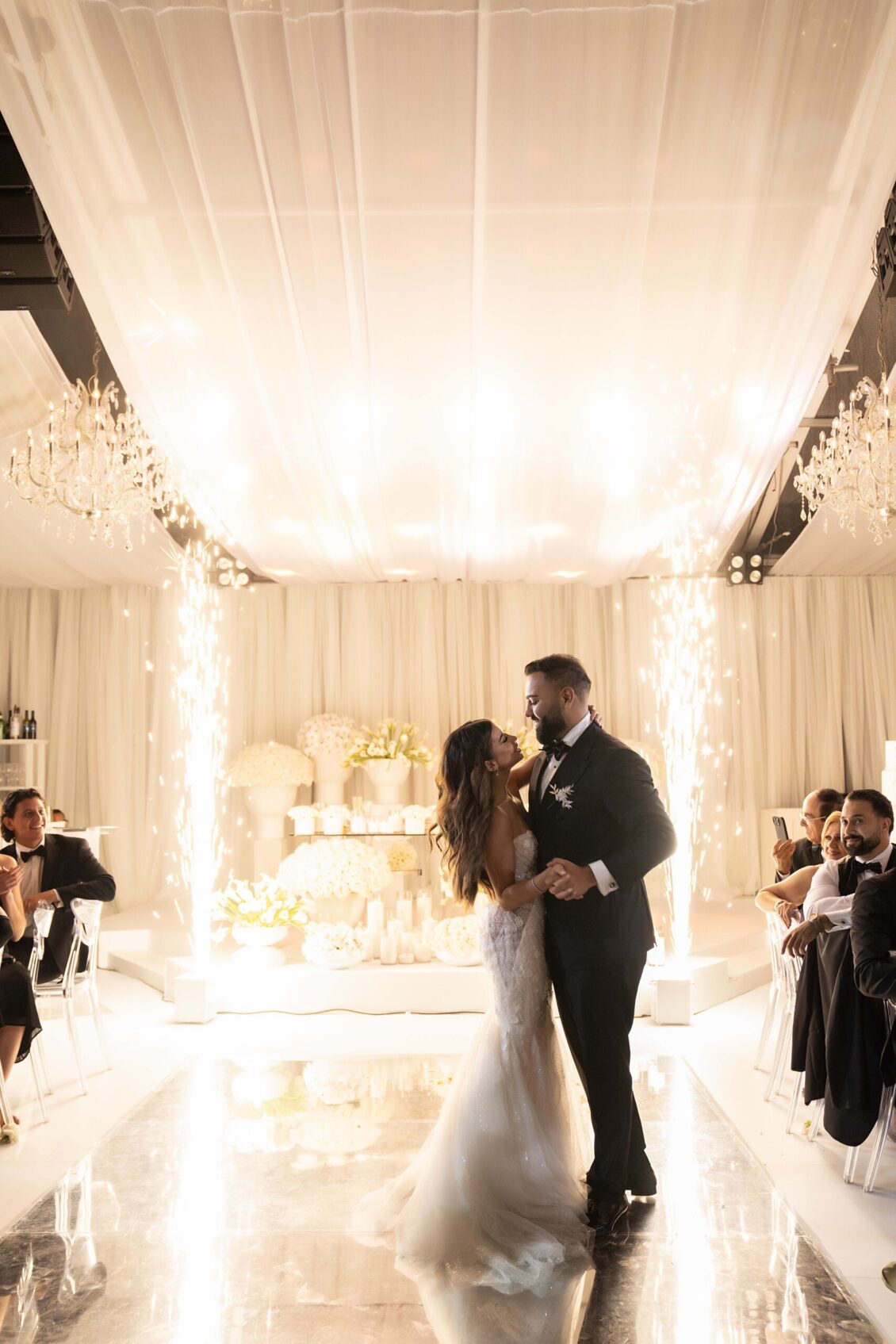 Their ceremony, made even more special with the presence of guest officiant (San Diego news anchor Shally Zomorodi), who exuded warmth and intimacy, setting the perfect tone for an unforgettable celebration. As the evening progressed, guests filled the mirrored dance floor, reveling in a night of pure joy and festivity. Every detail, from the lavish floral arrangements to the soft glow of candlelit tables, ensured that love and romance remained the focal point of the celebration.