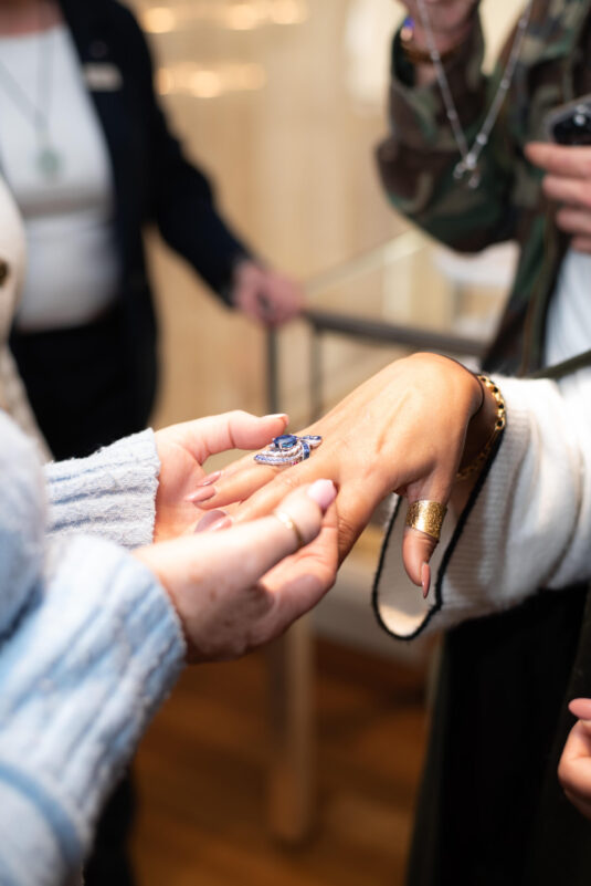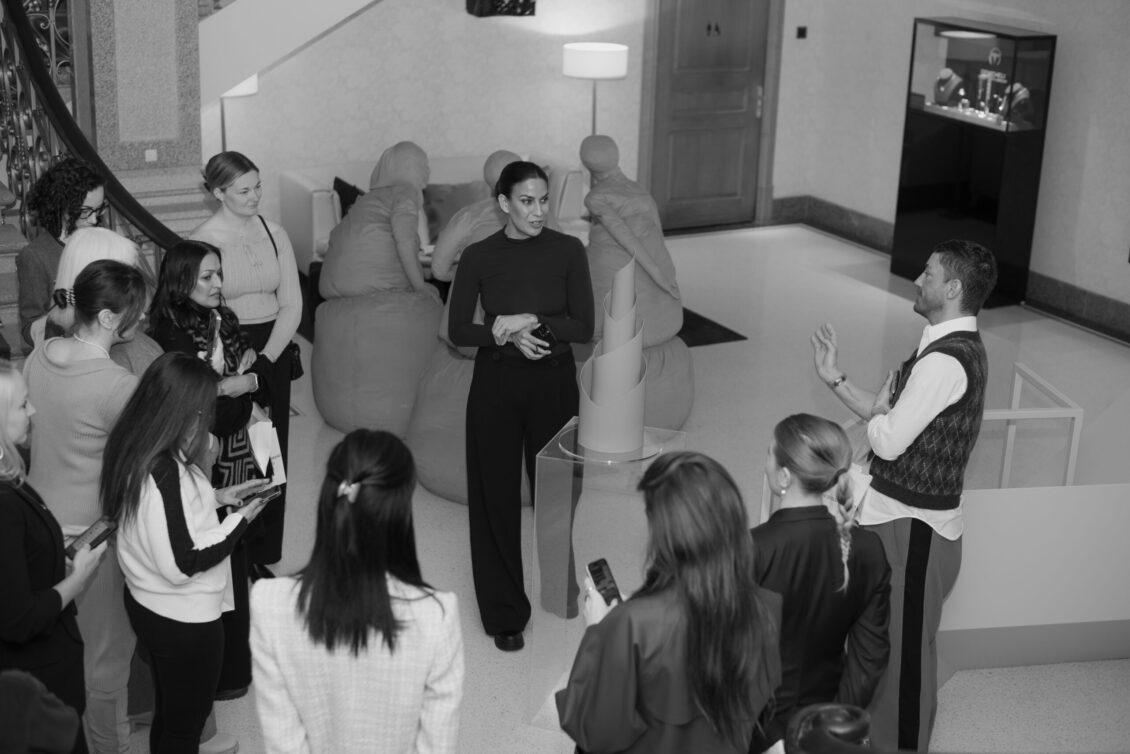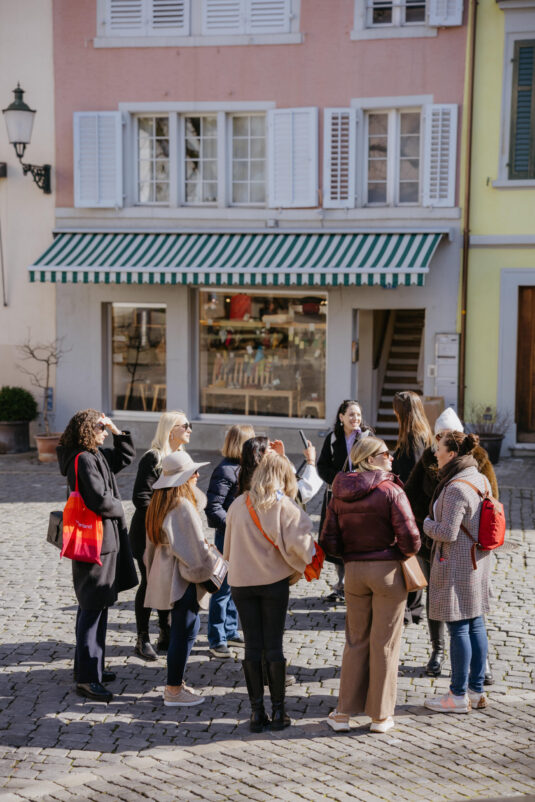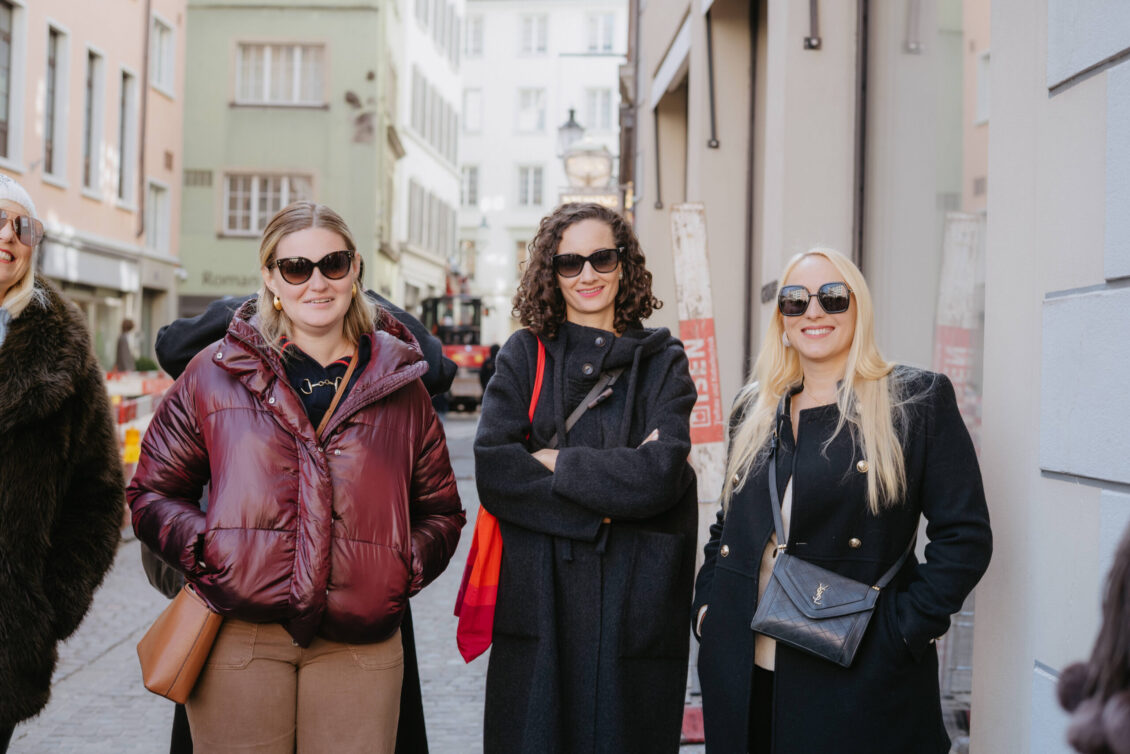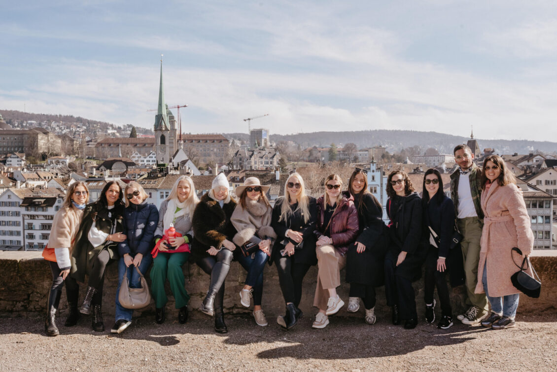 The next morning began with optional sunrise pilates followed by a cultural deep dive into Zurich’s old town. Guests toured the historic heart of the city and enjoyed lunch at the centuries-old Haus zum Rüden, followed by a luxe engagement ring workshop at Gübelin, one of Switzerland’s most prestigious jewelers.
