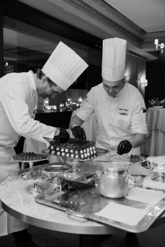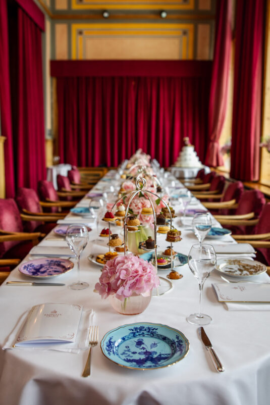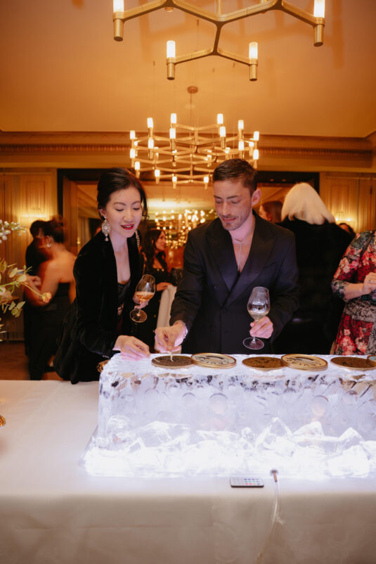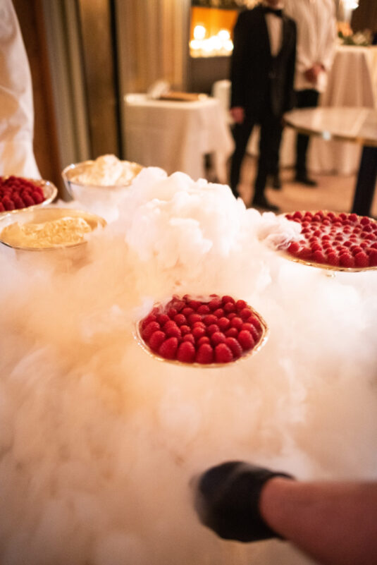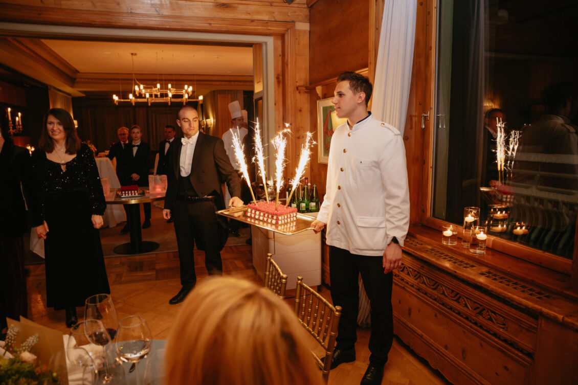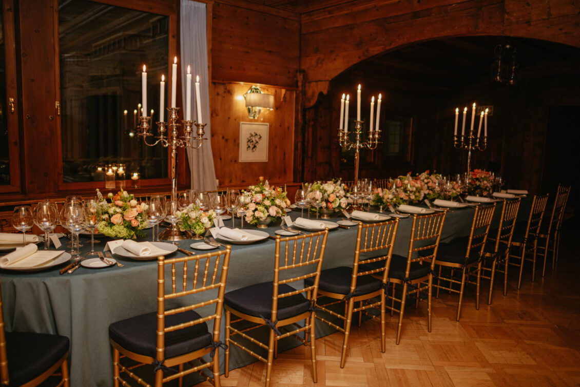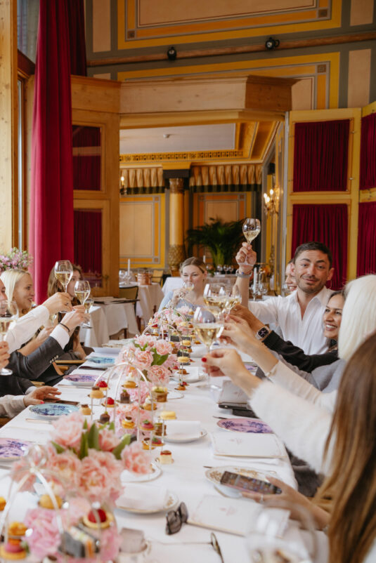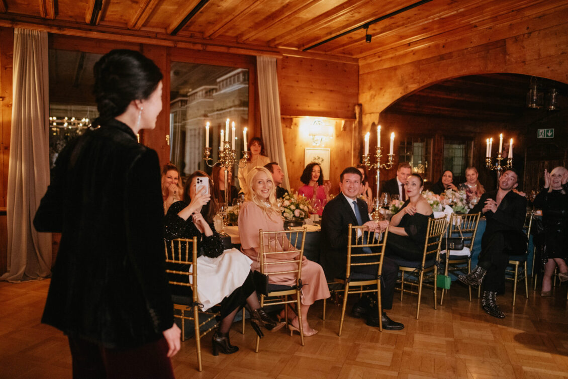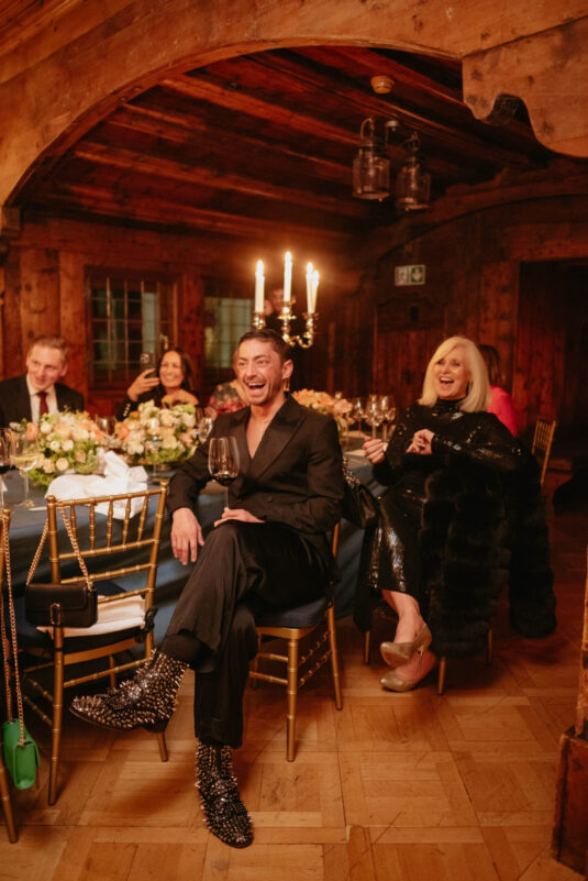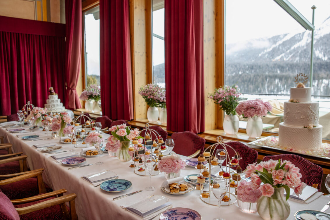Upon arrival at the legendary Badrutt’s Palace Hotel, guests were treated to an elegant afternoon tea and site tour. The evening unfolded with an aperitif in the hotel’s famed wine cellar and dinner at the romantic Chesa Veglia, showcasing the warm hospitality and timeless glamour of Switzerland weddings in the Alps.