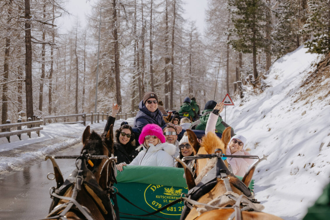 The final full day was a snow-covered dream. A horse-drawn carriage ride and chairlift led the group to Paradiso Mountain Club & Restaurant for a high-altitude lunch with sweeping alpine views and après-ski flair.