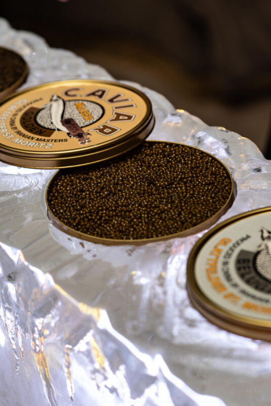 Afternoon options ranged from paragliding over frozen lakes to exploring the Segantini Museum, luxury shopping, or indulging in spa time. The night wrapped with a caviar tasting, dinner in a private pop-up restaurant at Badrutt’s Palace, and a glamorous sendoff at King’s Social House.