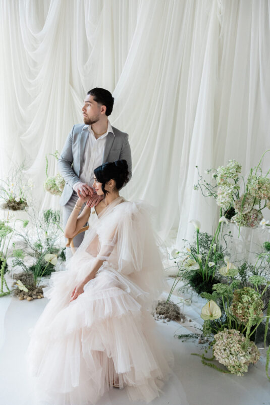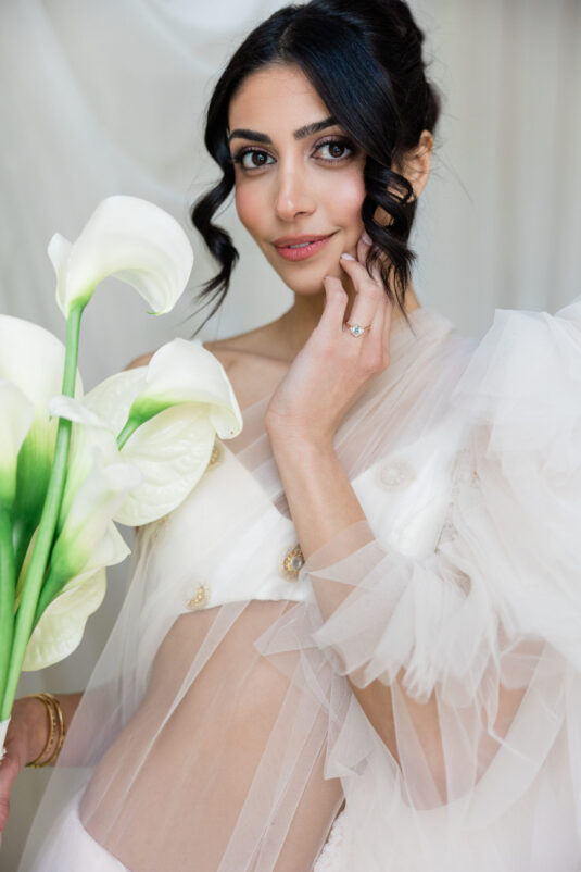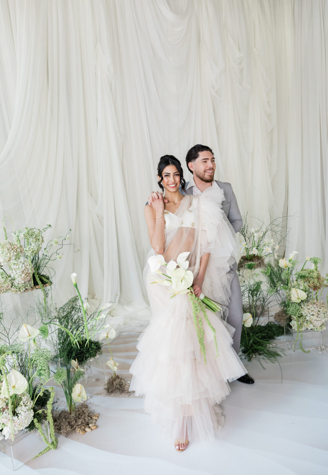 But perhaps most striking was how the shoot celebrated cultural fusion through fashion. A real-life couple modeled breathtaking Indian bridalwear by Mani Jassal paired with fine jewelry from Bluboho, marrying heritage with modern luxury. Each detail—be it the earthy tones, sculptural florals, or multicultural styling—contributed to a poetic interpretation of multicultural wedding inspiration, proving that the most meaningful celebrations are rooted in identity and elevated by design. This editorial not only honored love—it reimagined how we celebrate it.