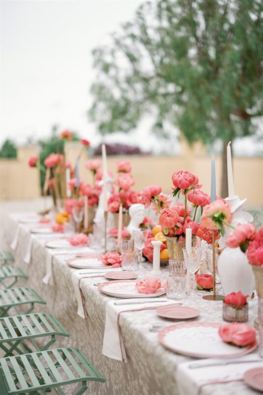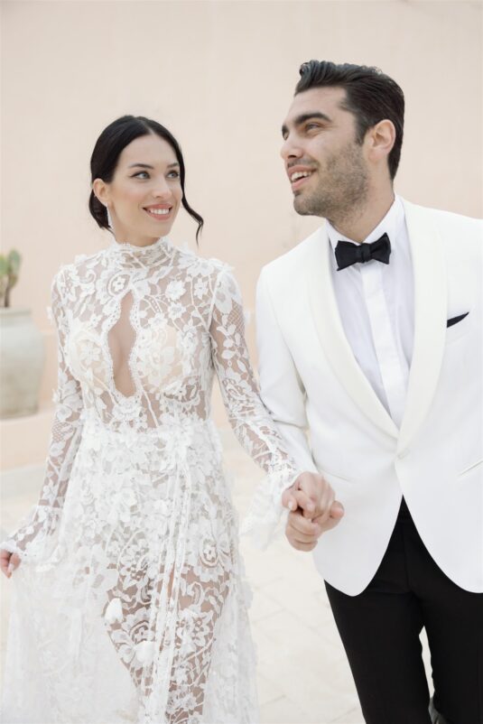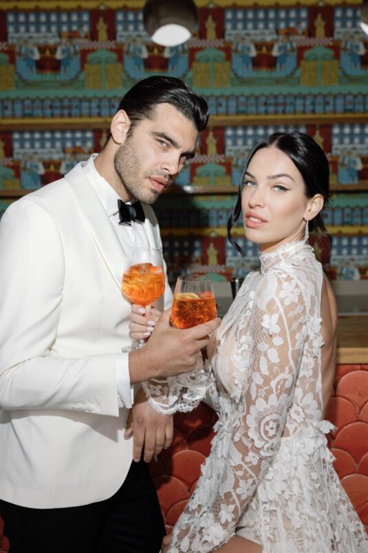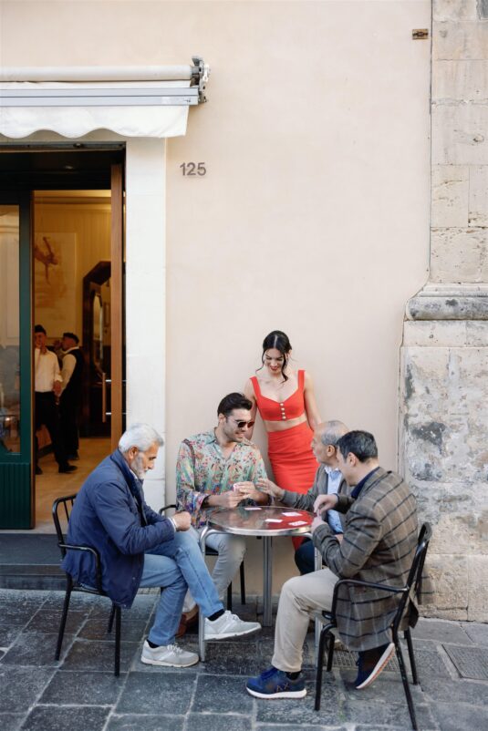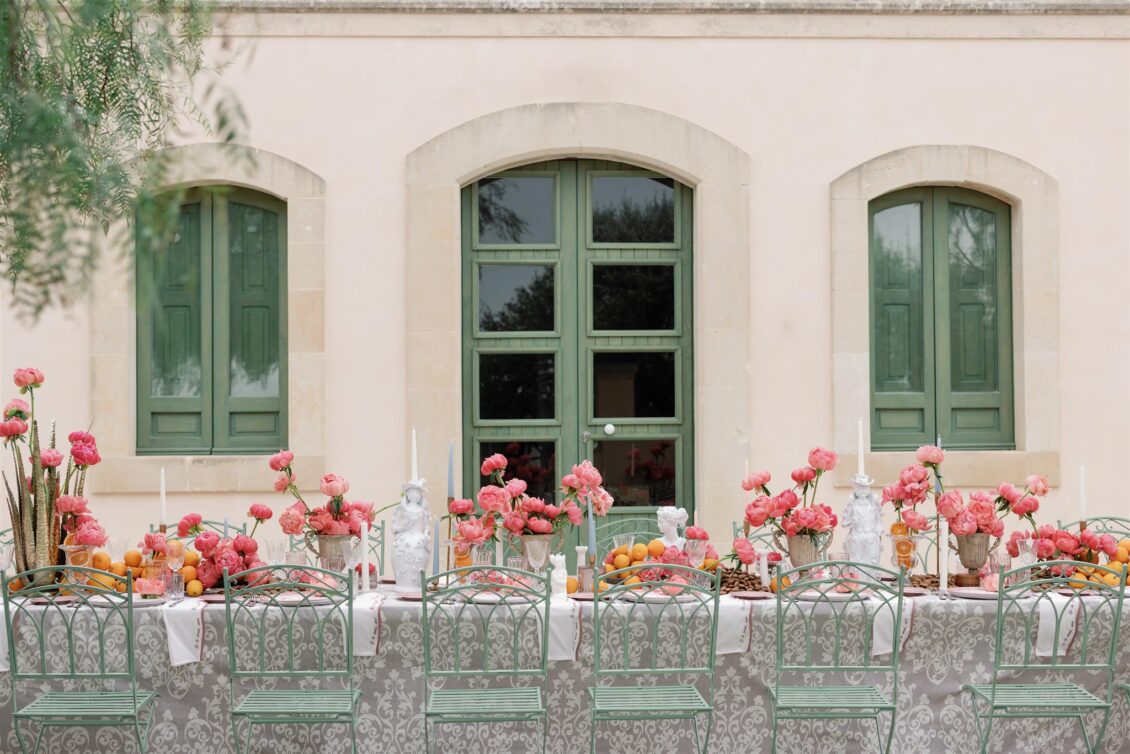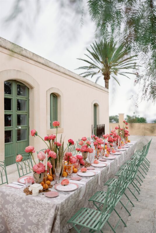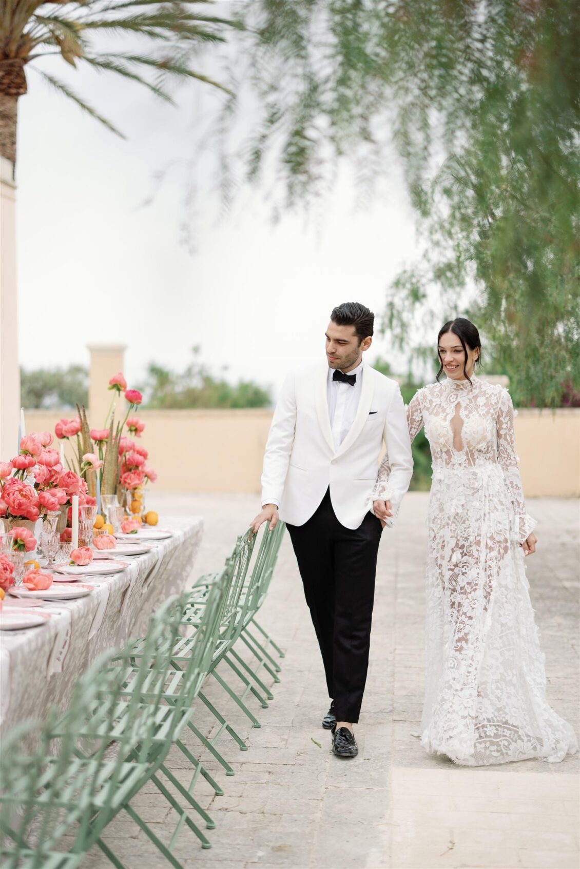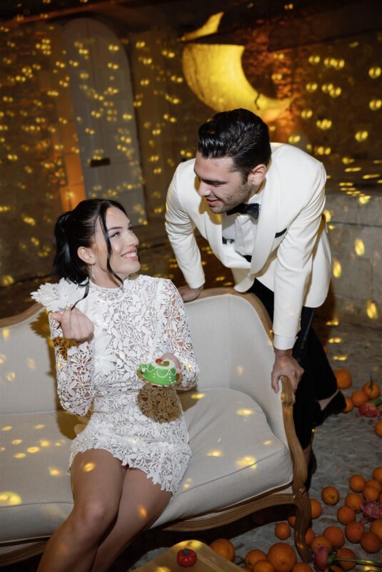The couple—effortlessly chic—wanted to design a wedding weekend that felt like a love letter to the island and to each other. The result? A joyful, alfresco experience where every detail paid tribute to Sicily’s natural beauty and cultural richness. Bold floral arrangements spilled across hand-embroidered linens, and as the sun set over the Sicilian hills, dinner transformed into a candlelit sensory journey, complete with laughter, music, and endless dolce vita vibes.