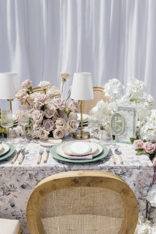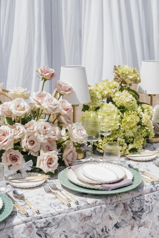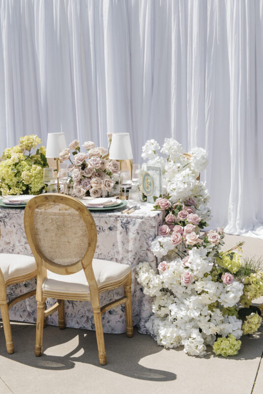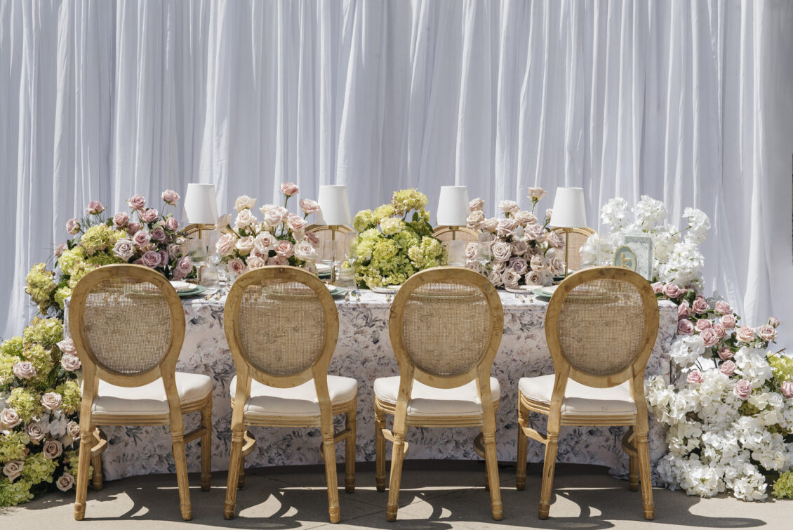 With elegant touches like flowing drapery, refined garden textures, and timeless rentals from