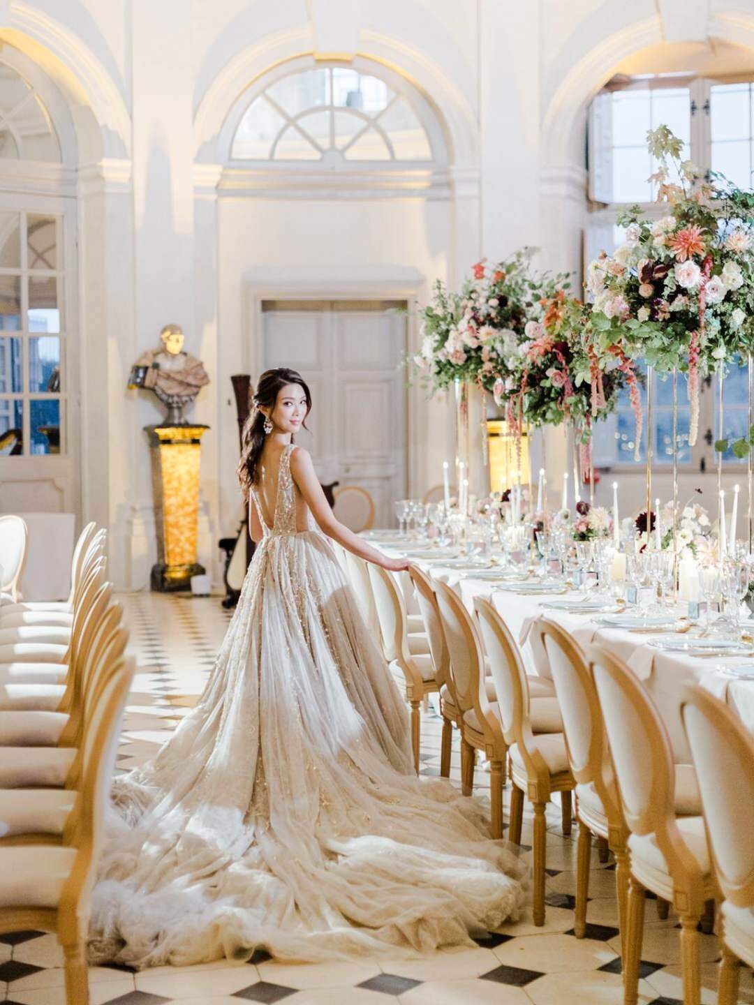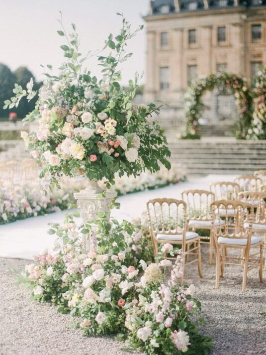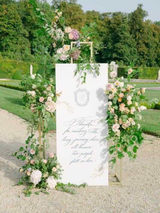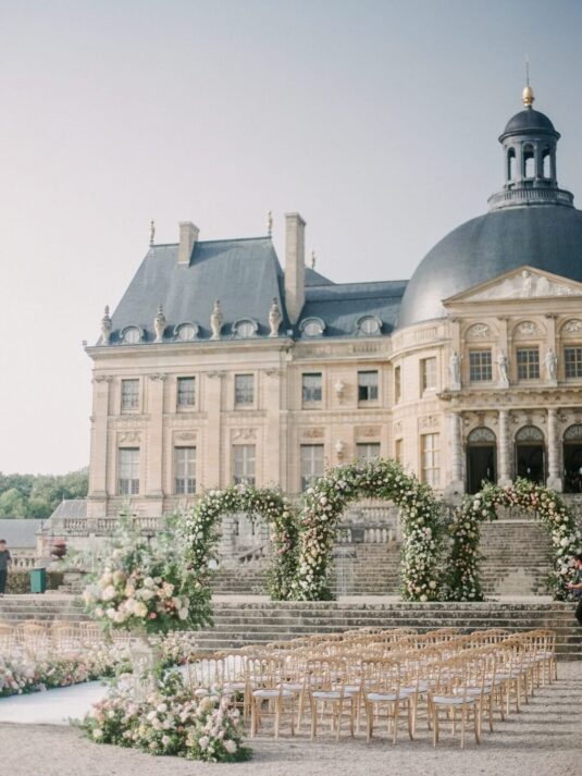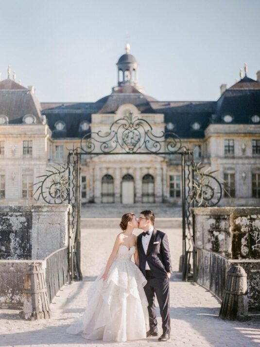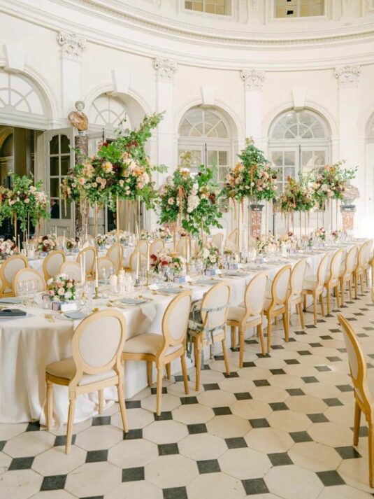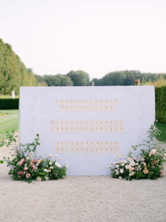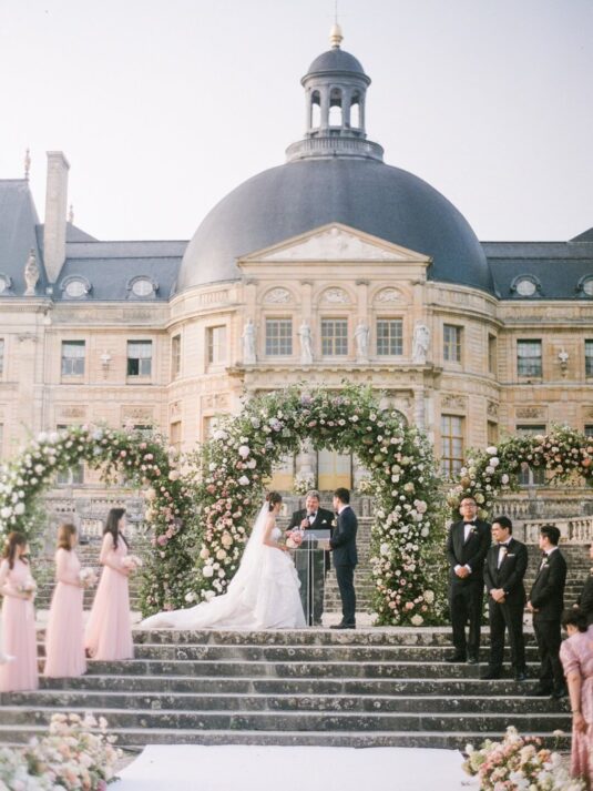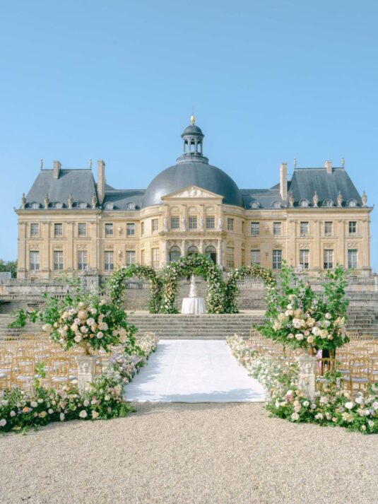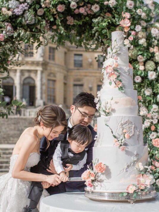 Katie and Jim’s long-awaited destination wedding at Château de Vaux-le-Vicomte was nothing short of a fairytale, blending luxury, tradition, and unforgettable design. Originally from Shanghai and Singapore, the couple had postponed their plans for three years due to strict COVID restrictions, making their celebration all the more meaningful. Guests traveled from around the world, primarily from Asia, to witness this Château de Vaux-le-Vicomte wedding, where every detail reflected both elegance and personal significance. A particularly touching moment came when their son, Ethan, walked down the aisle, adding an intimate family element to a day of grandeur.