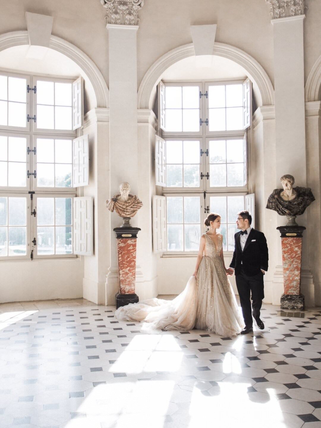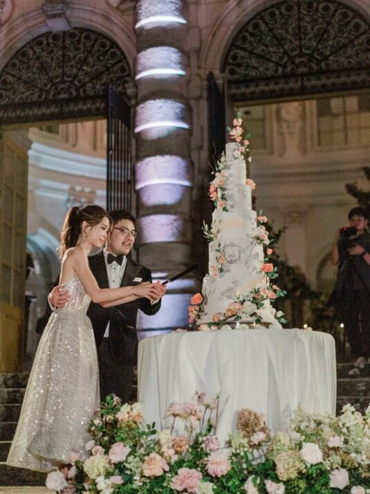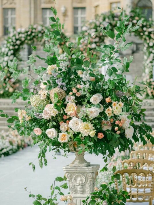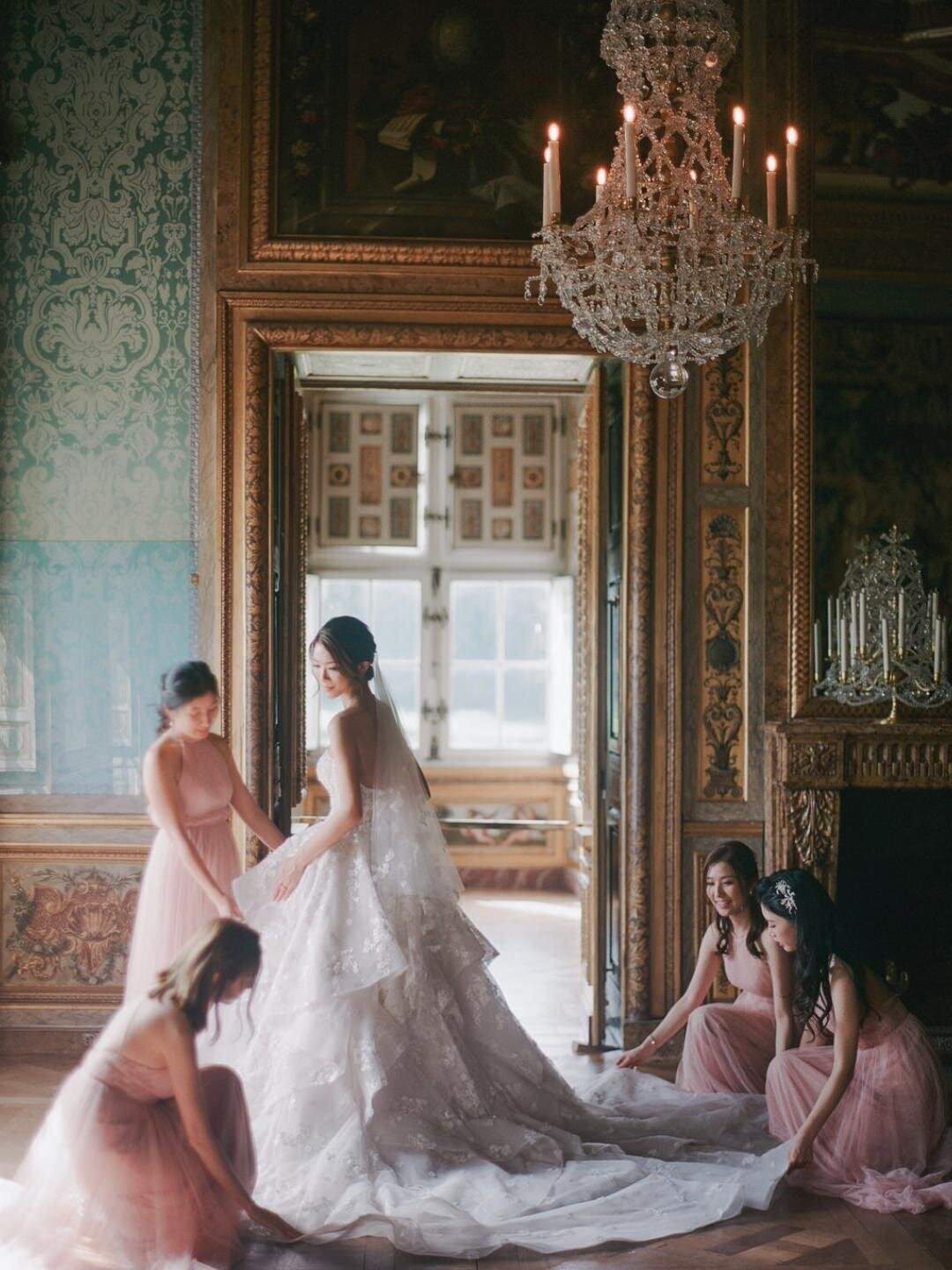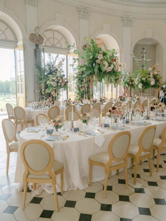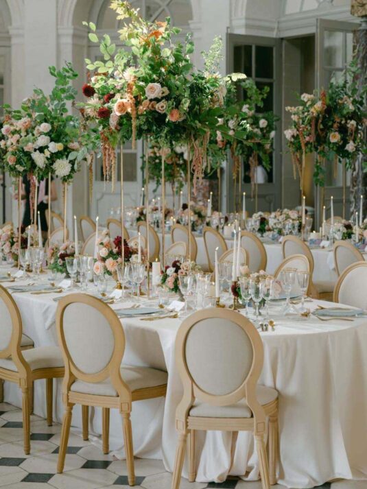Katie and Jim’s long-awaited destination wedding at Château de Vaux-le-Vicomte was nothing short of a fairytale, blending luxury, tradition, and unforgettable design. Originally from Shanghai and Singapore, the couple had postponed their plans for three years due to strict COVID restrictions, making their celebration all the more meaningful. Guests traveled from around the world, primarily from Asia, to witness this Château de Vaux-le-Vicomte wedding, where every detail reflected both elegance and personal significance. A particularly touching moment came when their son, Ethan, walked down the aisle, adding an intimate family element to a day of grandeur.