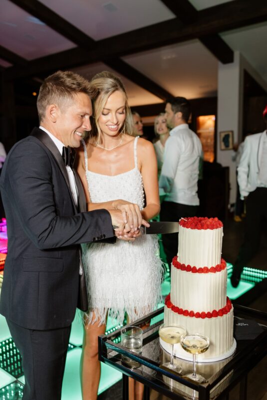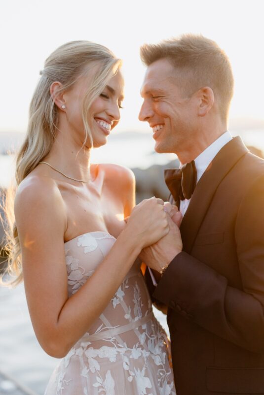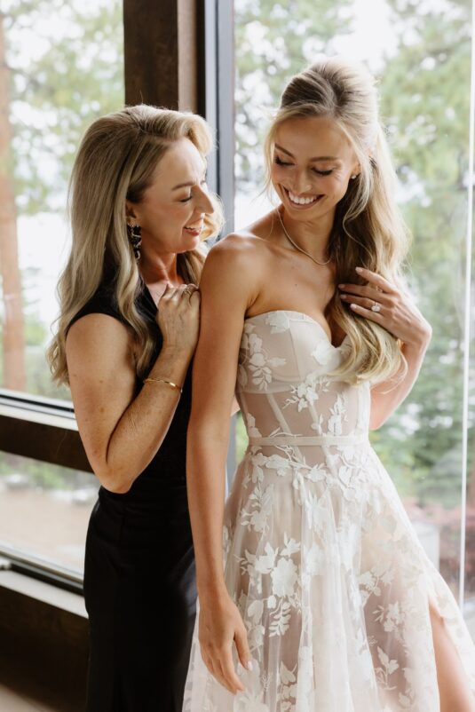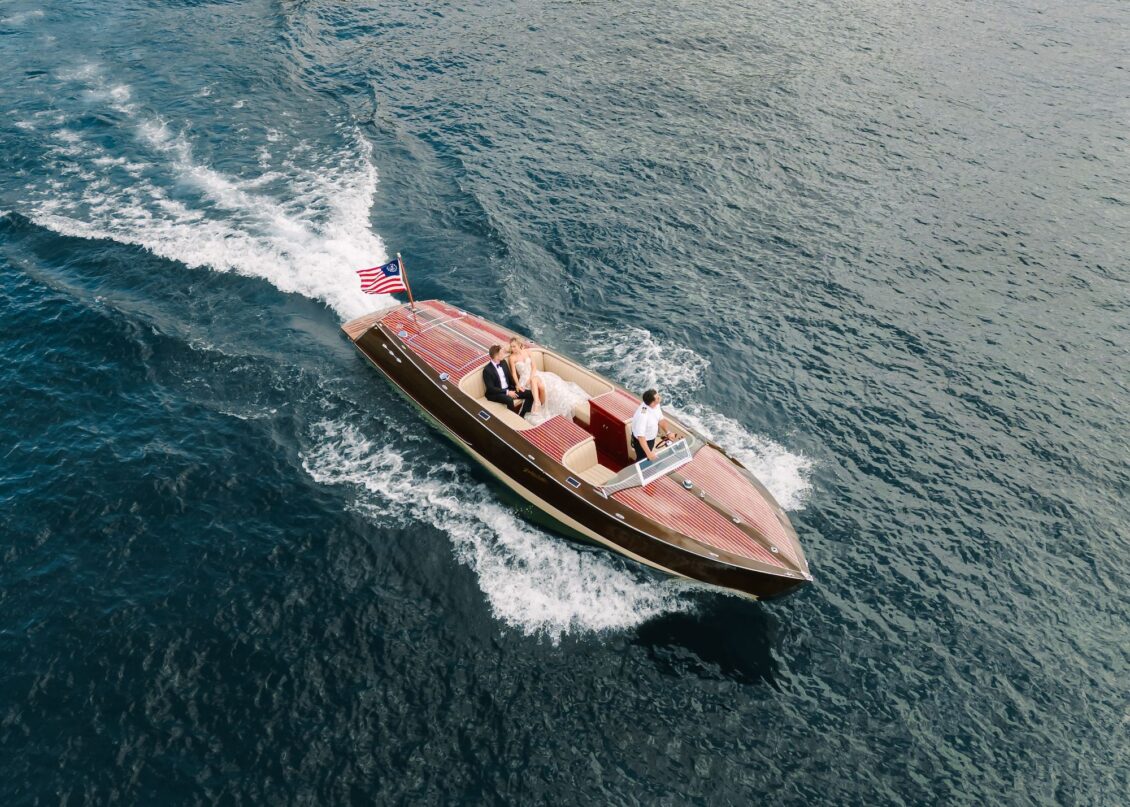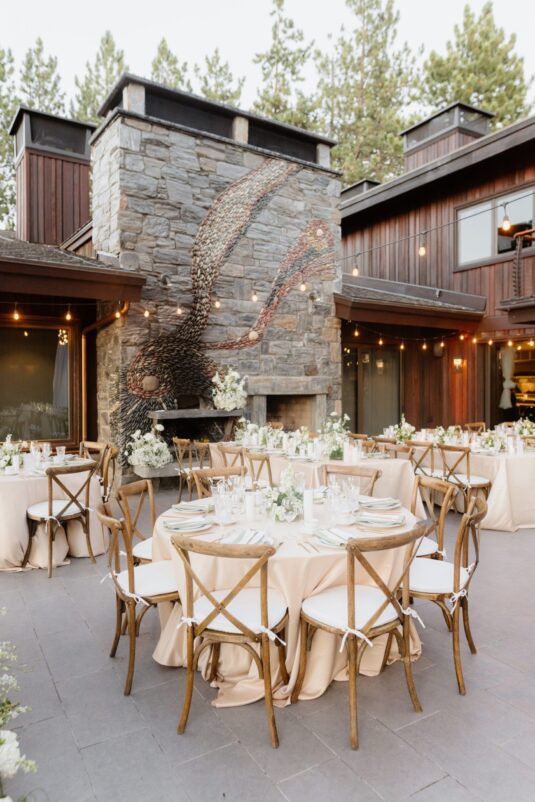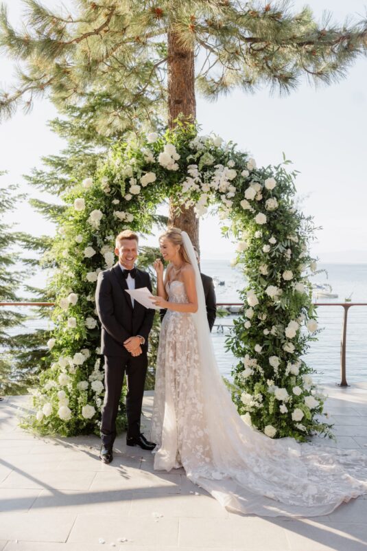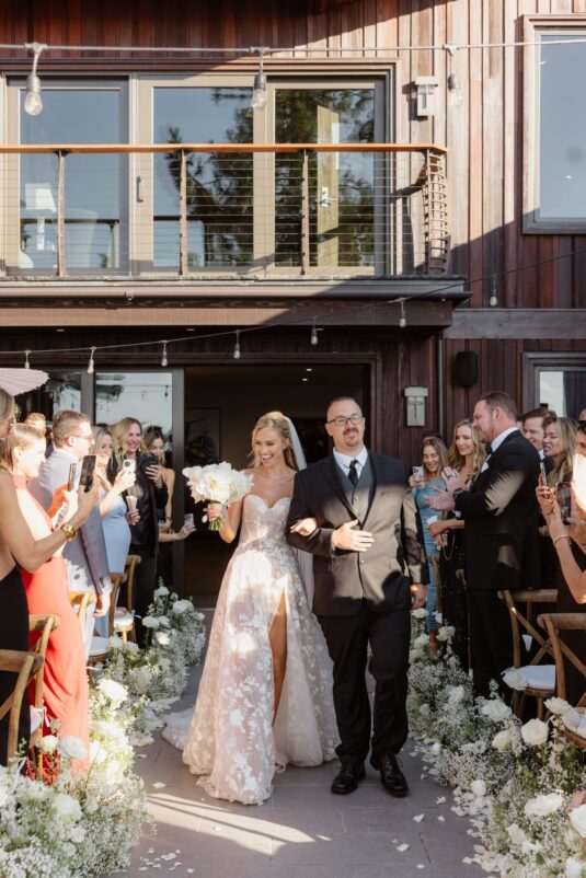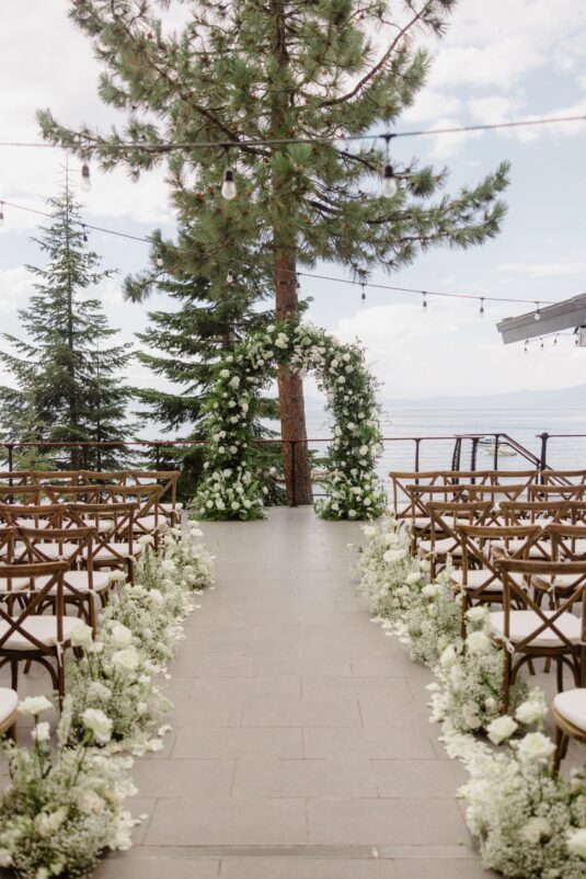 The festivities didn’t end there. Guests enjoyed a post-wedding beach BBQ with their favorite OC butcher, Aperol spritzes, and leisurely boat cruises across the lake—a perfect balance of luxury and laid-back charm. From the groom’s hilarious stint as MC to the poignant moment a hummingbird appeared during the bride’s walk down the aisle in honor of her late grandfather, every detail of this luxury destination wedding in Lake Tahoe was layered with meaning. It was not just a wedding—it was a once-in-a-lifetime celebration of love, style, and soul.