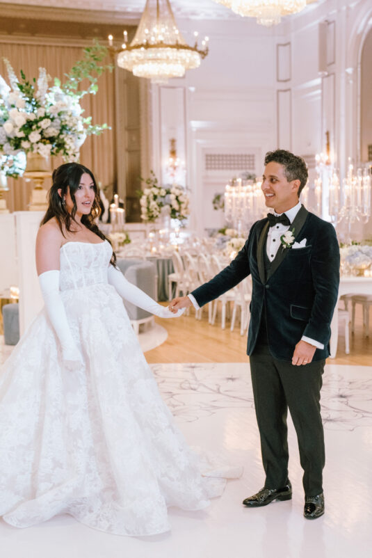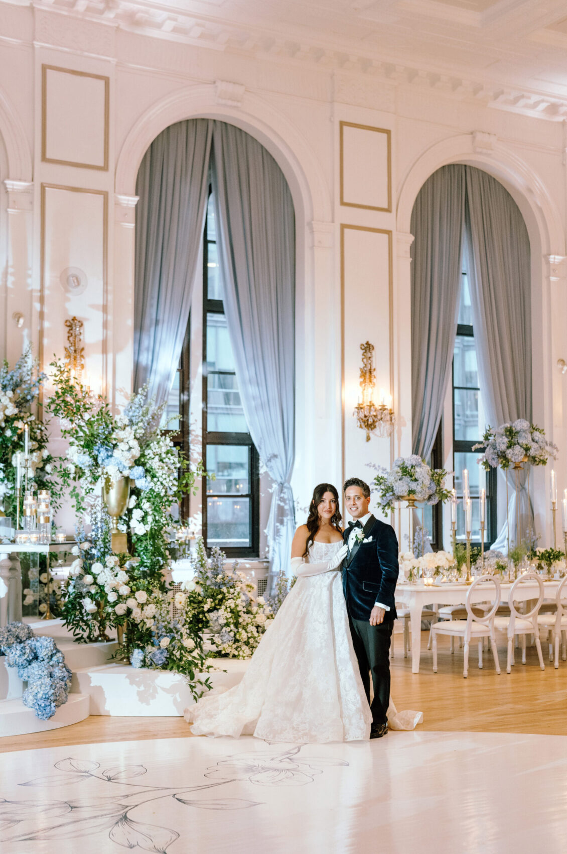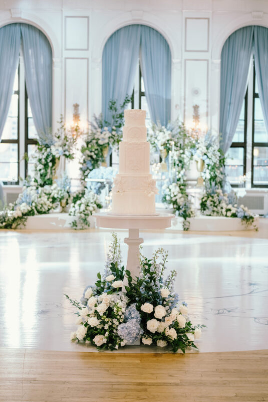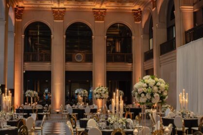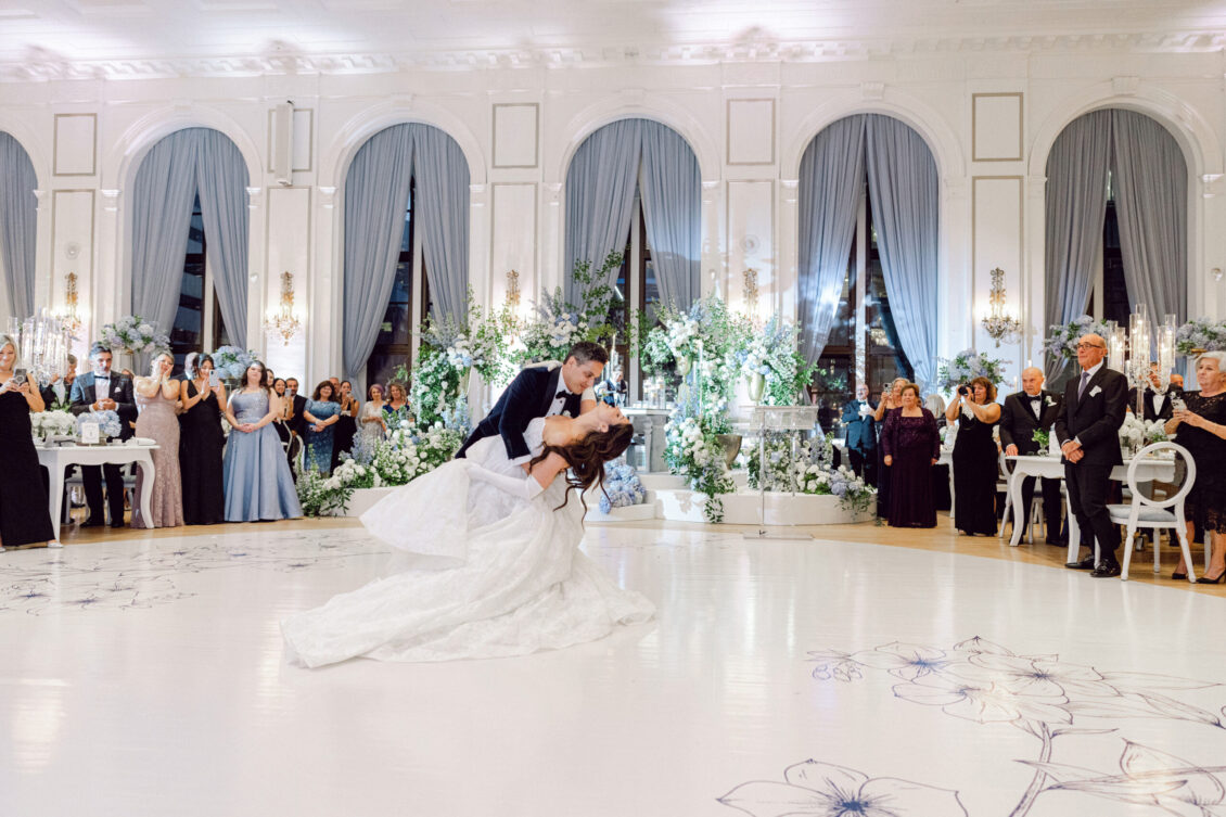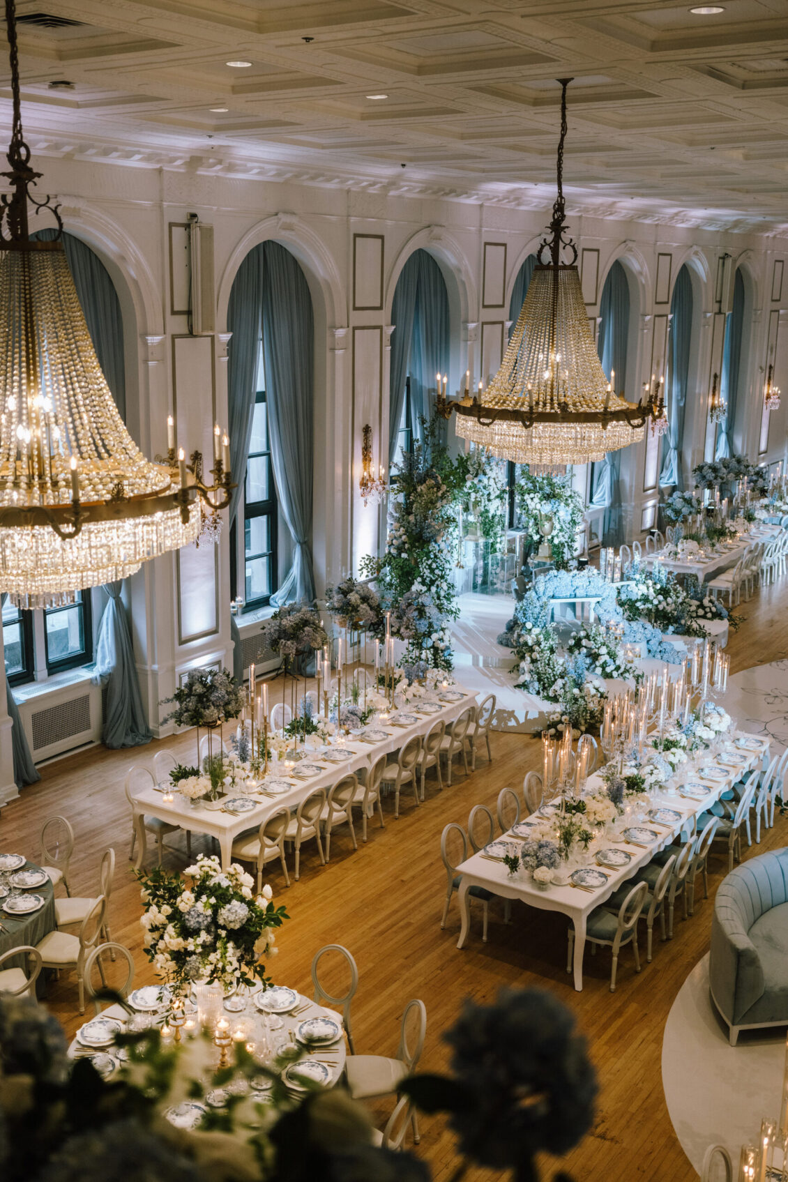 Desirée and Steven’s wedding at Toronto’s Fairmont Royal York combined timeless elegance with fresh Rococo style. Soft powder blue and gold accents elevated the historic ballroom, creating a chic, dreamy setting for over 400 guests. From the lush florals to the custom drapery, every detail perfectly captured their vision of classic meets contemporary.