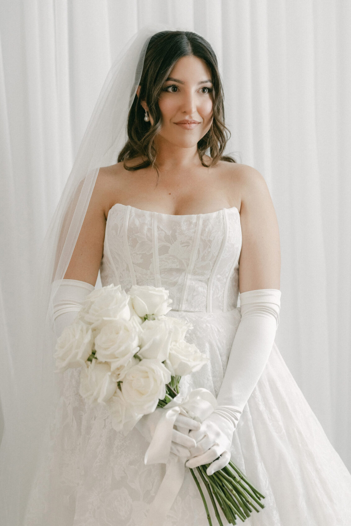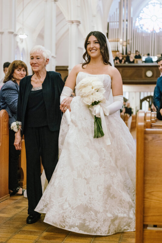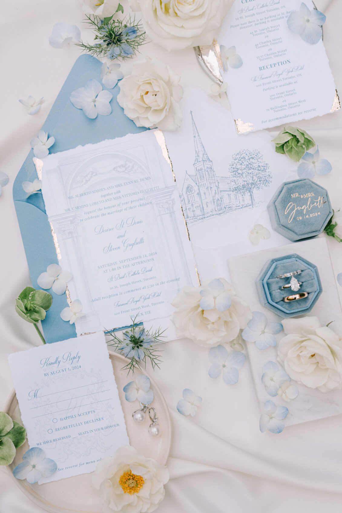 In early 2023, Desirée was ready to trade Toronto for a cruise ship sales role, yet something told her to stay put. Soon after, a mutual friend introduced her to Steven, who comes from a large Italian family. Although Desirée was (uncharacteristically!) late to their first date, the pair bonded instantly over dirty martinis, travel, and a shared love of family. A whirlwind romance—complete with a trip to Italy—led to a heartfelt Valentine’s Day proposal in 2024. The couple were married on September 14, 2024 with a ceremony at St. Basil’s Catholic Parish, a setting that also inspired the custom invitations—its exterior was hand-sketched and lined the envelopes of the invitation suite. One of the most meaningful moments came as Desirée’s 90-year-old grandmother walked her down the aisle, adding a deeply personal touch to the day. Their celebration continued at the Fairmont Royal York with a stunning Rococo-inspired reception, designed and planned by Rita Al-Shaikh of Simply Sienna.