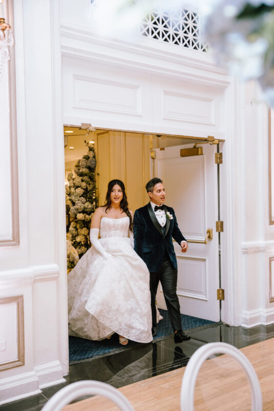 Steven promised Desirée a wedding beyond her dreams, and the celebration at Toronto’s iconic Fairmont Royal York delivered exactly that.The black-tie evening began with a cocktail reception, where guests were welcomed by the sounds of a string quartet. They then transitioned into the Concert Hall, where Desirée’s dream vision came to life—a blend of French country charm and Regency-era formality, elevated with a fresh Rococo twist.