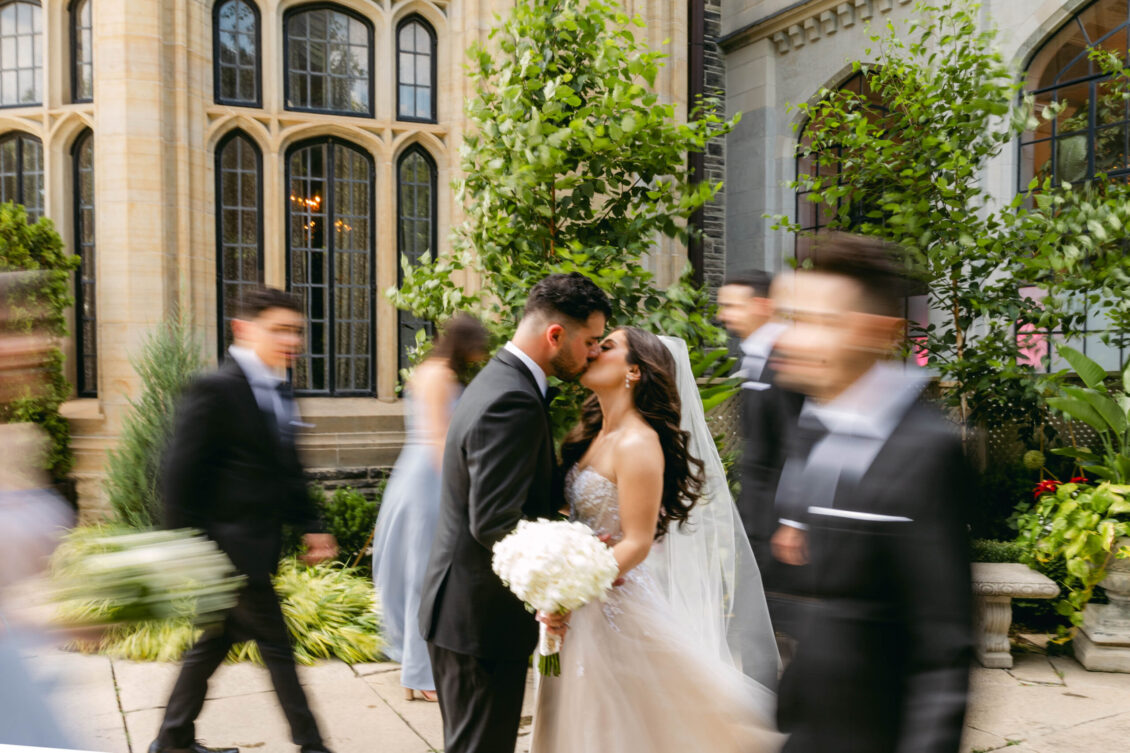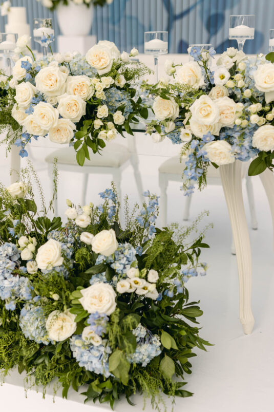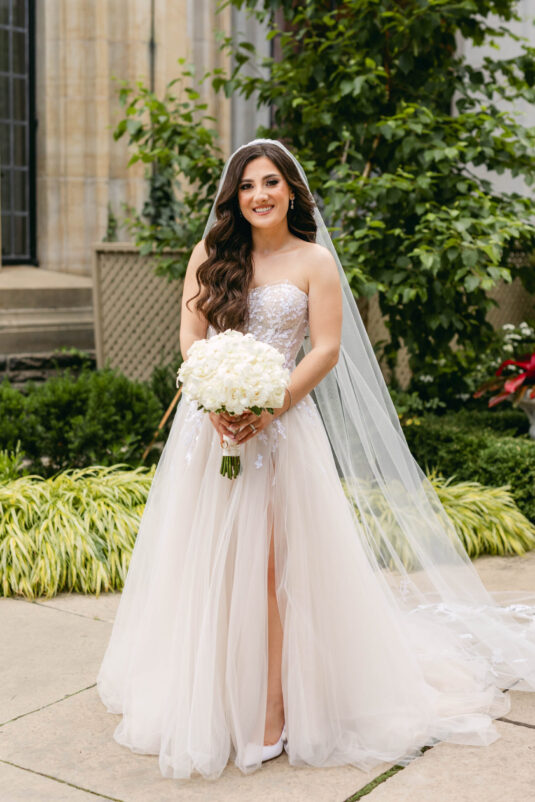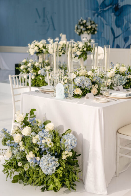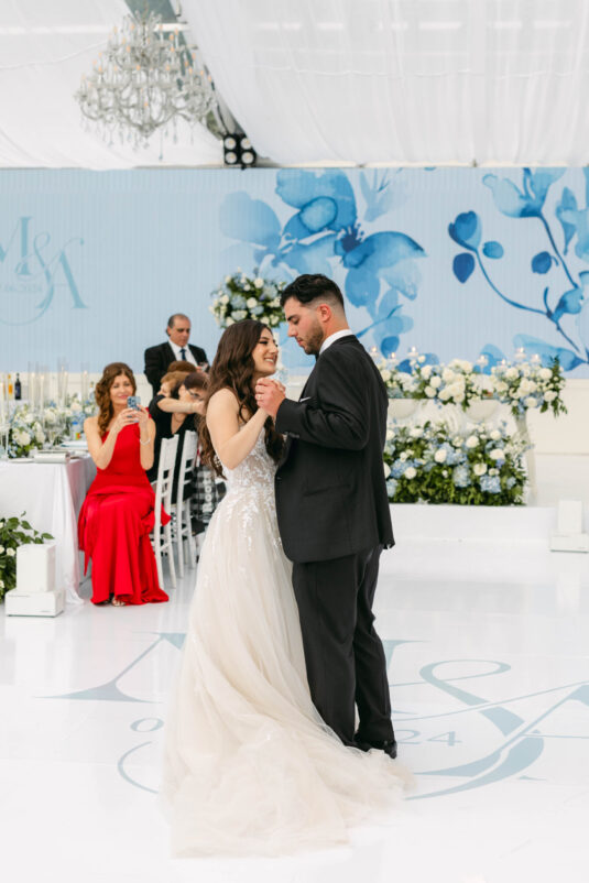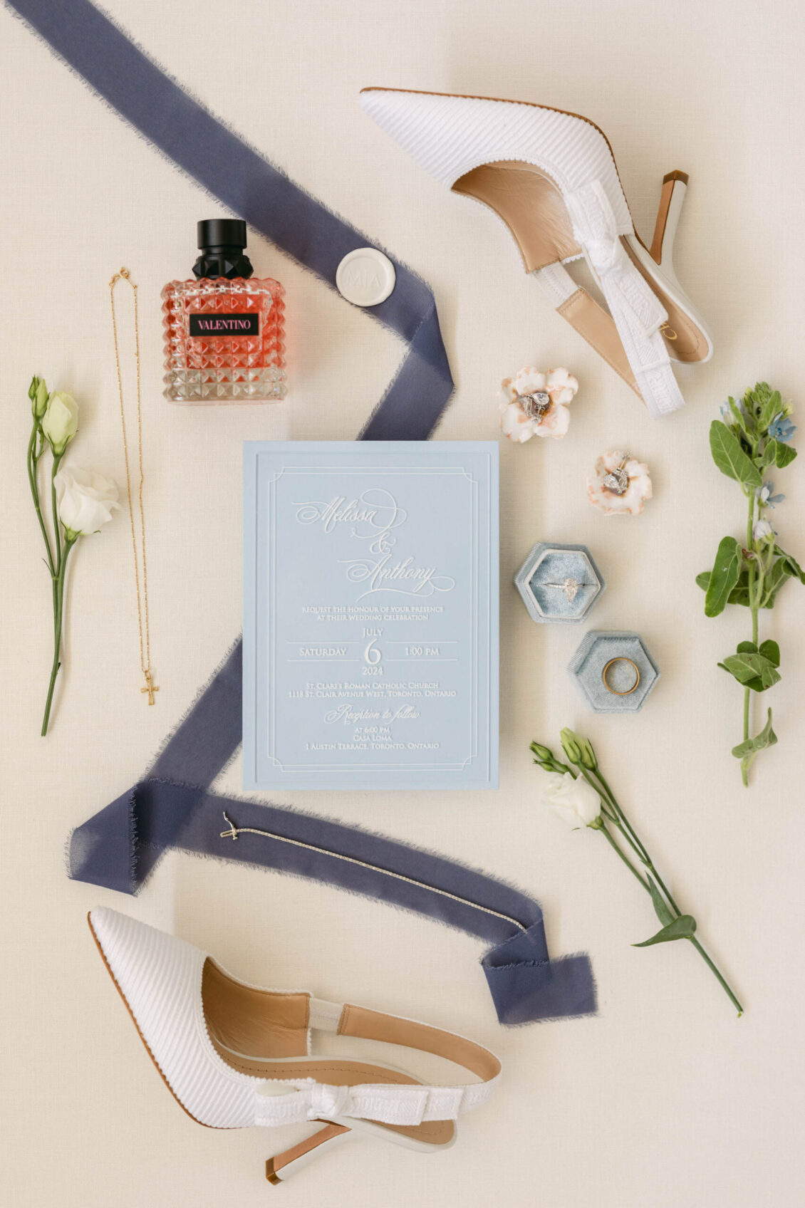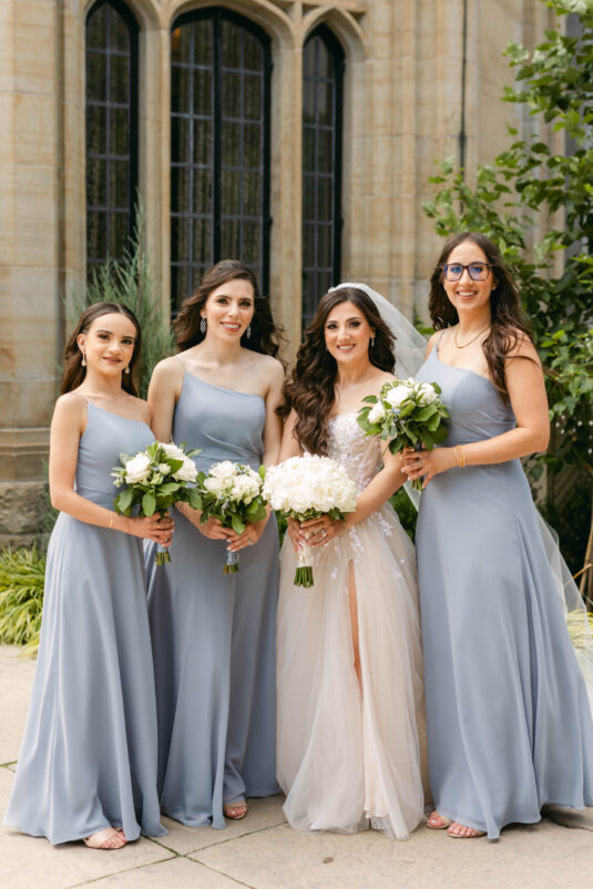 When it came time to plan their fairytale wedding in Toronto, Melissa and Anthony chose St. Clare’s Roman Catholic Church for their ceremony, followed by an enchanting reception at the historic Casa Loma. The day began with Melissa getting ready with her bridesmaids, while Anthony shared meaningful moments at his childhood home. Despite a rainy limo ride to the church, the skies cleared just as the couple emerged as husband and wife—a moment that felt destined. At Casa Loma, their vision of a romantic fairytale wedding in Toronto came to life, with powder blue and white floral décor masterfully designed by WedLuxe Member Wild Theory Floral and Event Design. The glass pavilion glowed with elegance, offering the perfect setting for 13 years of love to be celebrated. With family, friends, and the artistry of 515 Photo Co. capturing every detail, Melissa and Anthony’s wedding was the realization of a long-awaited dream—timeless, magical, and unforgettable.