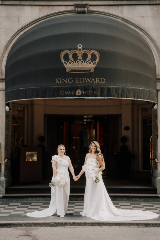 What made this luxury wedding at Omni King Edward especially poignant, however, was the legacy woven into its planning. Angela’s mother had long dreamed of helping her two daughters plan their weddings, even collecting every issue of WedLuxe magazine over the years as inspiration. After the loss of Angela’s sister, that dream shifted into a bittersweet hope, lovingly poured into every detail of Angela and Victoria’s day. The result was more than a wedding—it was a tribute to love in all its forms: romantic, maternal, and enduring. Through stunning photography, the day radiates joy, remembrance, and overwhelming gratitude, offering a timeless reminder of why weddings matter. Angela and Victoria’s celebration at Omni King Edward stands as a testament to resilience, authenticity, and the quiet, powerful beauty of choosing love—again and again.