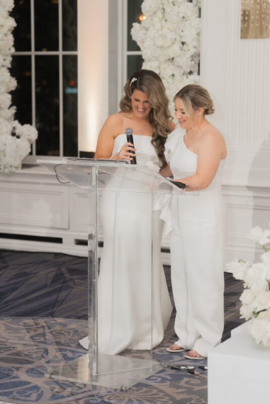 that was as meaningful as it was breathtaking. The two first met online – an experience that may be common, but for them, was nothing short of extraordinary. Having each navigated the complexities of coming out on different paths and timelines, they found in one another a rare and immediate sense of safety, joy, and belonging. Their conversations felt effortless and honest, quickly blossoming into a relationship grounded in shared values, humor, and the kind of chemistry that can’t be manufactured. Angela’s proposal to Victoria was simple yet unforgettable: on her parents’ yacht, under an open sky, surrounded by still waters and quiet emotion, she asked the question that would set the stage for their future together.