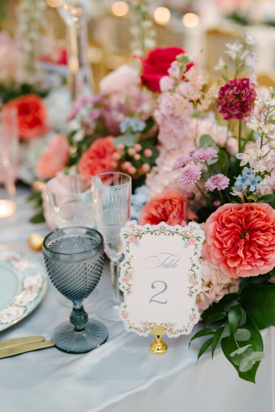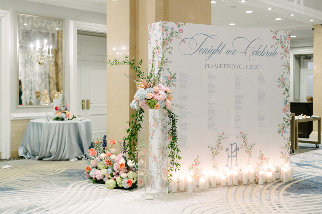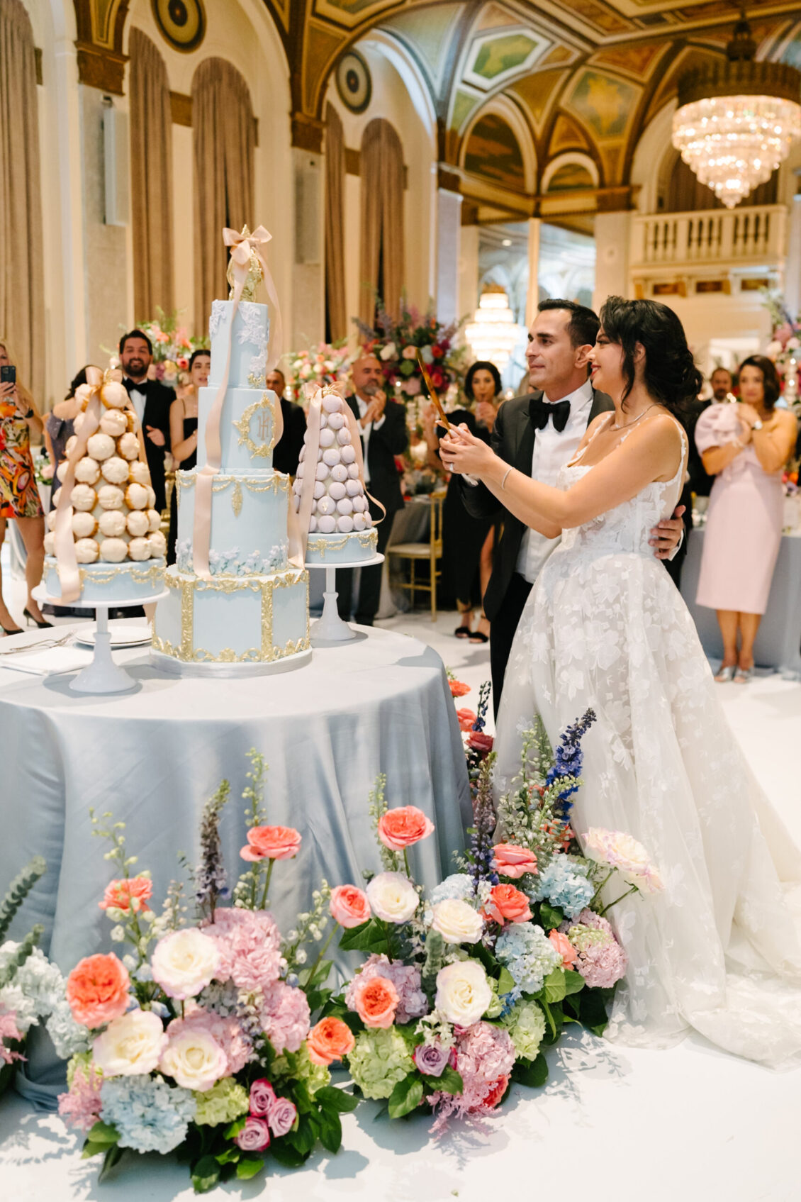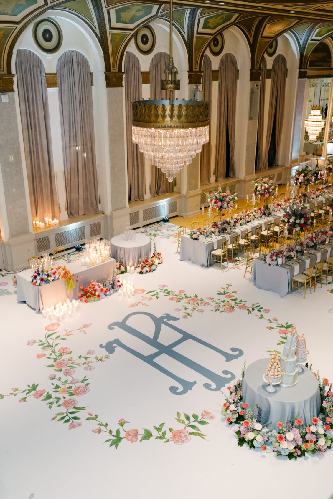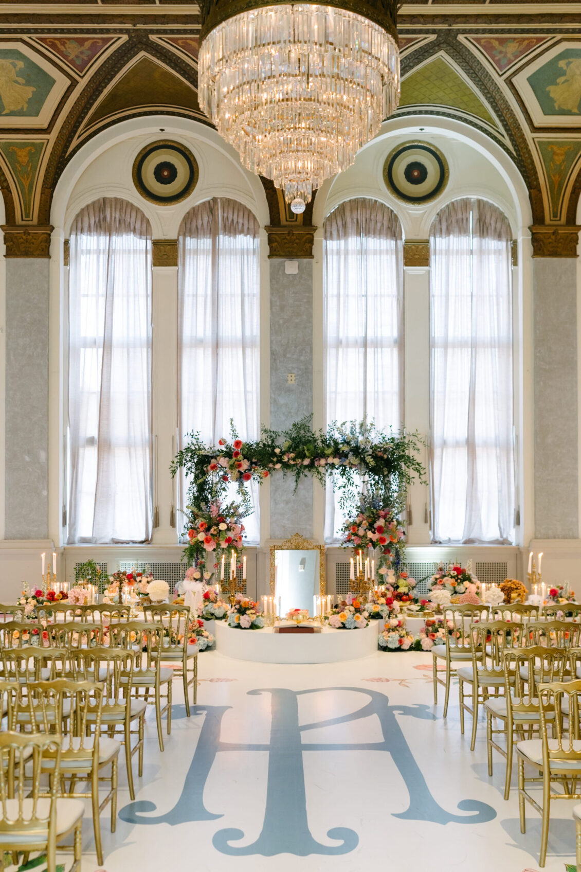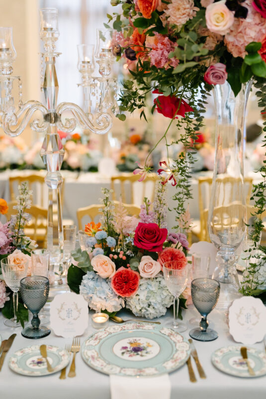 Designed by the bride in collaboration with her planner, the celebration blended Victorian elegance with couture-level glamour and nods to the couple’s Persian heritage. Guests were welcomed into a floral dreamscape, with hundreds of blooms flown in from the Netherlands cascading beneath the historic painted ceiling of the Royal York’s ballroom. Custom Victorian-inspired china, pastel-hued arrangements, and towering candelabras created a scene reminiscent of a European château, while a live violinist set an enchanting soundtrack for the ceremony. The couple’s sofreh aghd honored their cultural traditions, while a Persian tea station added an intimate and meaningful touch.