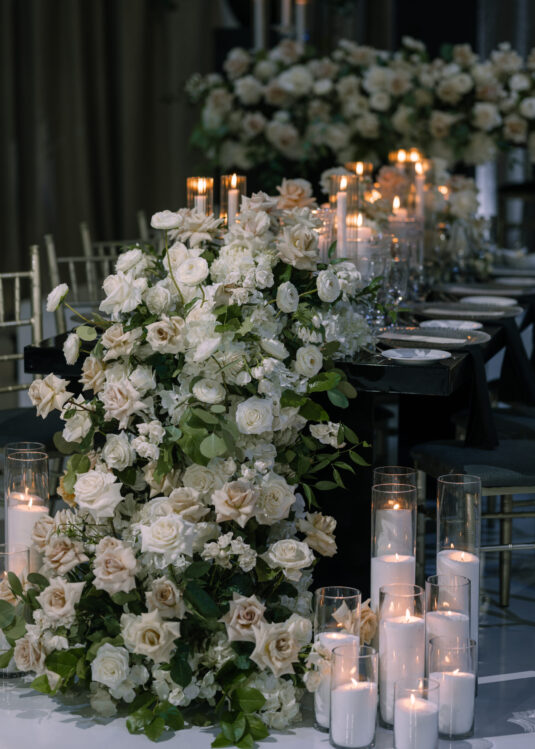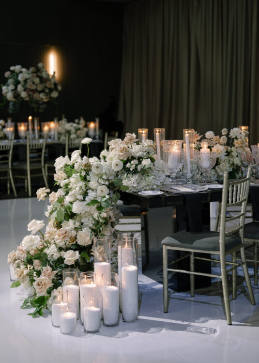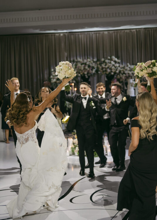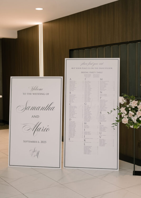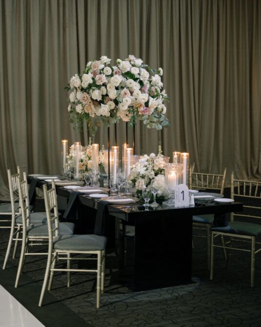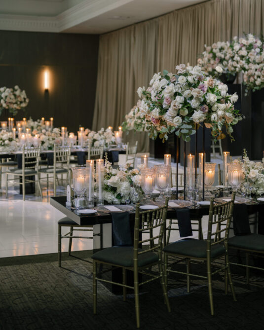 Samantha and Mario’s romantic and modern Toronto ballroom wedding was a celebration of love, family, and effortless style—perfect inspiration for couples dreaming of a timeless yet fashion-forward day. Designed to balance classic romance with sleek black-tie sophistication, their wedding was as meaningful as it was unforgettable. The couple focused on creating a warm, elevated atmosphere for their loved ones, complete with lush blush-and-white florals accented by modern black details, setting the tone for an elegant evening filled with heart and high energy.