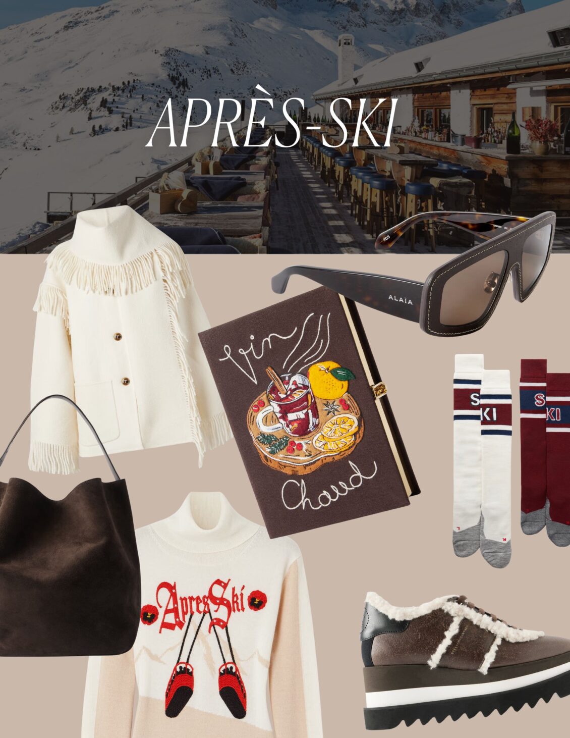 Think timeless alpine chic with a modern twist – old-money silhouettes meet new-era performance. Crisp white ski suits, shearling jackets, and oversized cashmere scarves dominate the palette, while accessories lean toward statement eyewear and après-ski boots that glide seamlessly from slope to lounge.