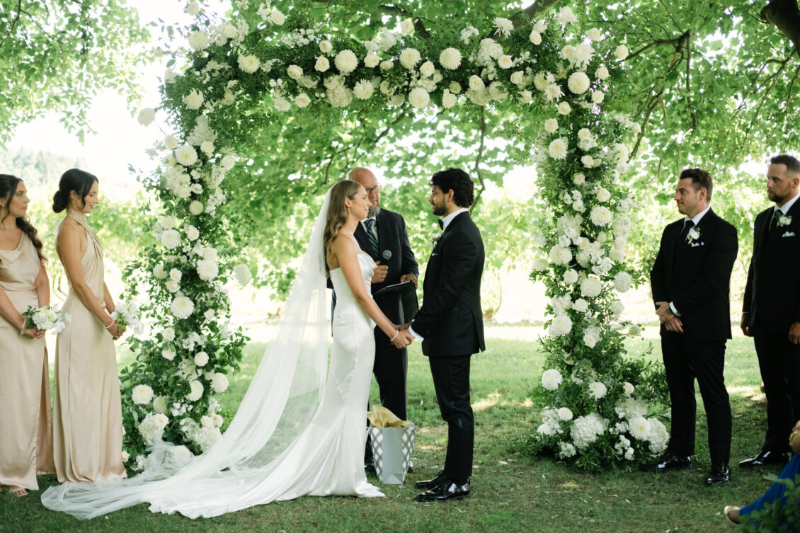 Set against the rolling orchard landscape of Niagara-on-the-Lake, Monika and Adrian’s celebration was the embodiment of a dreamy summer tent wedding—one that felt effortlessly elegant, deeply personal, and refreshingly unforced. Hosted on the Gracewood Estate at Kurtz Orchards, the couple envisioned a day centered on connection, presence, and the simple luxury of time spent together. The result was a dreamy summer tent wedding that balanced natural beauty with thoughtful design, creating an atmosphere where every detail felt intentional yet relaxed.