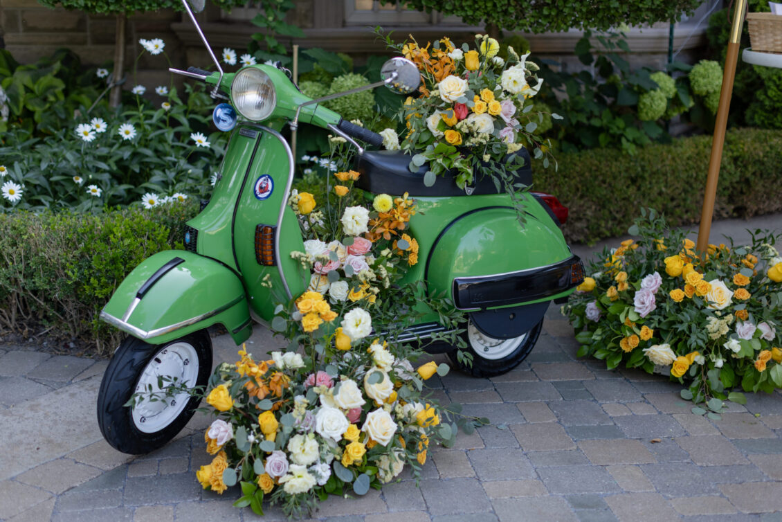 From the start, this Italian-inspired engagement celebration was rooted in atmosphere. A deep forest green anchored the design, bringing a sense of heritage and timelessness to the setting. The hue appeared throughout custom pillows and embroidered logo details, instantly elevating the space with a refined, bespoke feel. Layered alongside sun-kissed yellows, soft corals, lively pinks, crisp whites, and abundant greenery, the palette struck a balance between sophistication and joyful celebration—classic yet undeniably fresh.