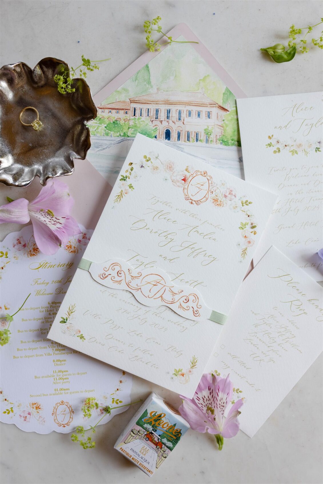 For Alice, Villa Pizzo had always been the dream. Built in 1435 and steeped in history, the villa’s lakeside ceremony terrace offered a cinematic backdrop worthy of their love story. When they discovered that the only available Saturday in 2024 fell exactly on the anniversary of their engagement—two years to the day—it felt like destiny shaping their modern Lake Como wedding.