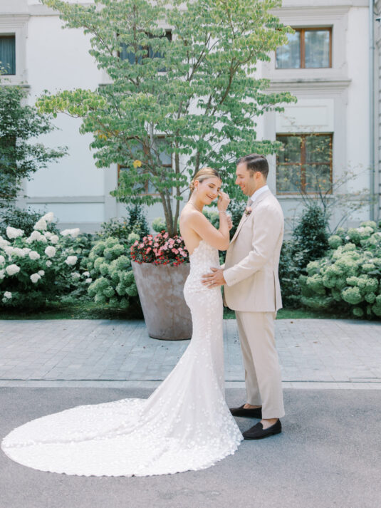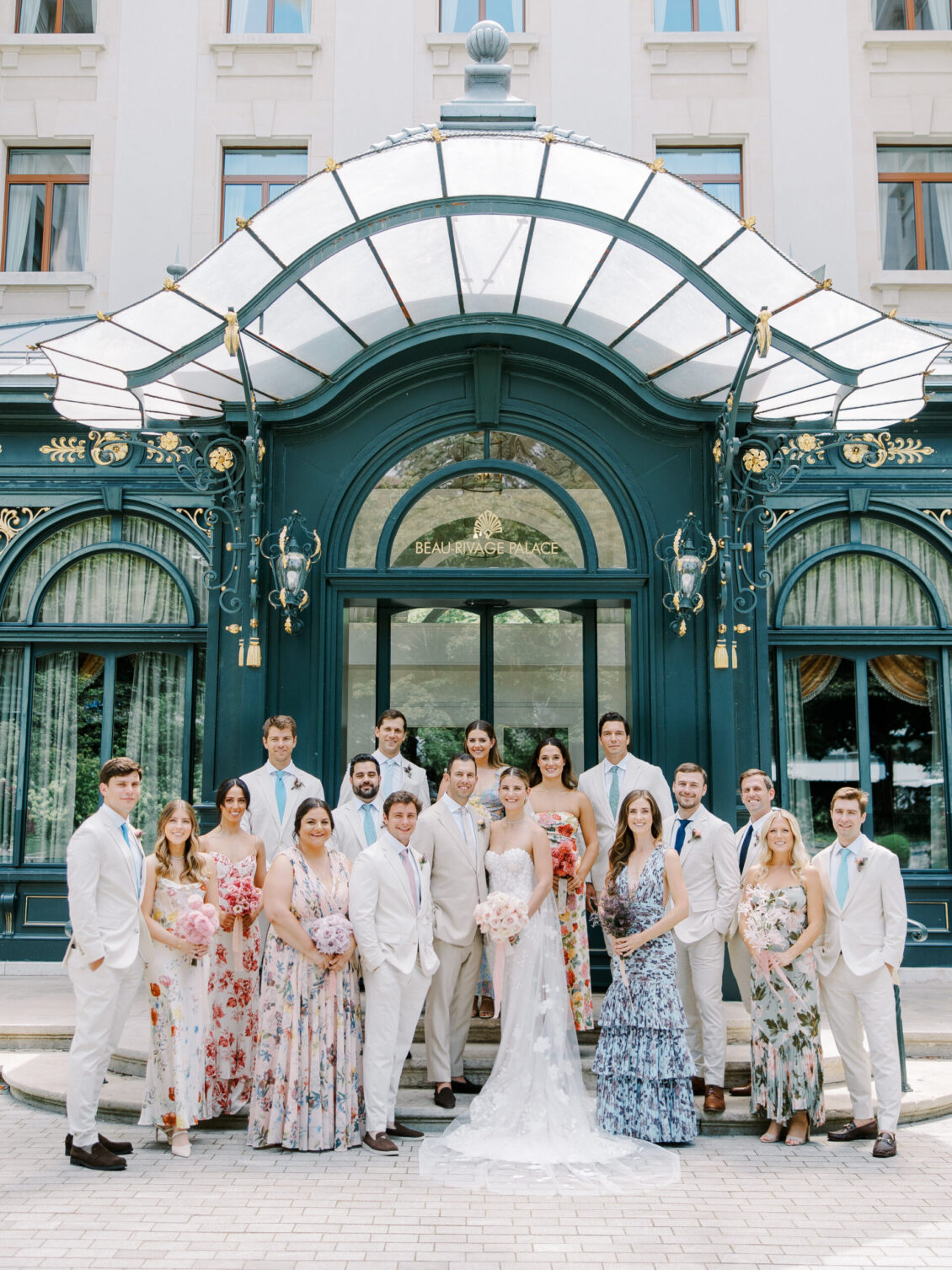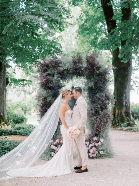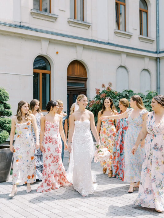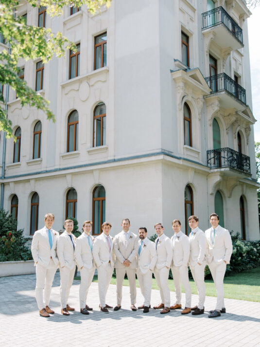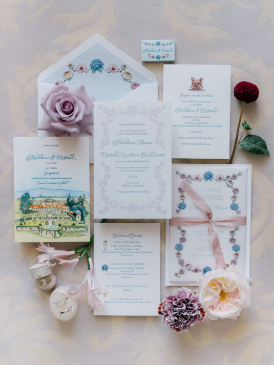 – and for Madeleine and Nick, it was the only choice. With family ties to the region and a shared appreciation for nature and design, the couple envisioned a celebration that would feel like stepping into a dream. The festivities began in style with a bright, summer-yellow welcome party at the iconic Beau-Rivage Palace, setting a joyful, sun-soaked tone for the weekend ahead. From there, their Switzerland destination wedding unfolded at Portes des Iris, a sprawling estate known for its breathtaking iris fields, where every detail reflected a seamless blend of romance, artistry, and natural beauty.